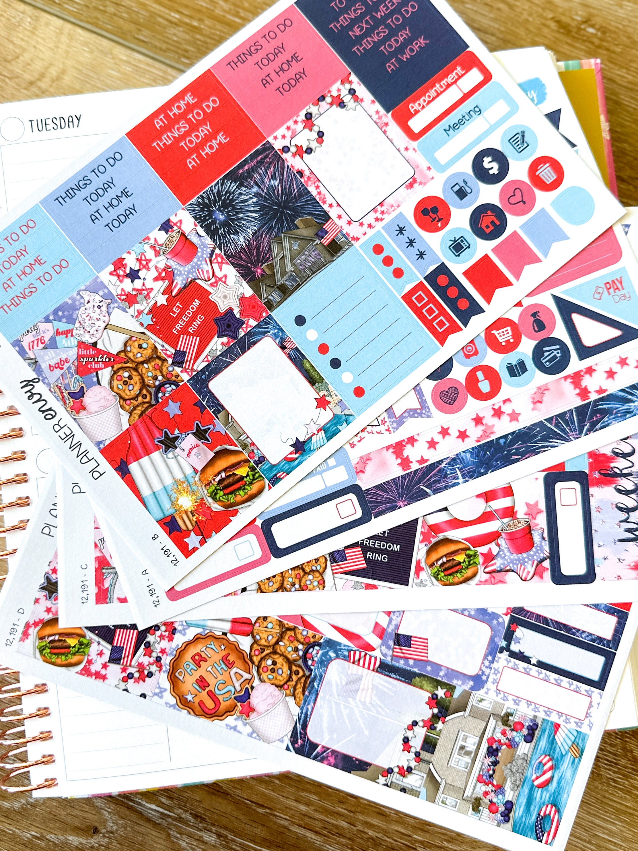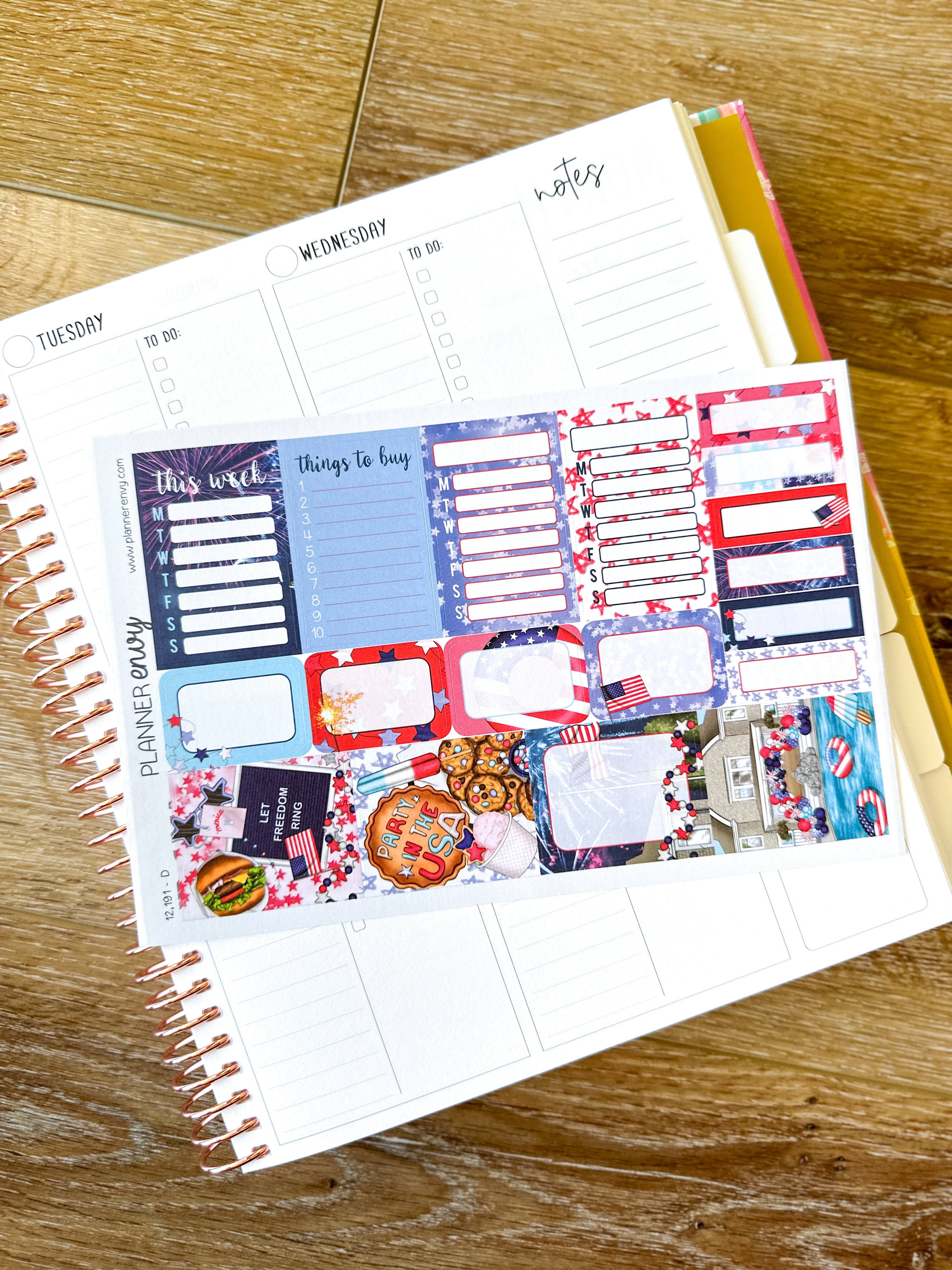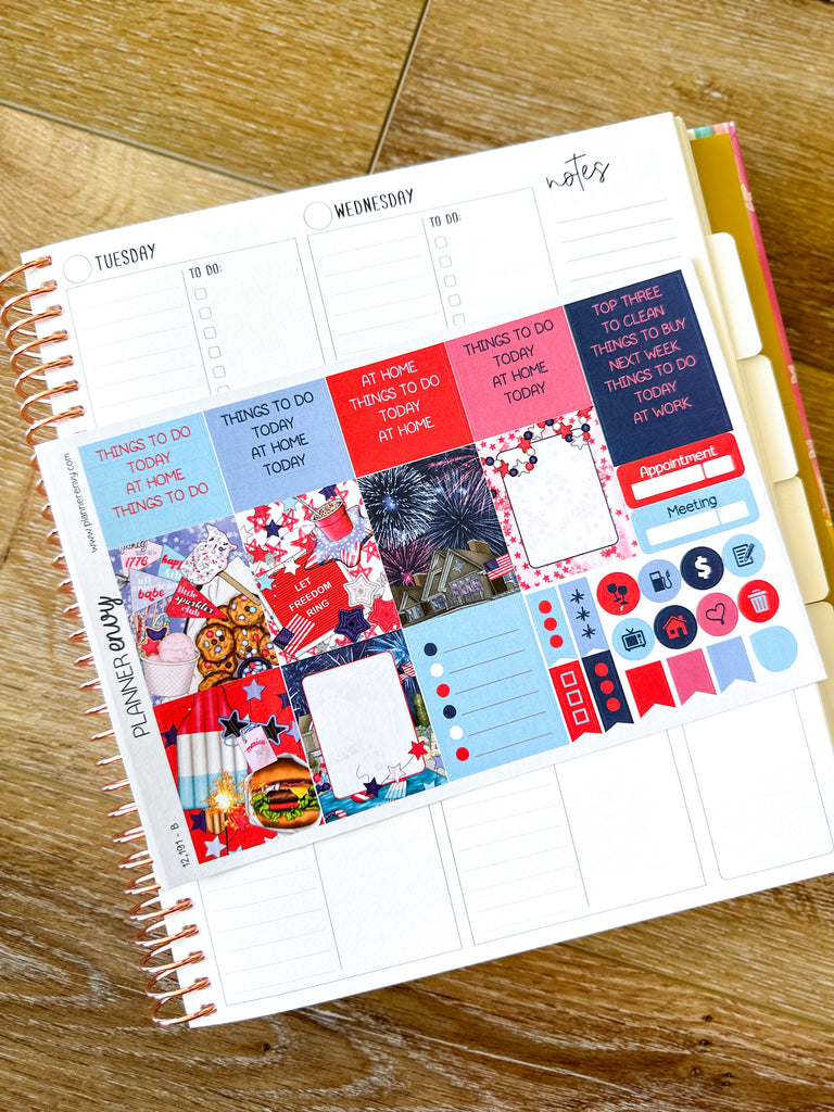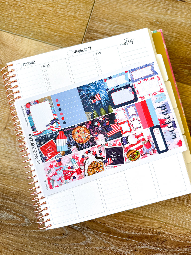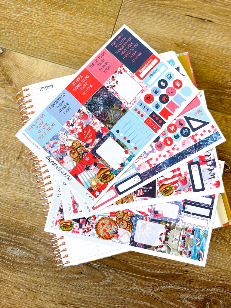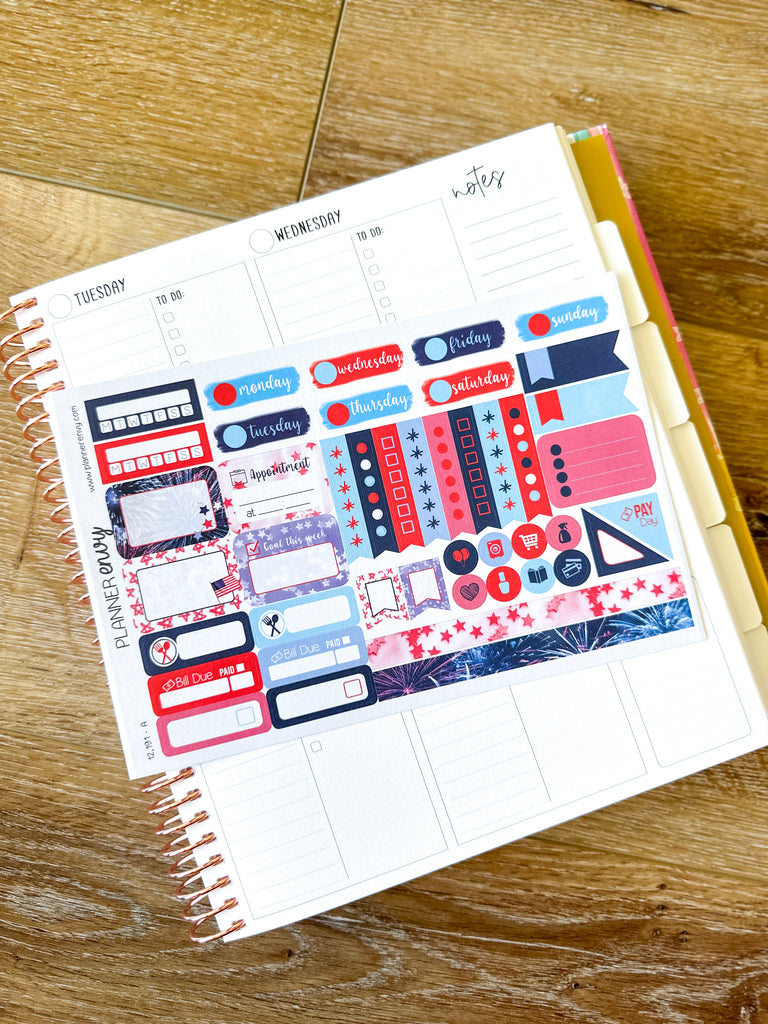 NEW KIT FORMAT! Summer 4th Of July Red & Blue Planner Stickers Weekly Kit - 133 Stickers (#12,191)
