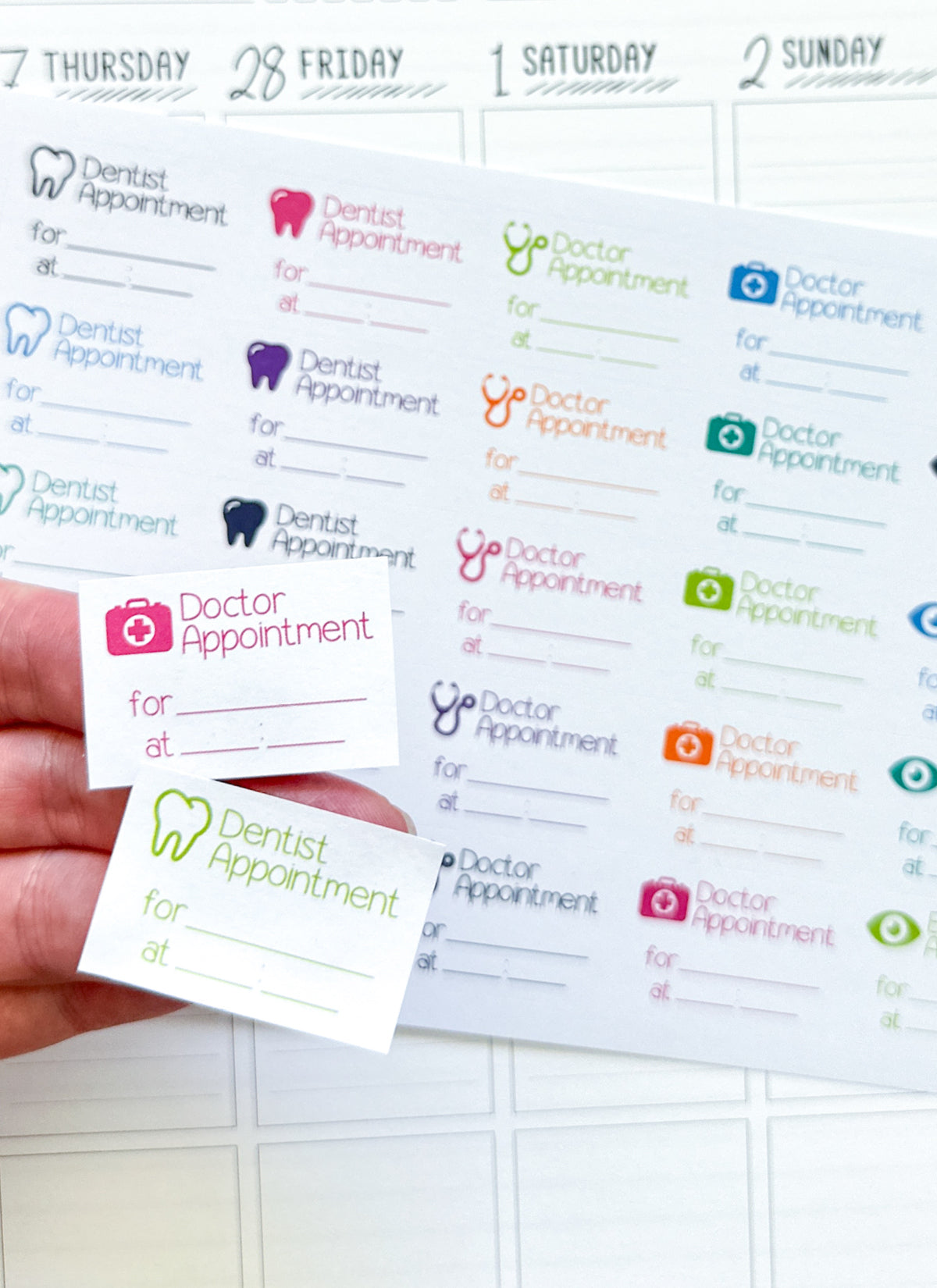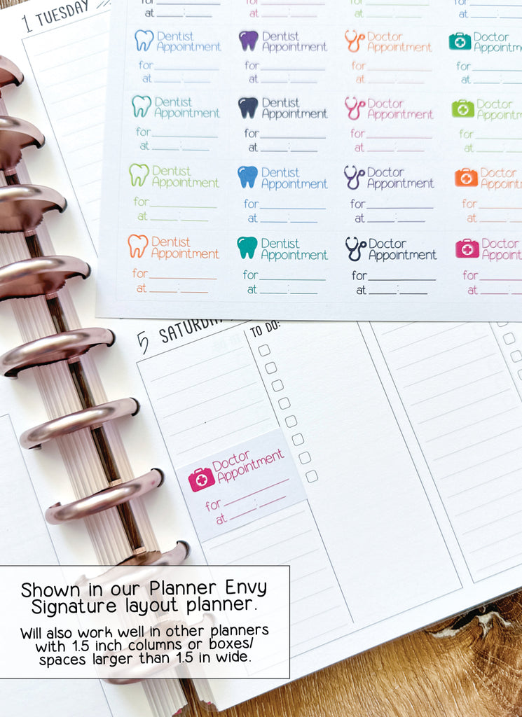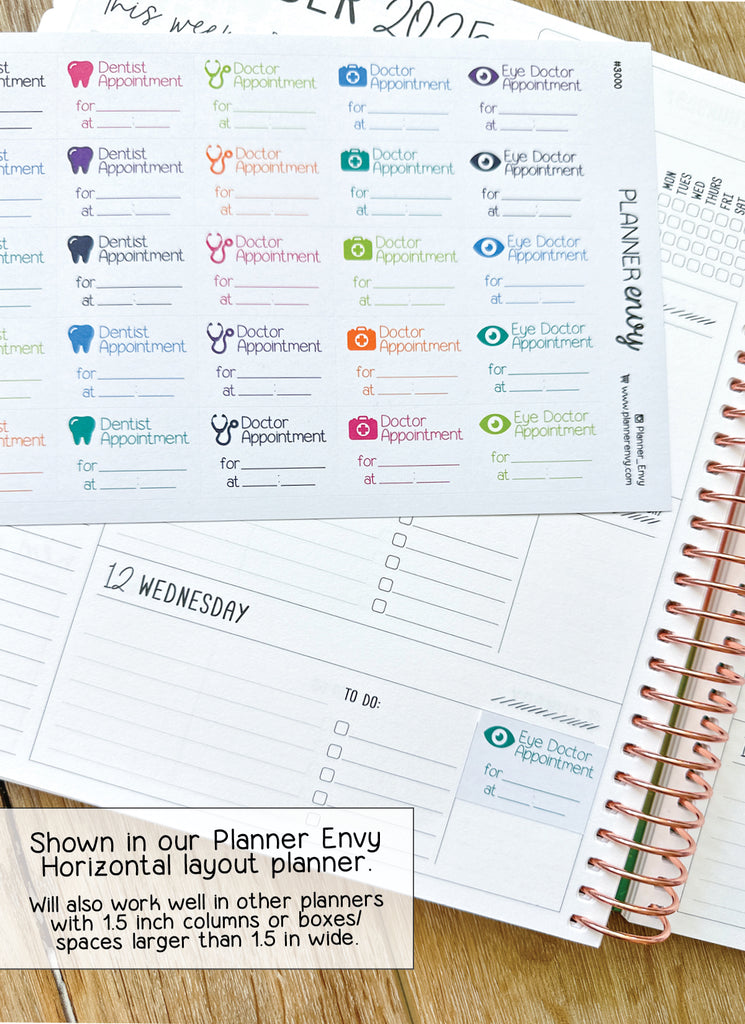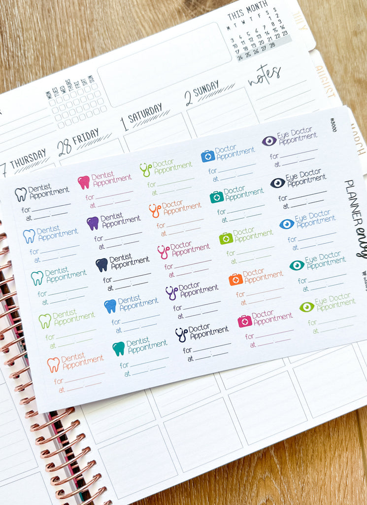 Doctor Dentist Eye Planner Stickers - 1.5 x 1 Inch - Health Drs Appt Appointment Stickers - 25 Stickers / 1 Sheet (#3000)