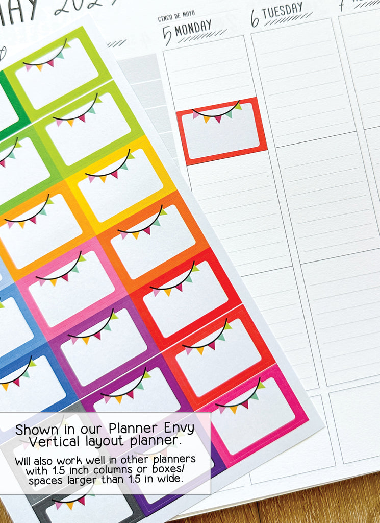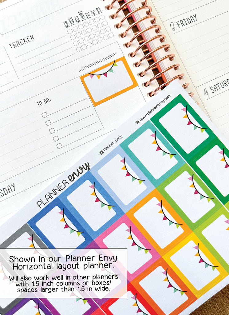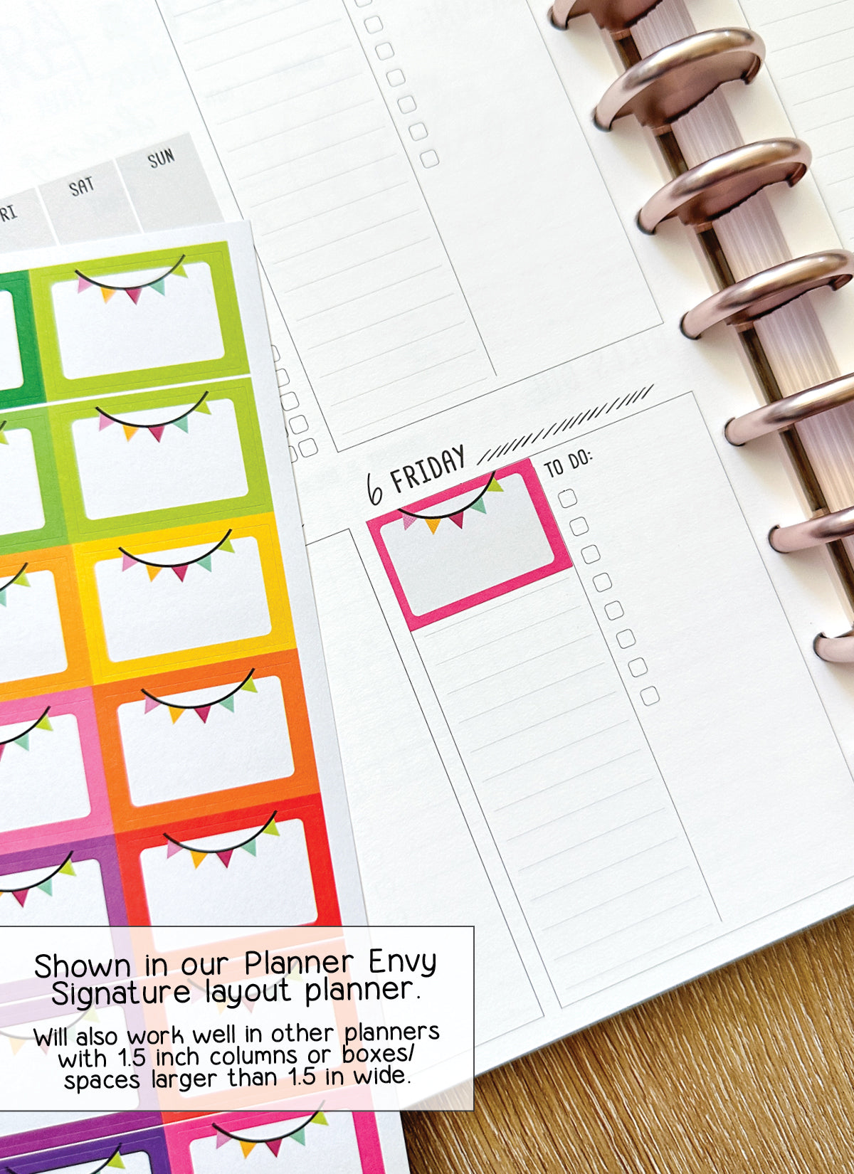 ✦ Each sticker is 1.5 inches wide by 1 inch in length. These stickers are perfectly sized to fit within the width the boxes (weekly spreads) of: