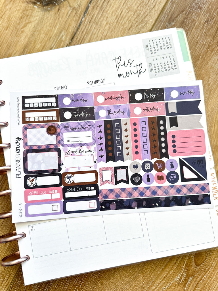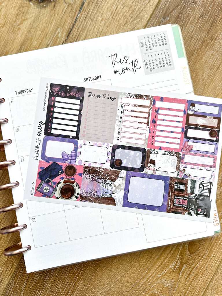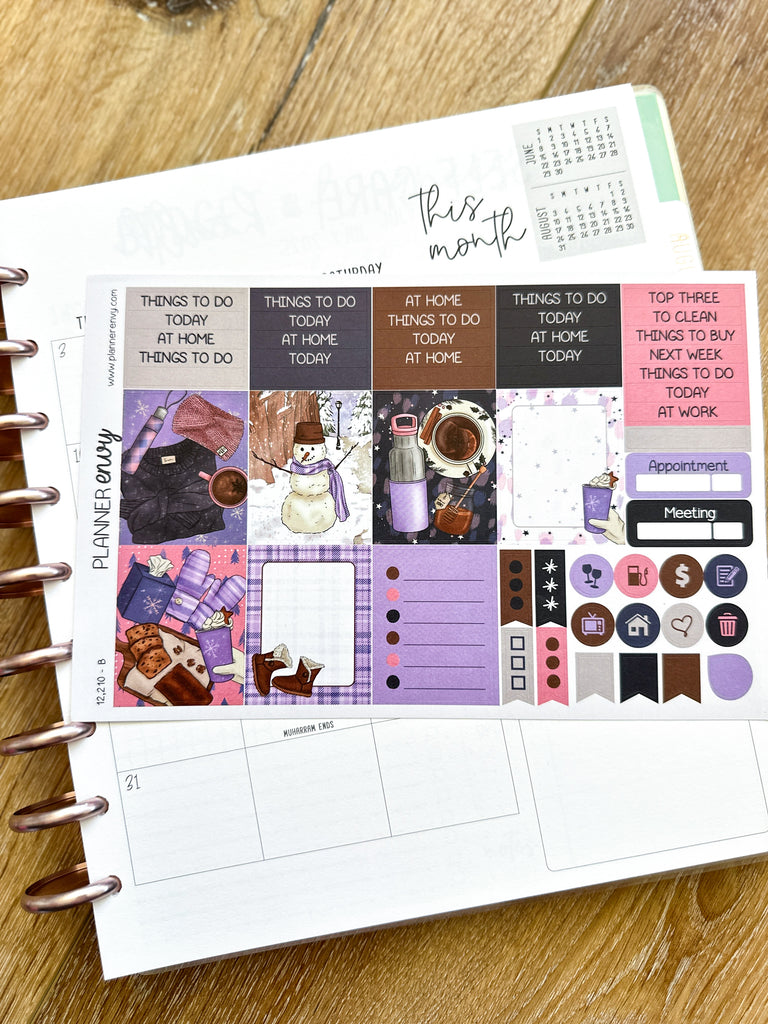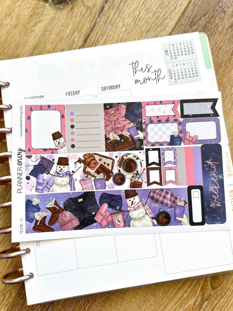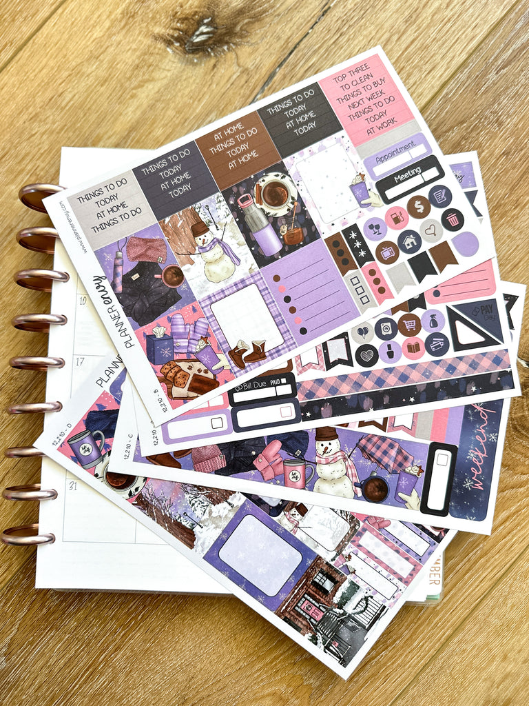 Winter Snowmen Cold Trees Snow Navy & Pink Planner Stickers 4-Page Weekly Kit - 133 Stickers (#12,210)