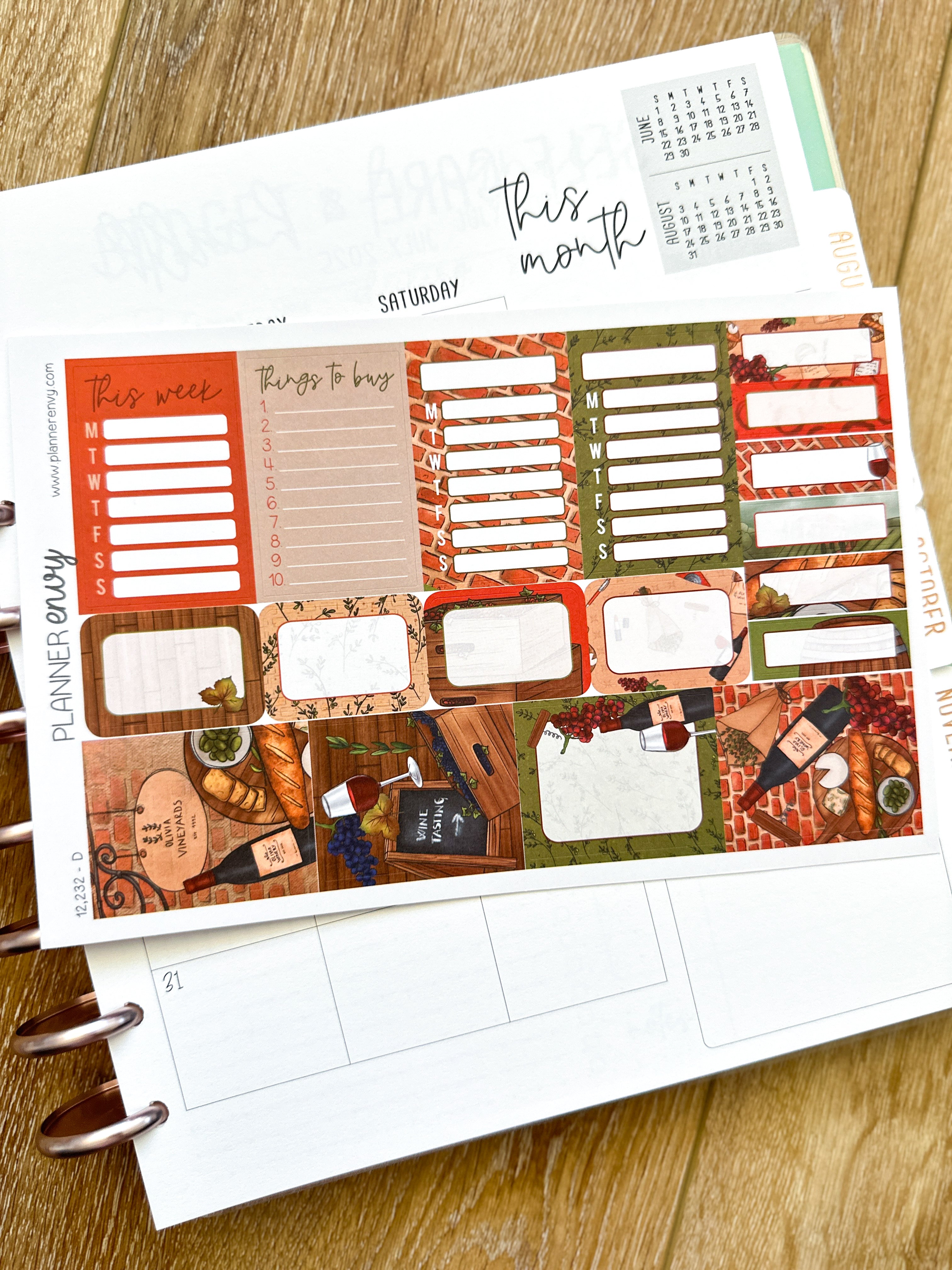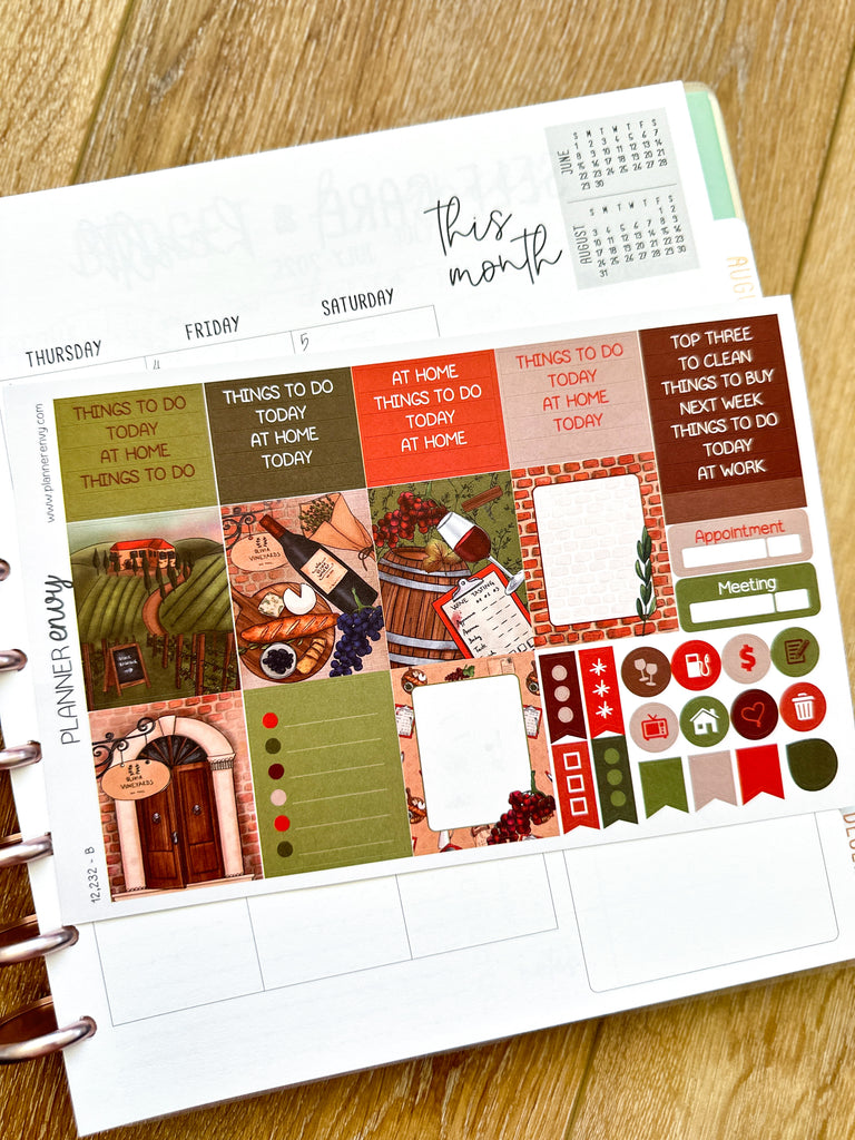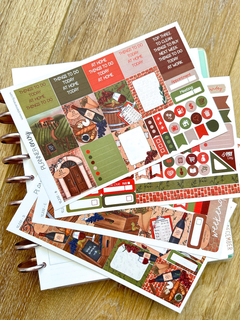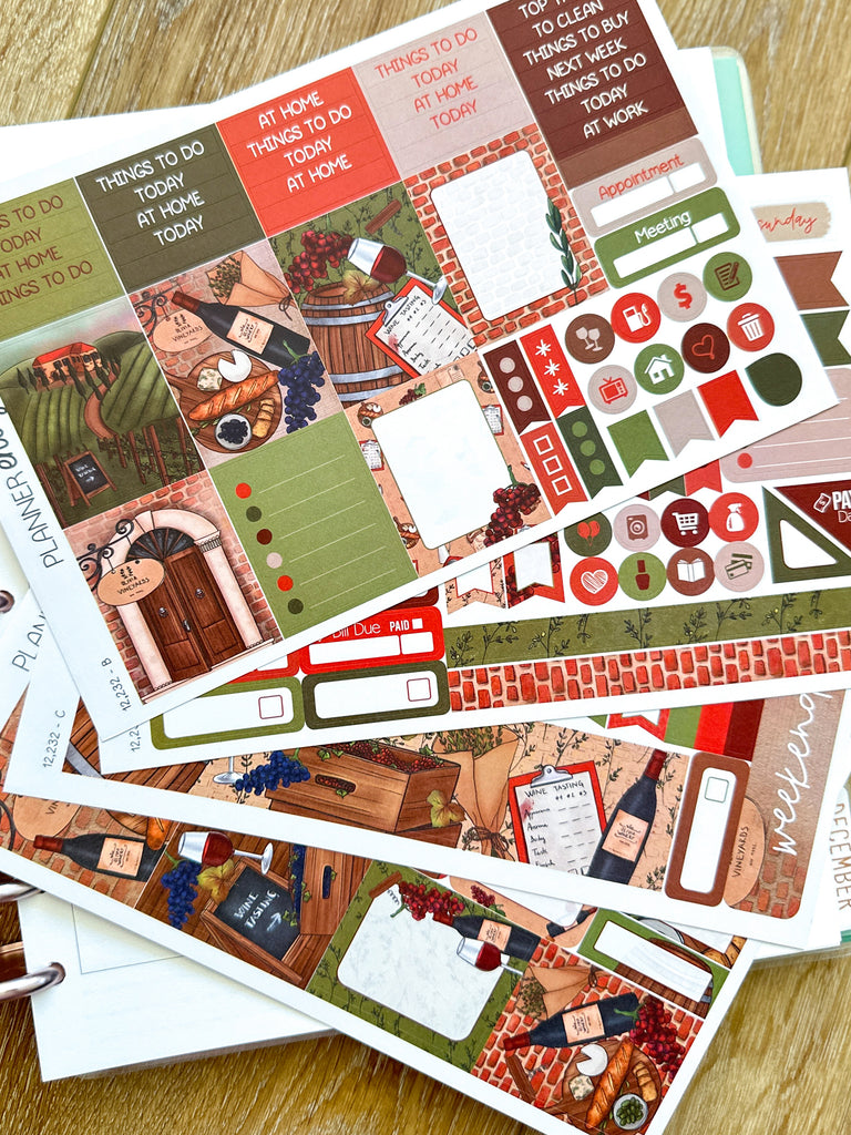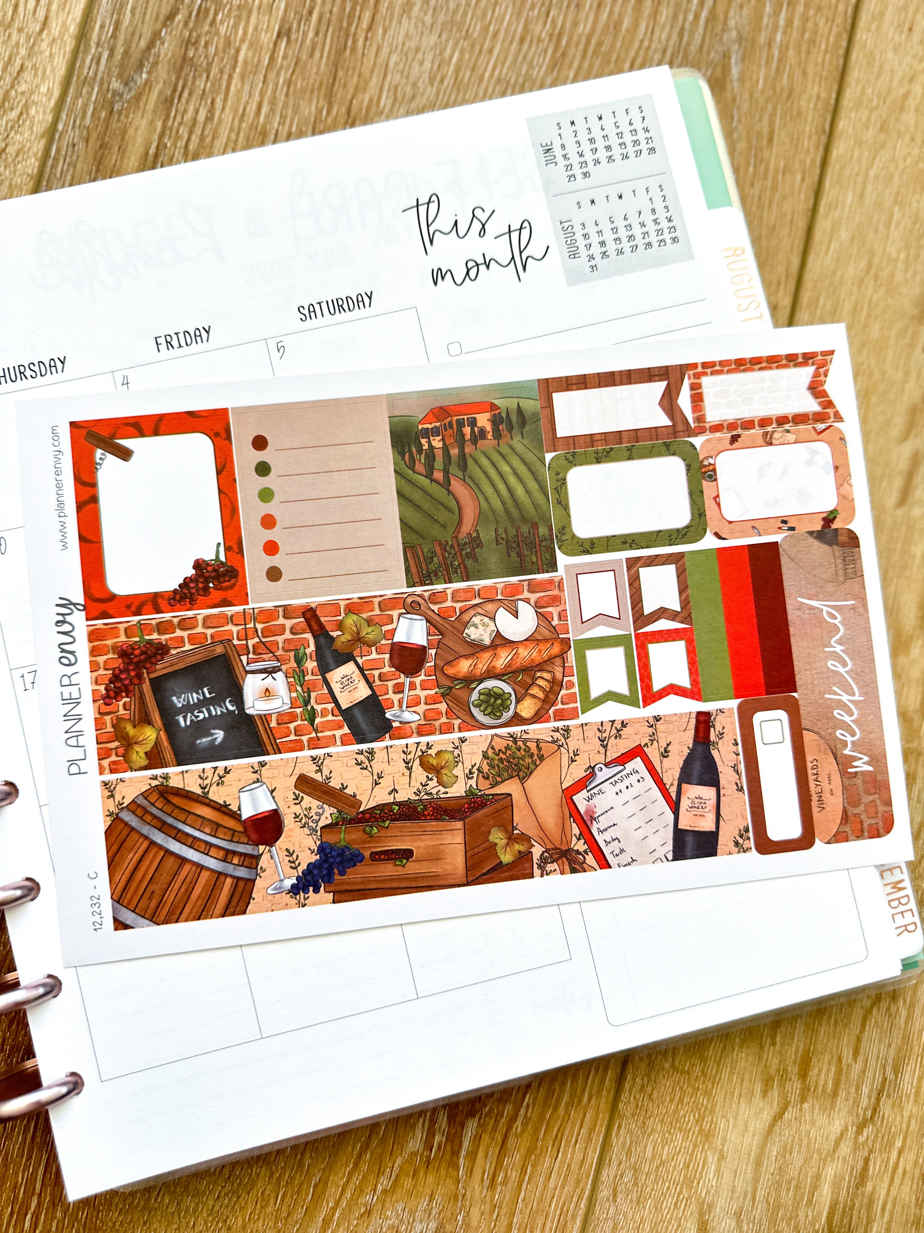 Wine Vineyard Winery Weekend Getaway Planner Stickers 4-Page Weekly Kit - 133 Stickers (#12,232)