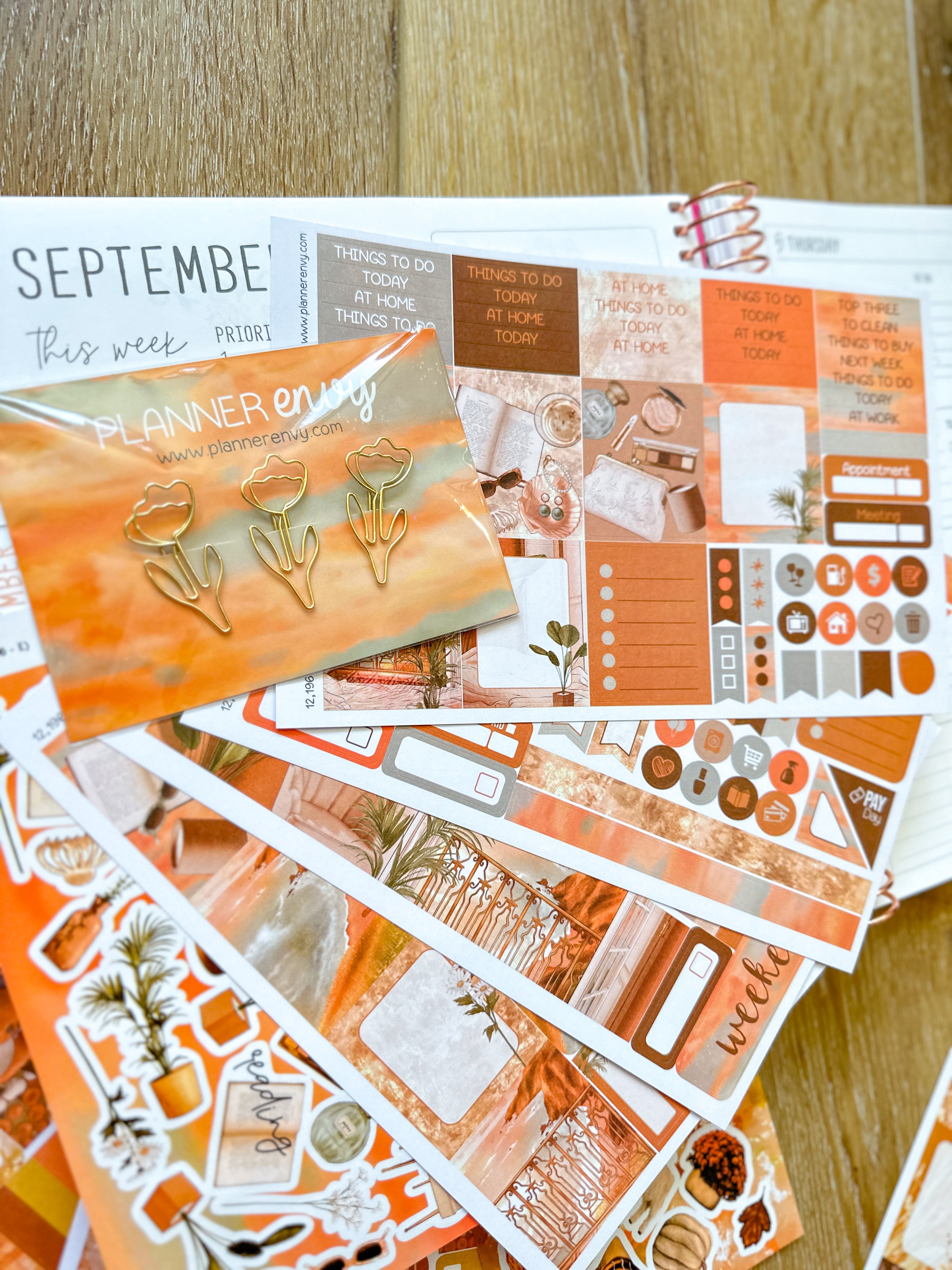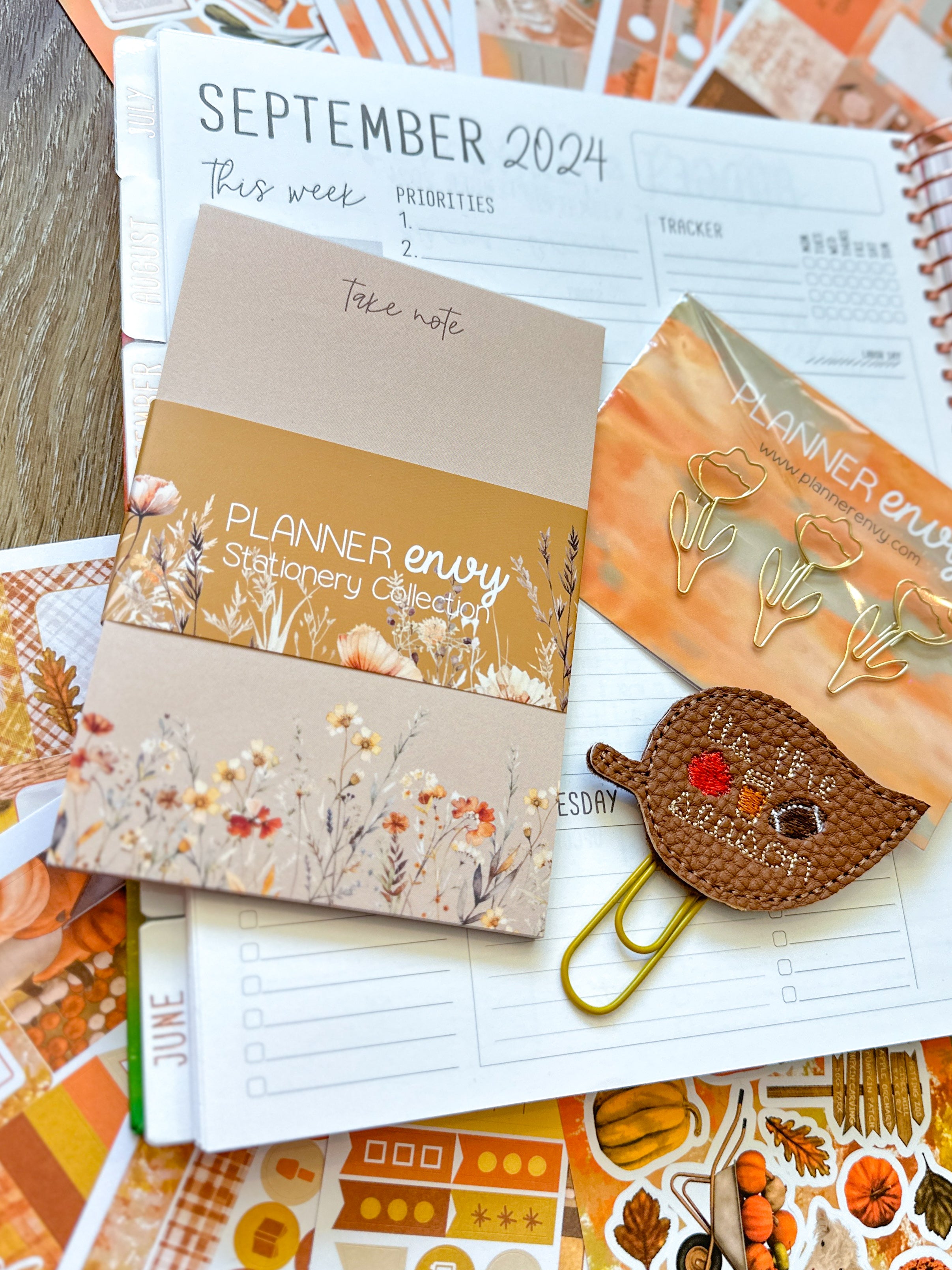 • Planner accessories shown: shaped paperclip set, big feltie clip, and matching notepad