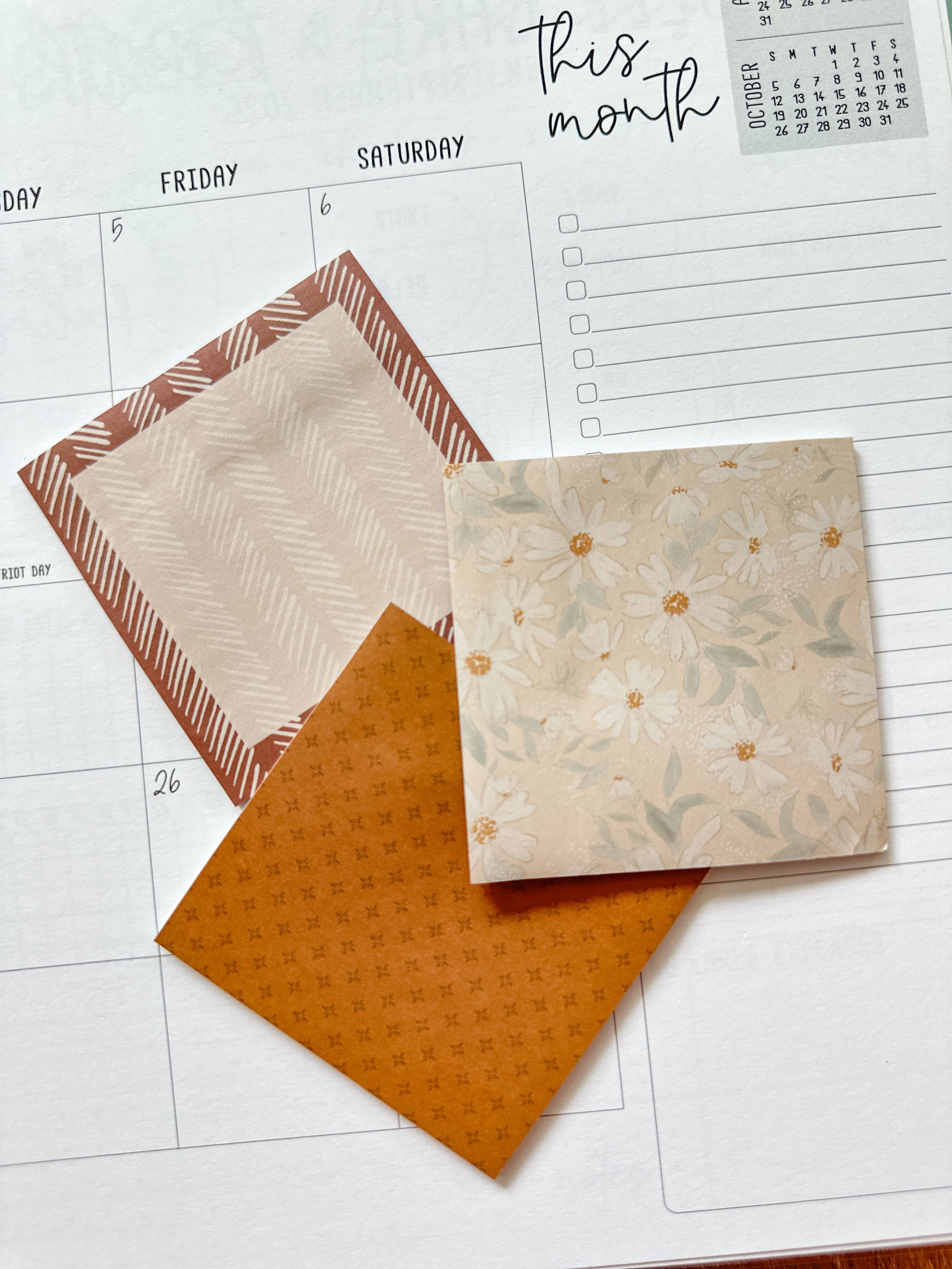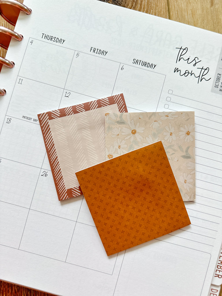 Set of 3 Sticky Notepads - Fall Neutral Designs From our November 2025 Box