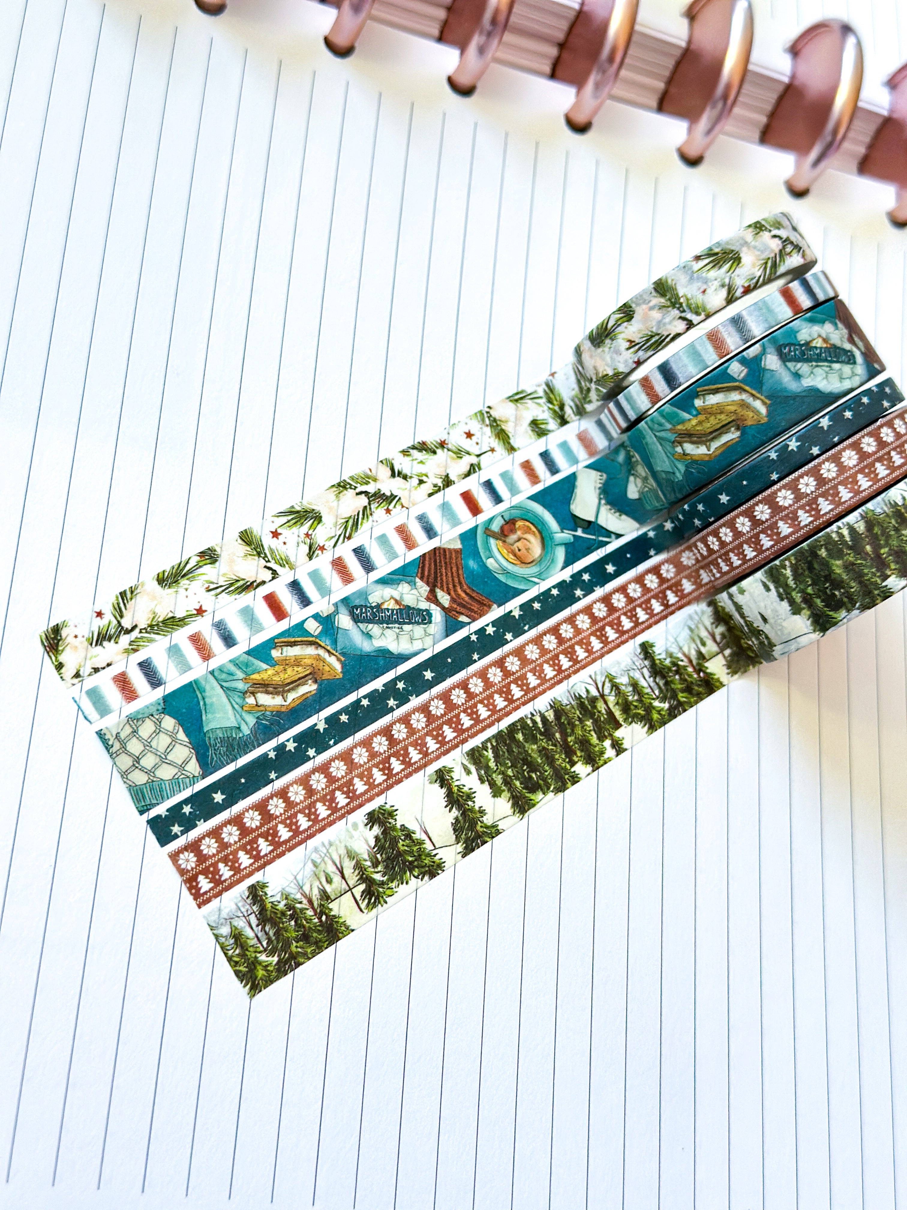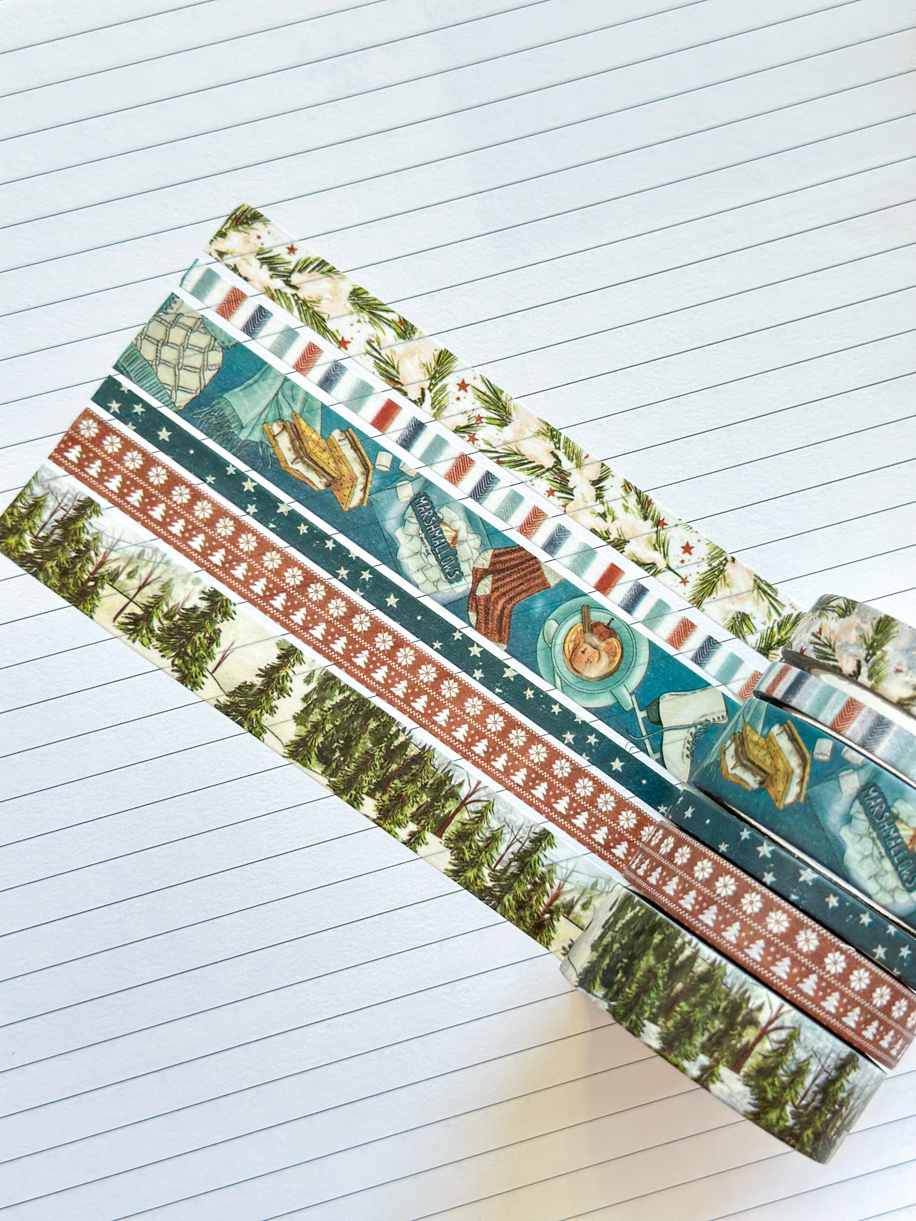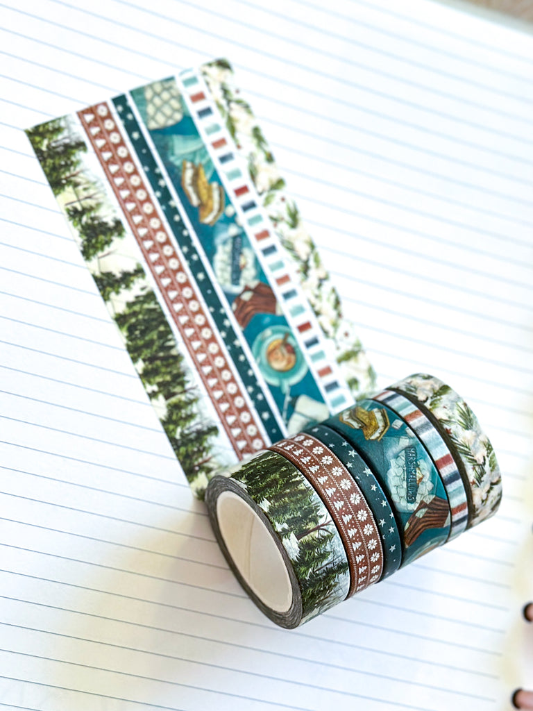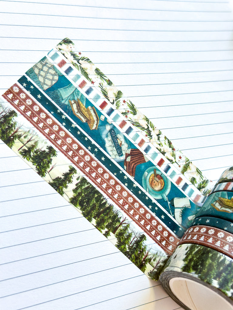 Winter Snowy Forest Pine Trees Ice Skating Snow Washi Tape Set January 2026 - W147