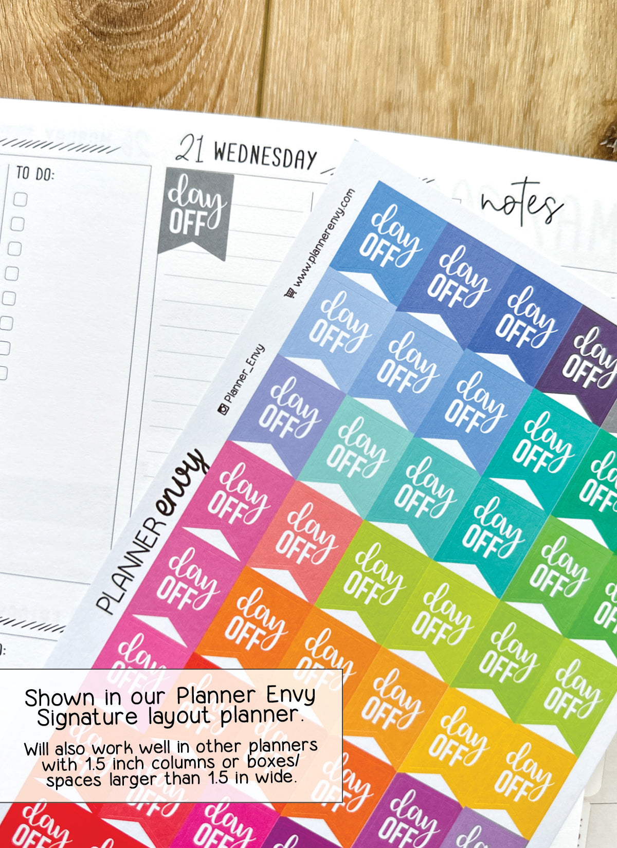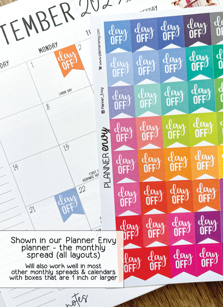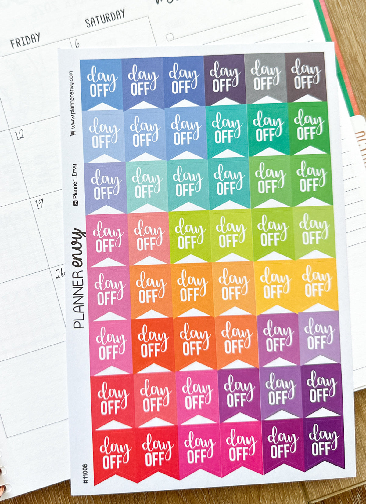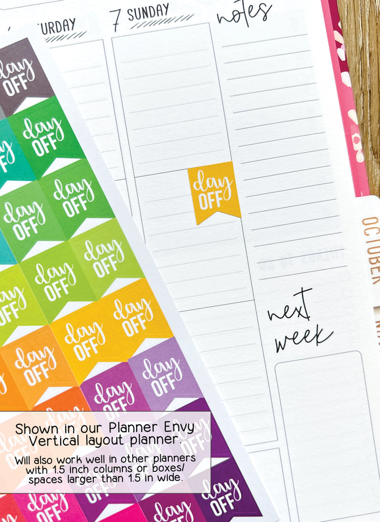 Day Off Vacation Planner Stickers - 0.8 x 1 Inch - Work School Colorful Flag Stickers - 48 Stickers / 1 Sheet (#11008)
