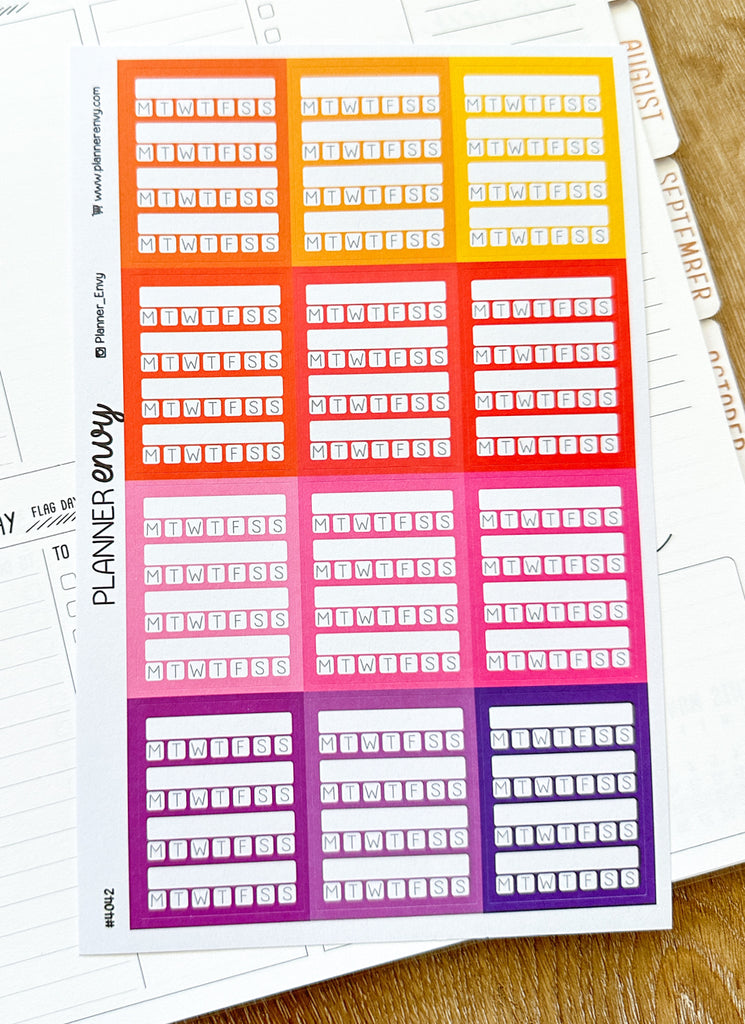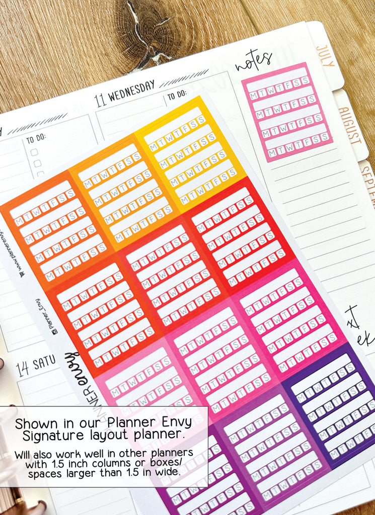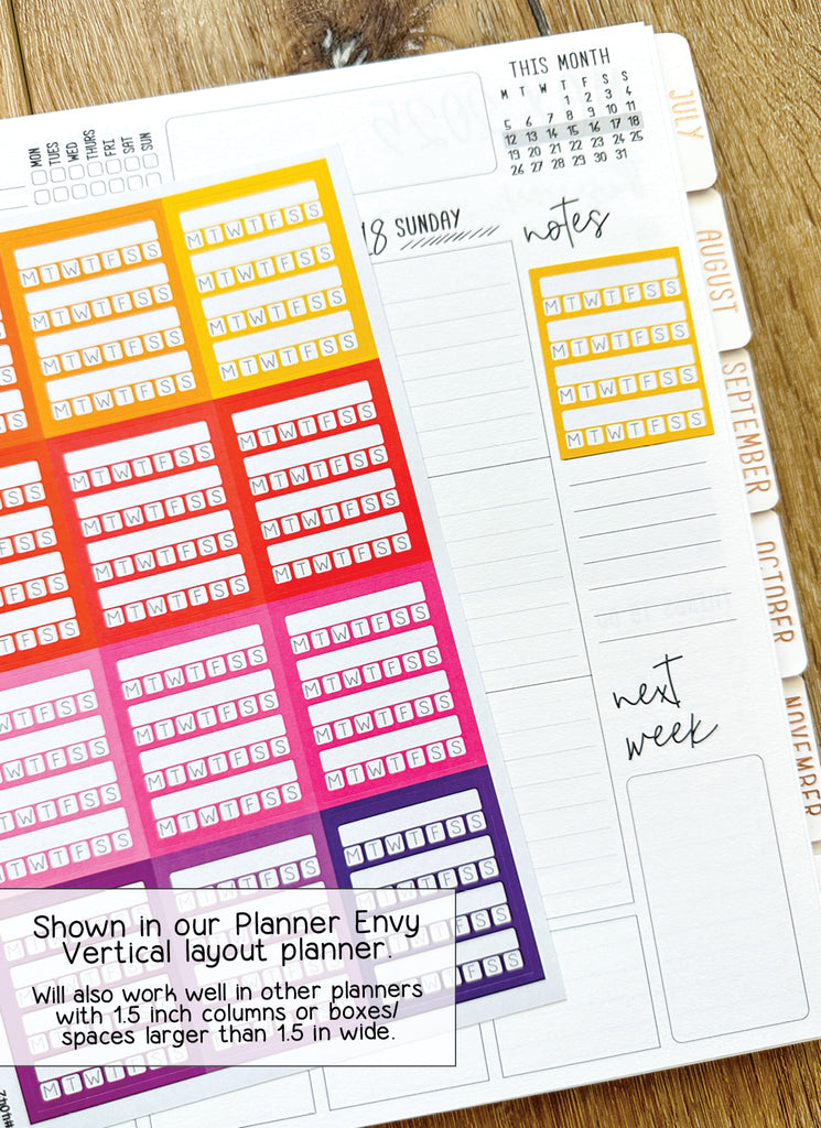 Weekly Habit Tracker Planner Stickers - 1.5 x 1.9 Inches - Weekly Sidebar Stickers - 12 Stickers / 1 Sheet (#4042)