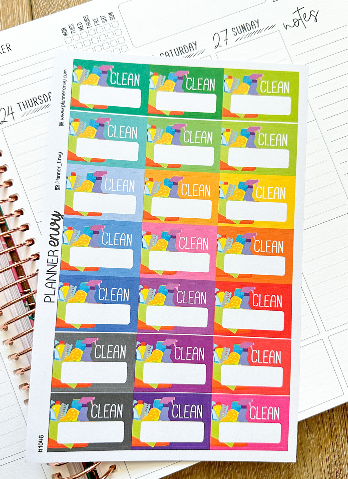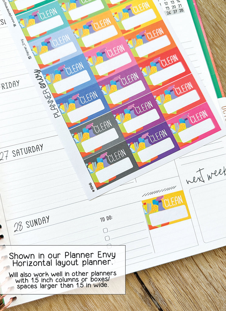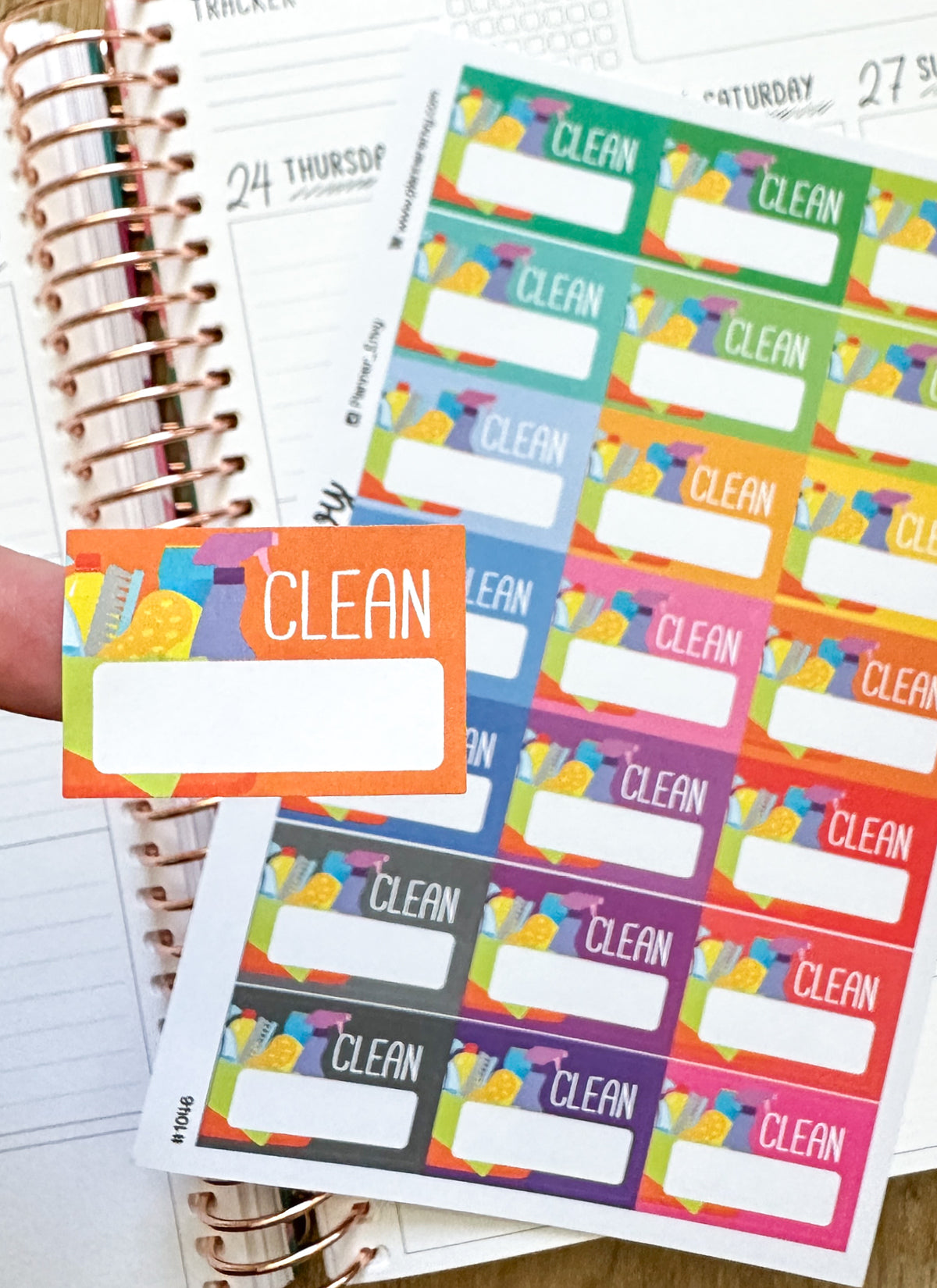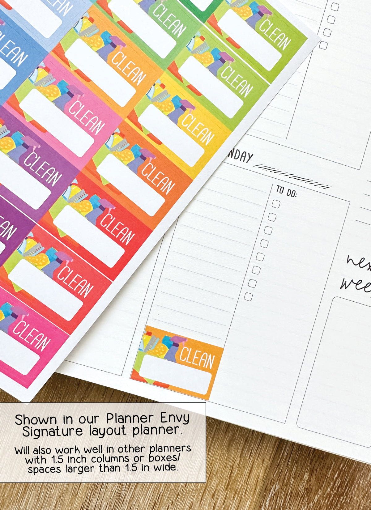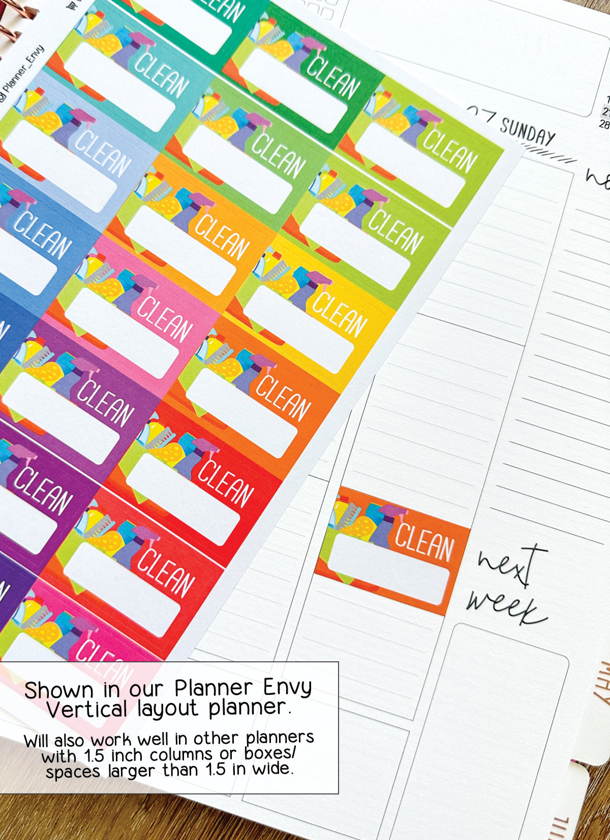 Cleaning Planner Stickers - 1.5 x 1 Inch - To Clean At Home Stickers - 21 Stickers / 1 Sheet (#1046)