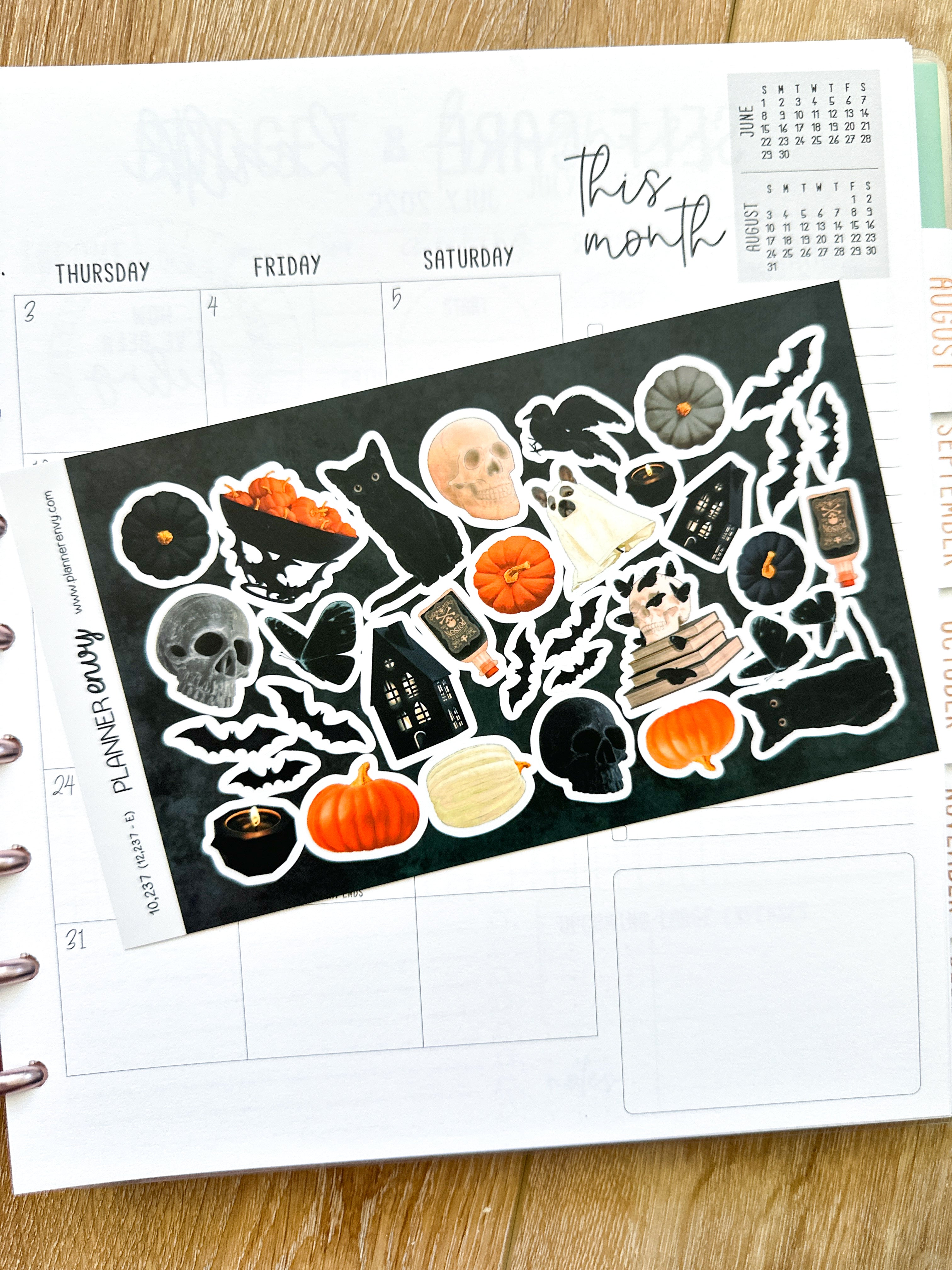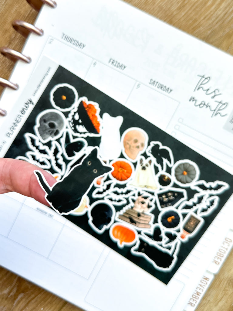 Spooky Halloween Black Cat Bats Skeleton October Deco Planner Stickers (#10,237)