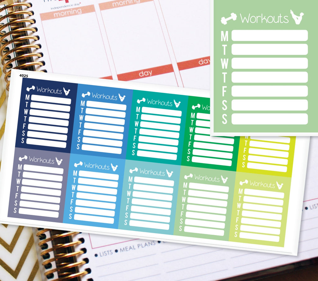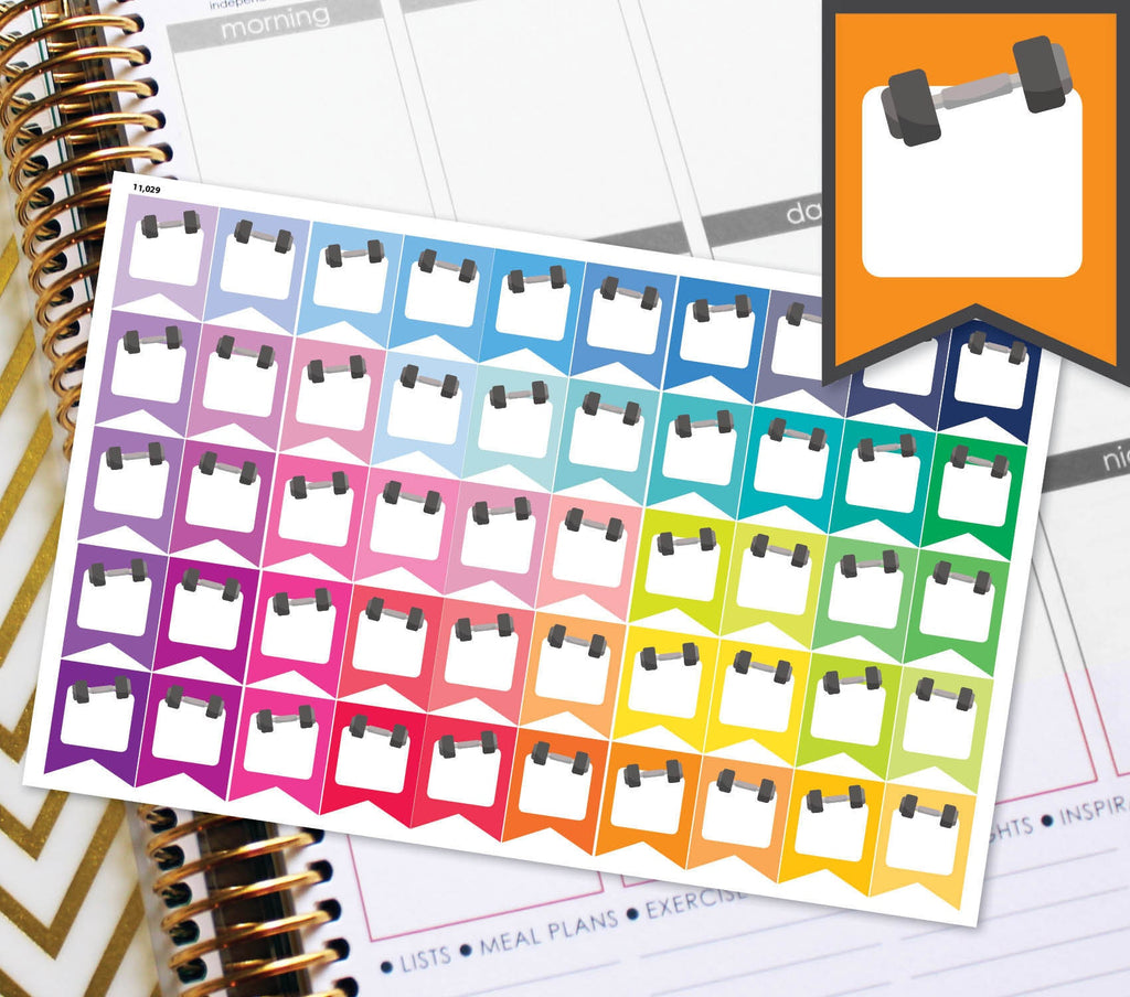 Workout Gym Flag Planner Stickers To Be Used With Erin Condren LifePlanner (ECLP), Happy Planner - 50 Stickers (#11010)