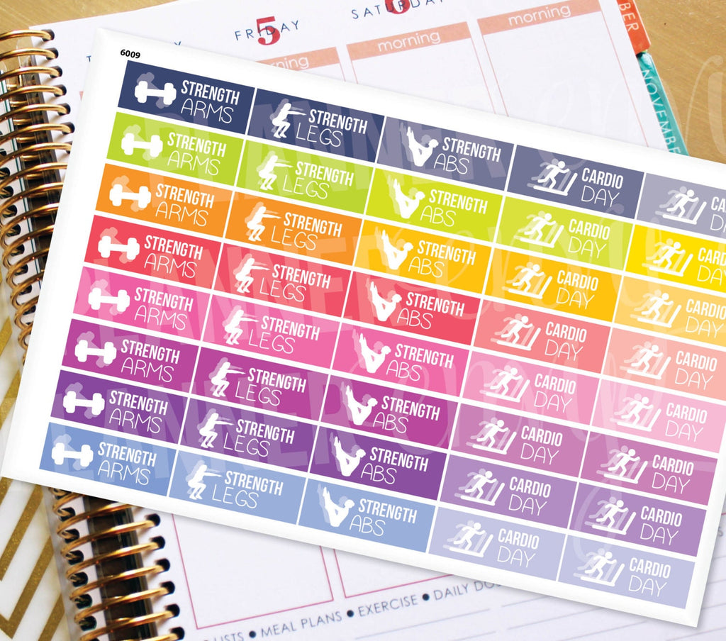 Gym Workout Flag Planner Stickers To Be Used With Erin Condren LifePlanner (ECLP), Happy Planner - 55 Stickers (#7037)