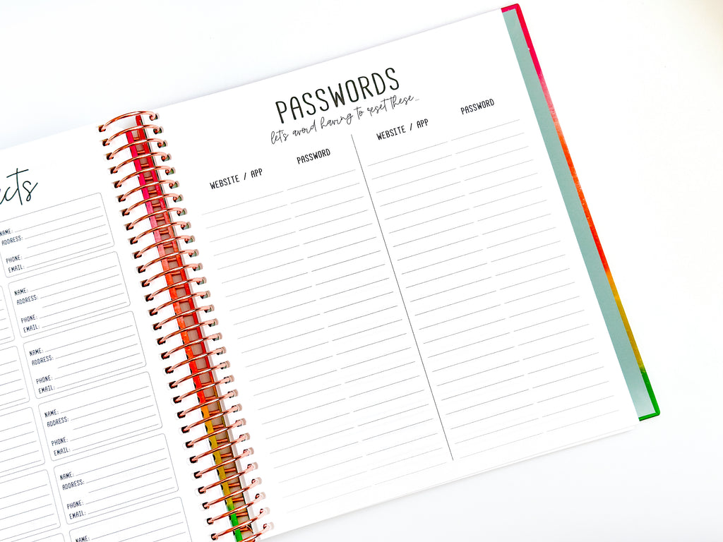 - Extra pages like bucket list, reading/movie ratings, passwords, address list, year at a glance