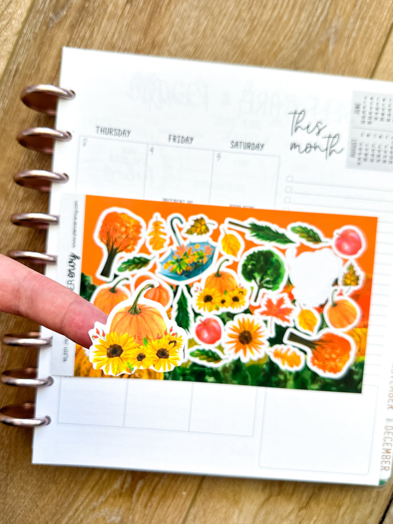 Fall Foliage Sunflowers Halloween Pumpkins October Deco Planner Stickers (#10,201)