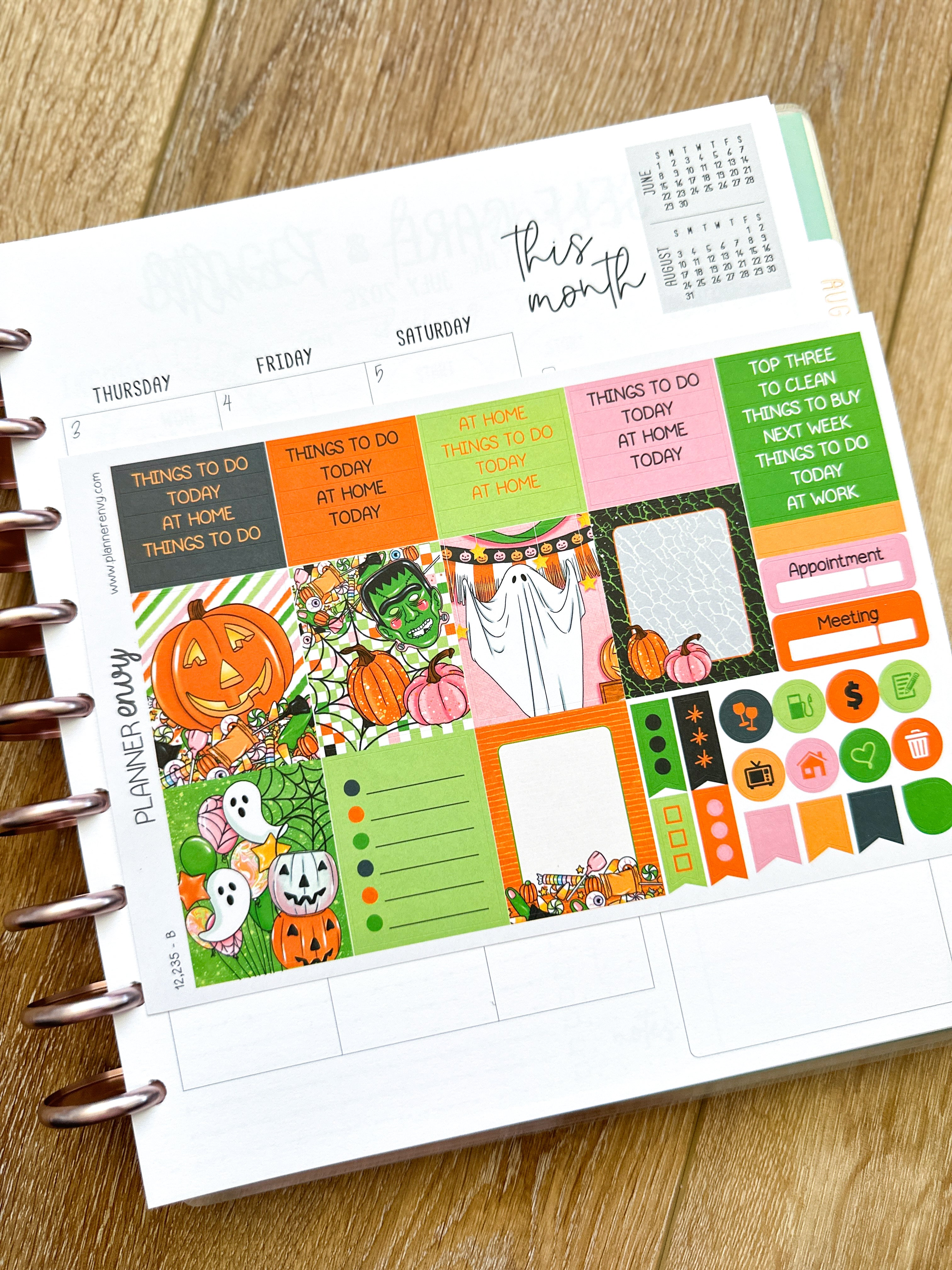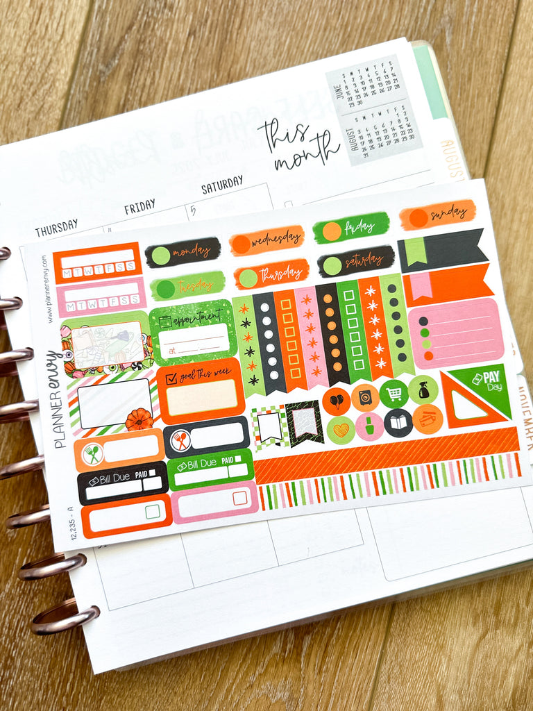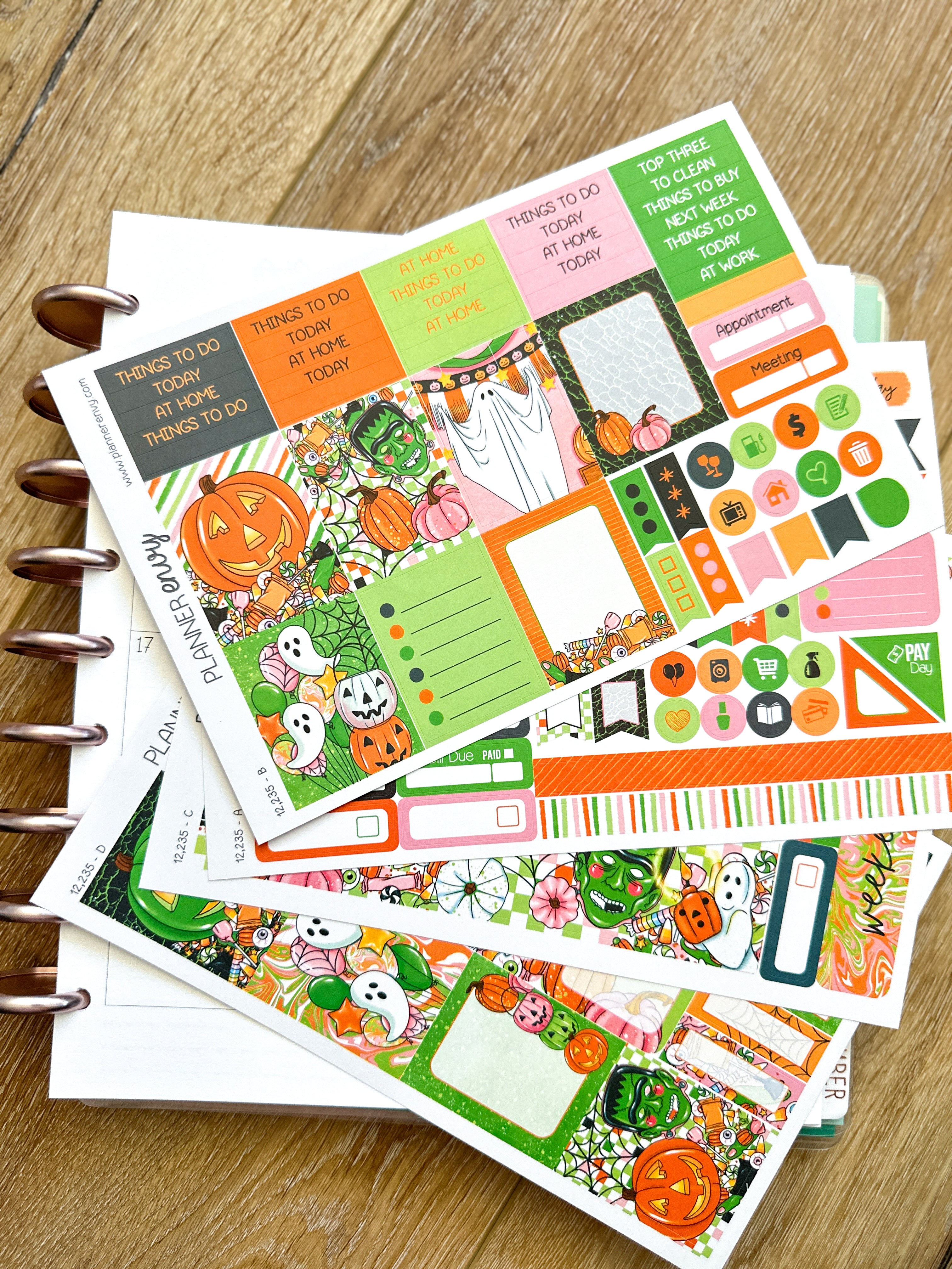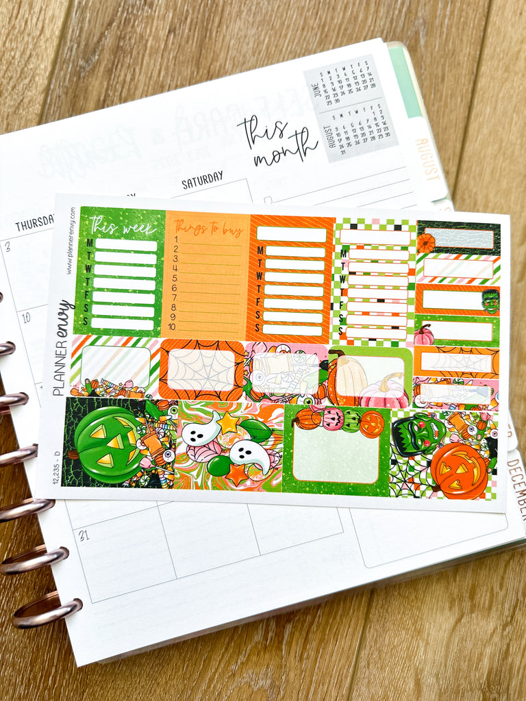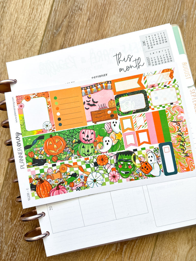 Halloween Pumpkins Ghosts Candy Frankenstein Planner Stickers 4-Page Weekly Kit - 133 Stickers (#12,235)