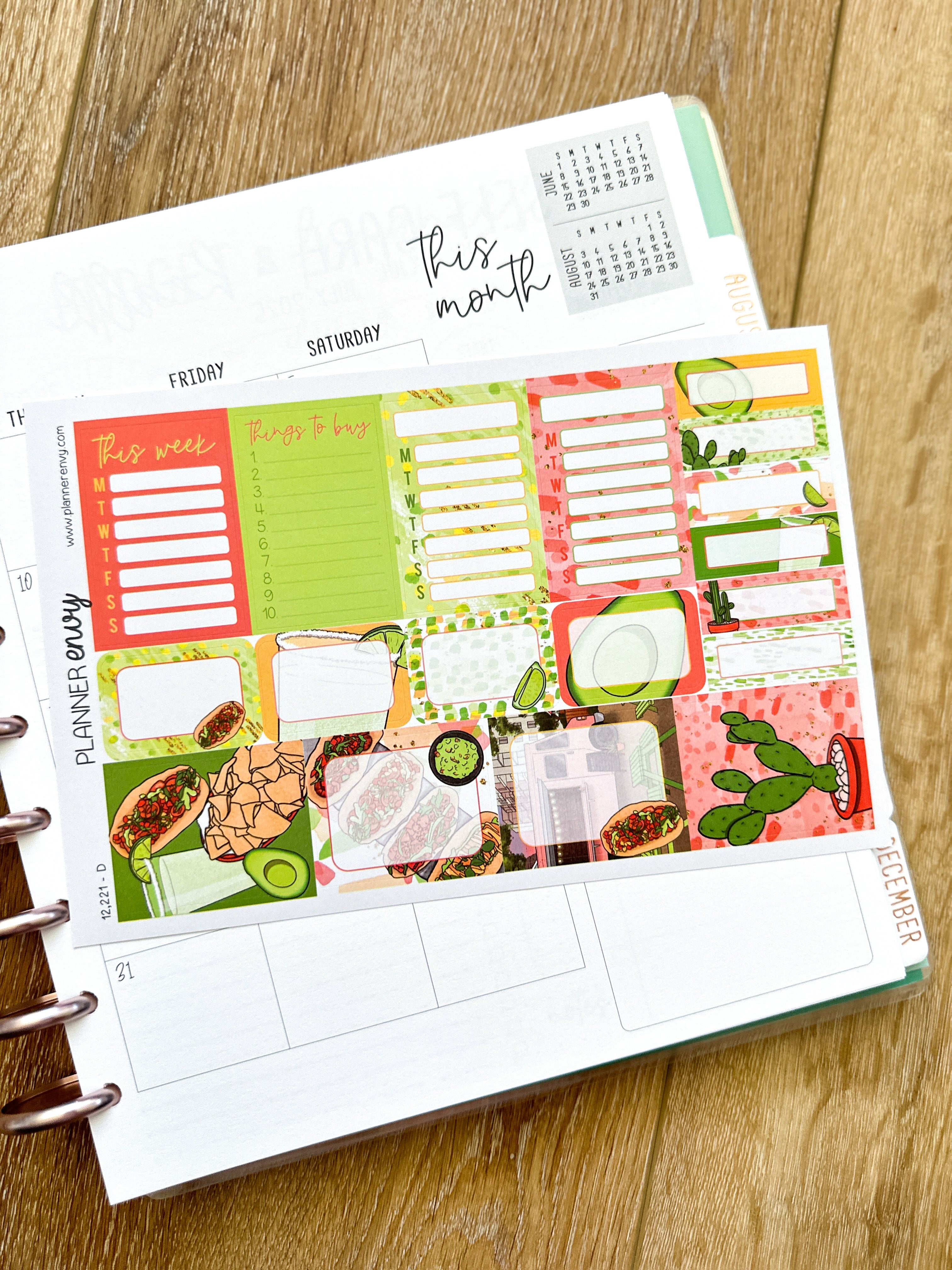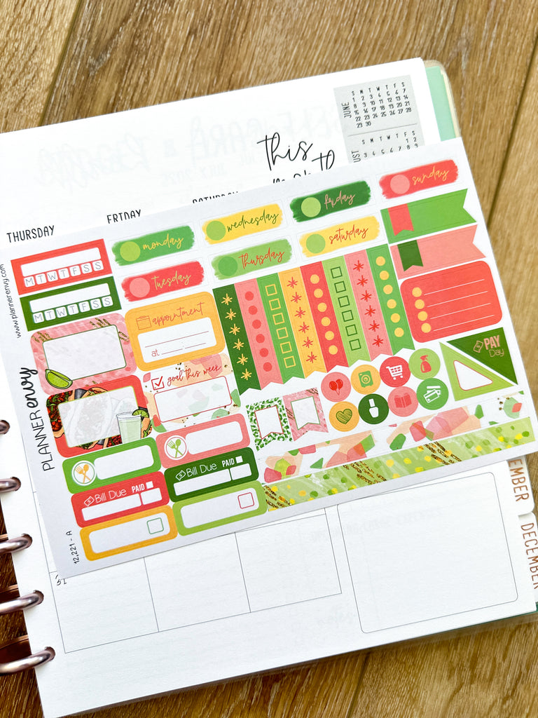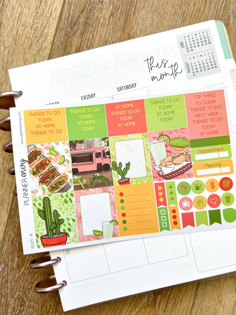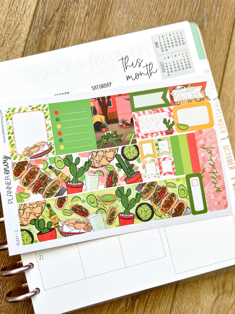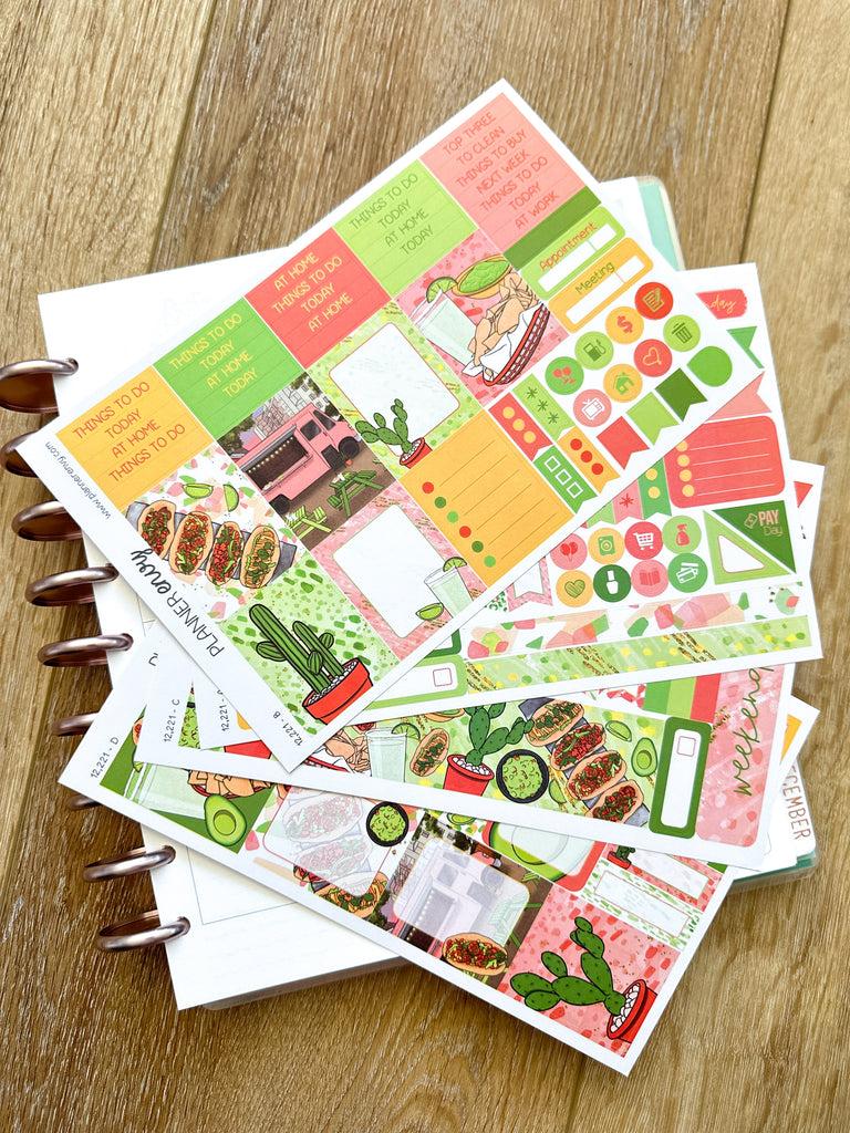 Margaritas & Mexican Food Taco Tuesday Cinco De Mayo Tacos Cactus Planner Stickers 4-Page Weekly Kit - 133 Stickers (#12,221)