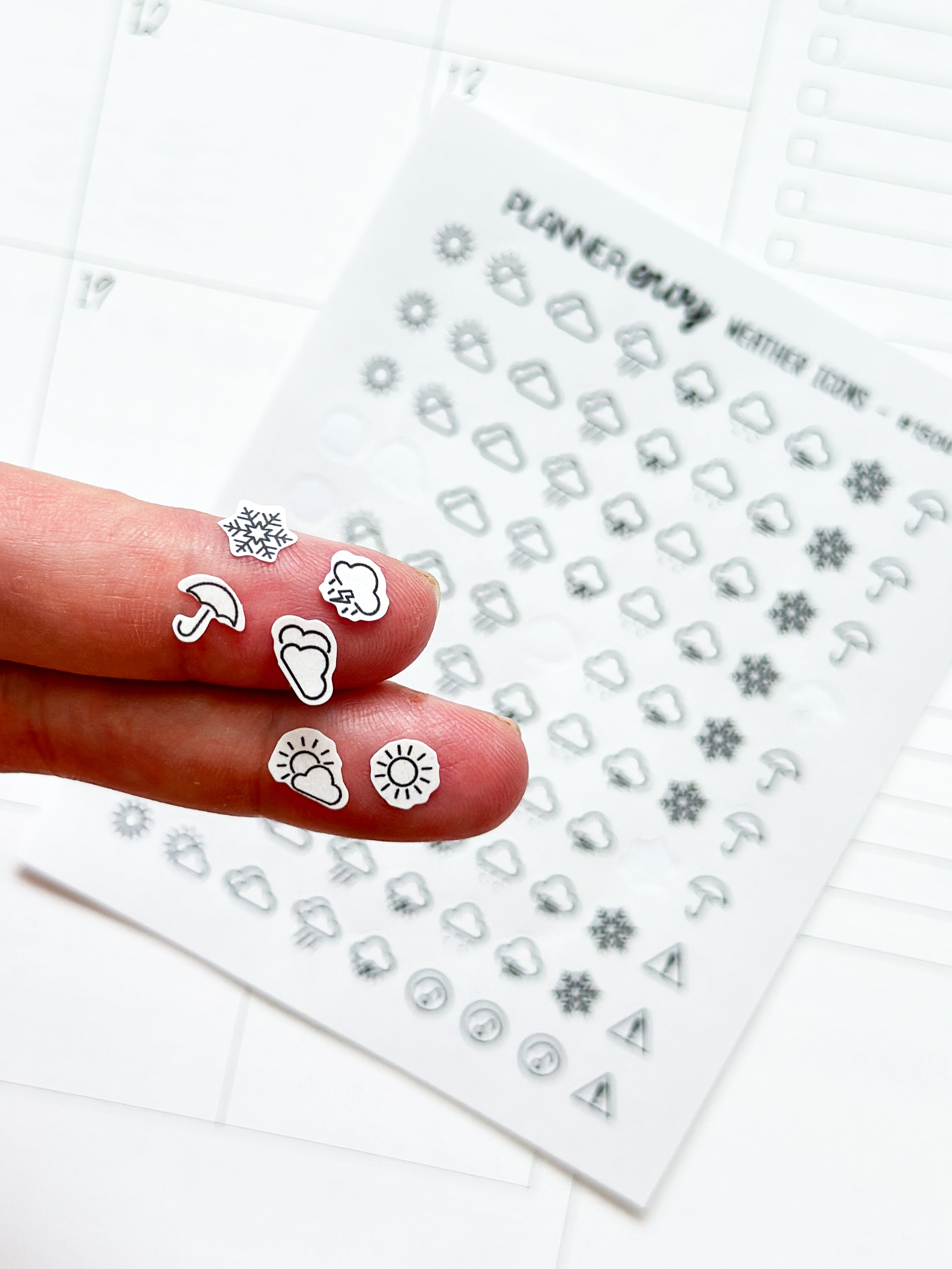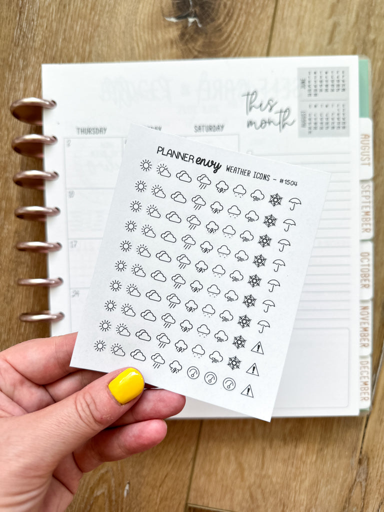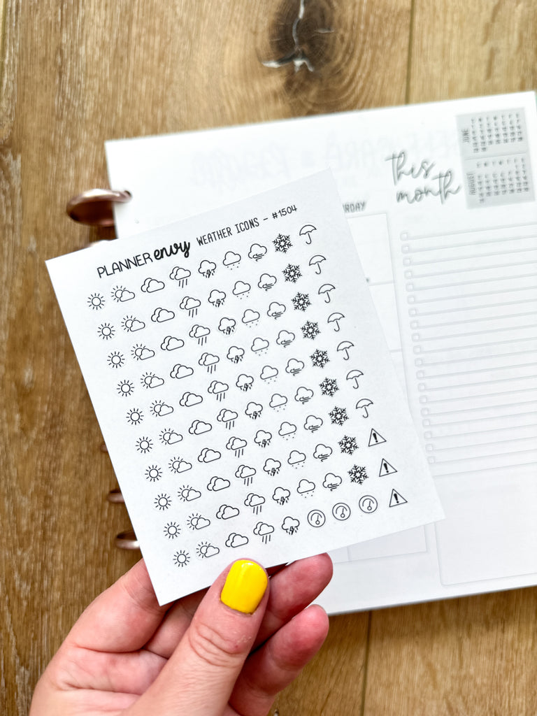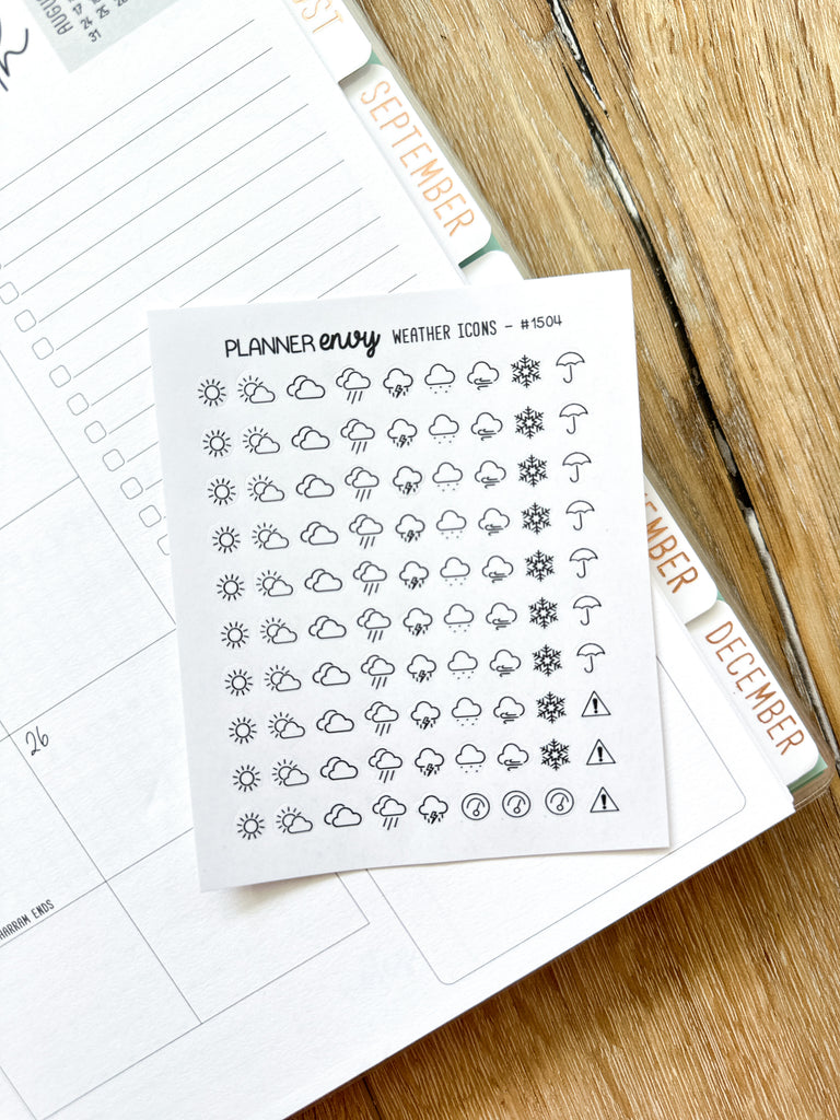 Weather Icons - Cloudy Rainy Snowy Sunny - Minimalist Planner Stickers - 1 Mini Sheet (#1504)