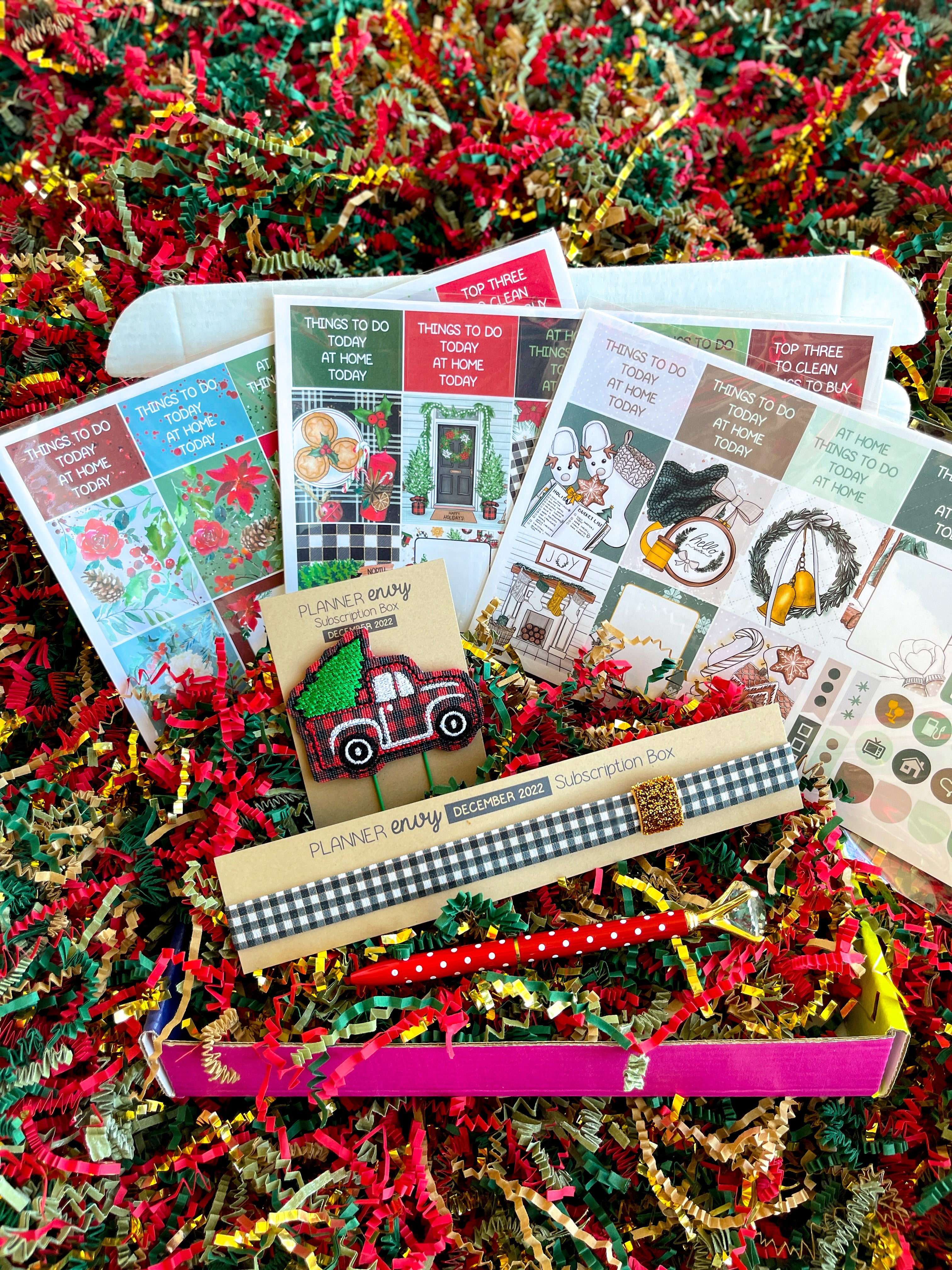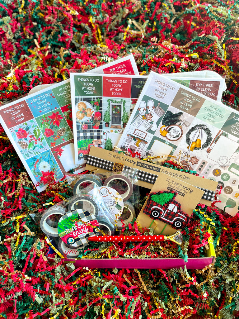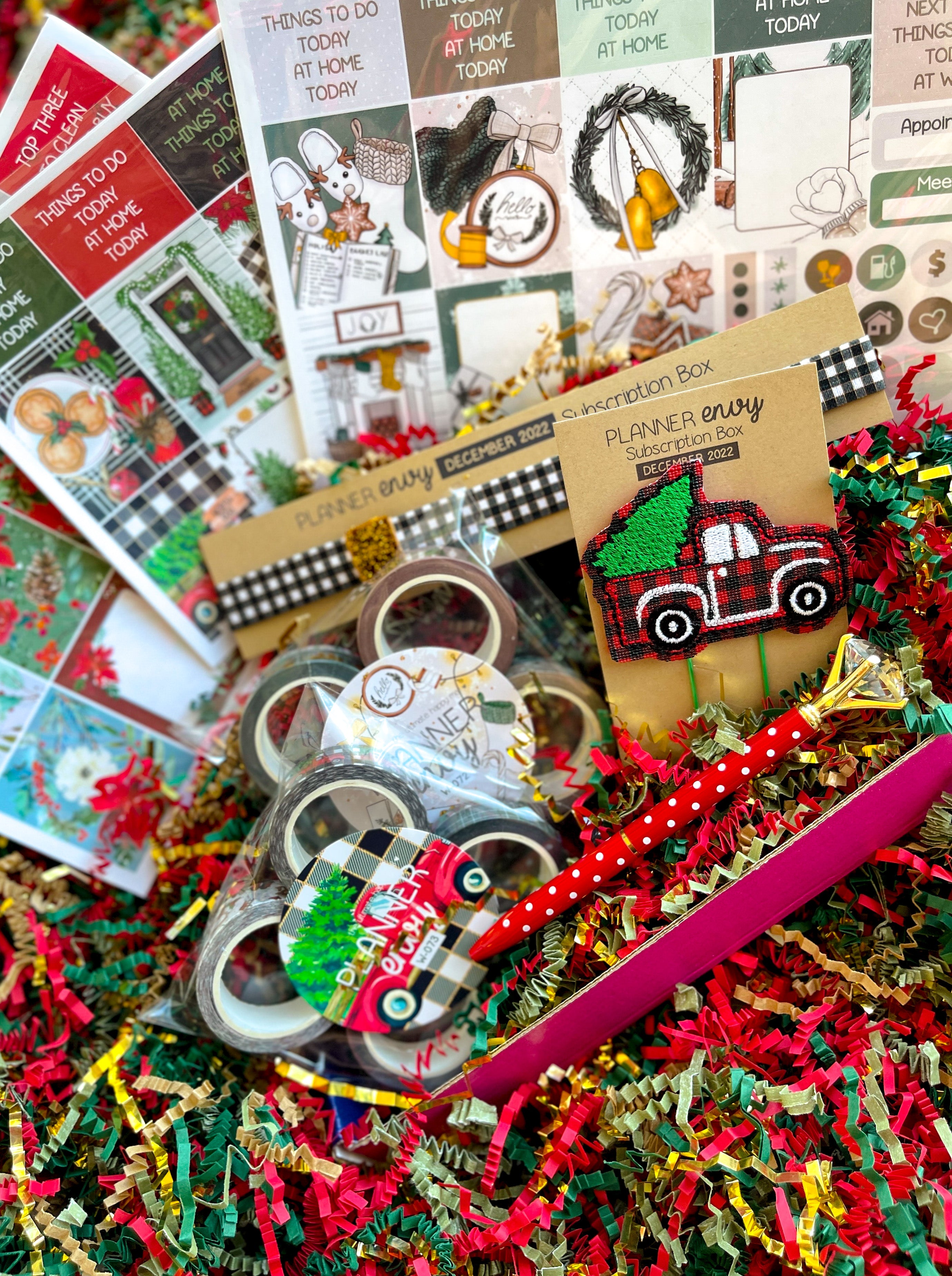 Christmas Holidays Rustic Buffalo Plaid Green and Red Modern Festive Washi Tape. December 2022 Planner Envy Subscription Box.