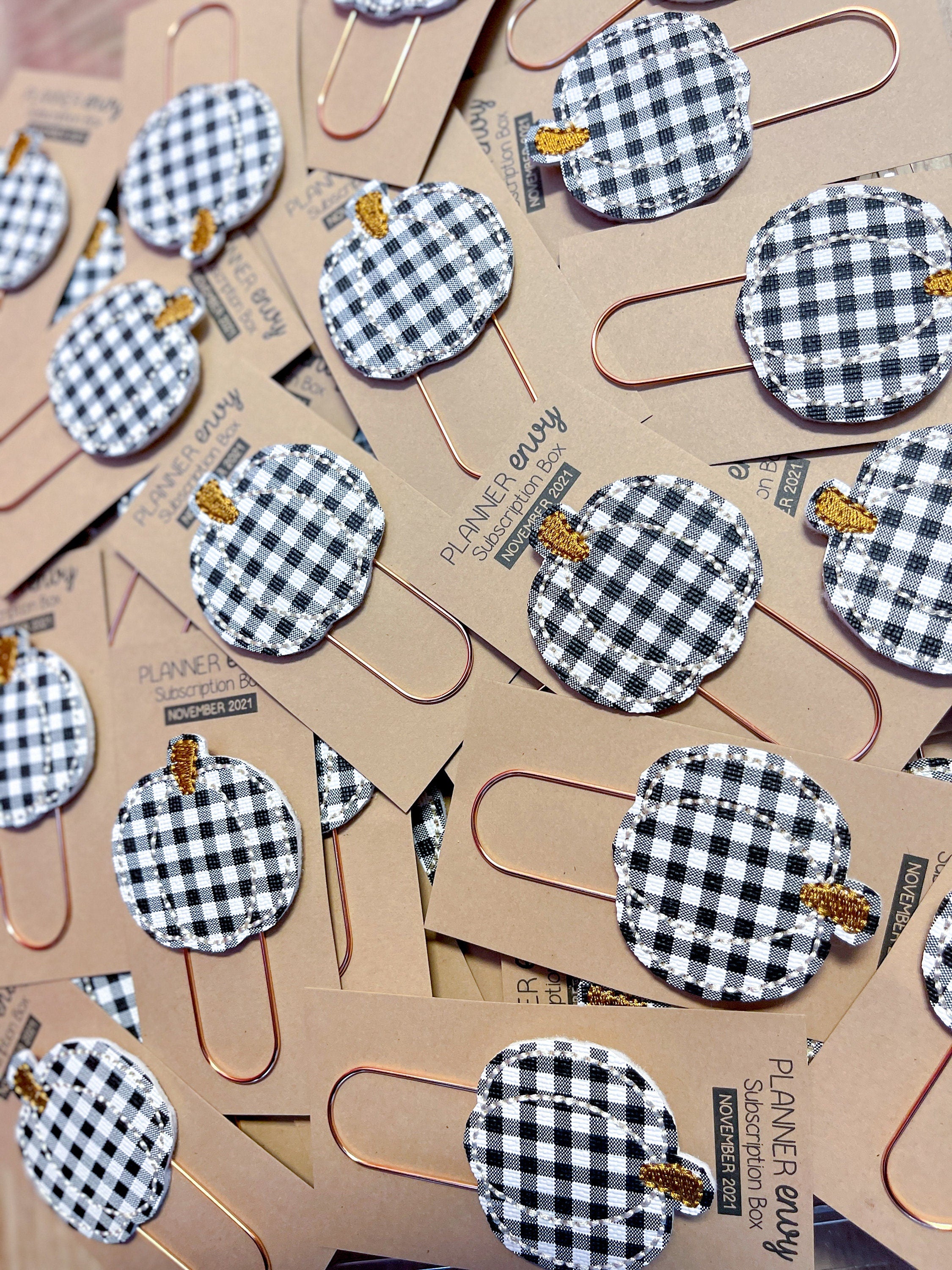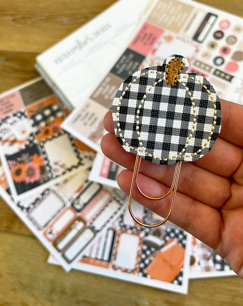 • 1 Buffalo Plaid Pumpkin Feltie Paperclip/Bookmark Big Clip