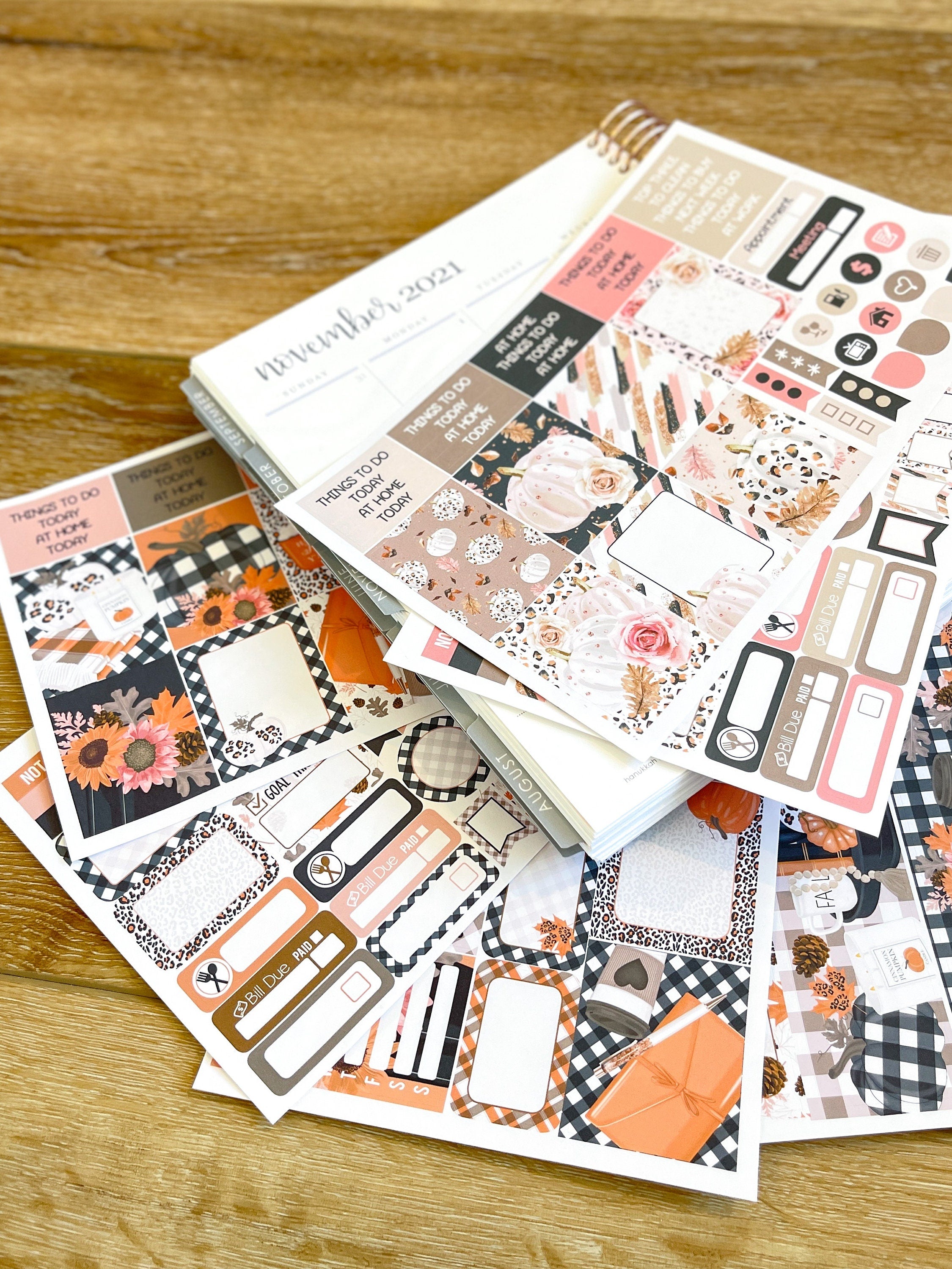 Fall Neutral Animal Print & Buffalo Plaid Check Themed Box of Planner Stickers & Accessories (#SUB2021011)