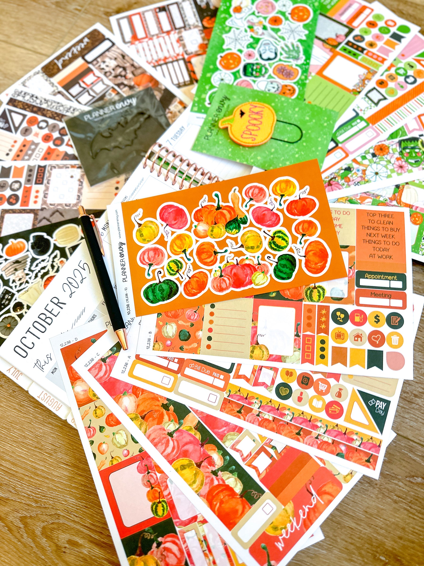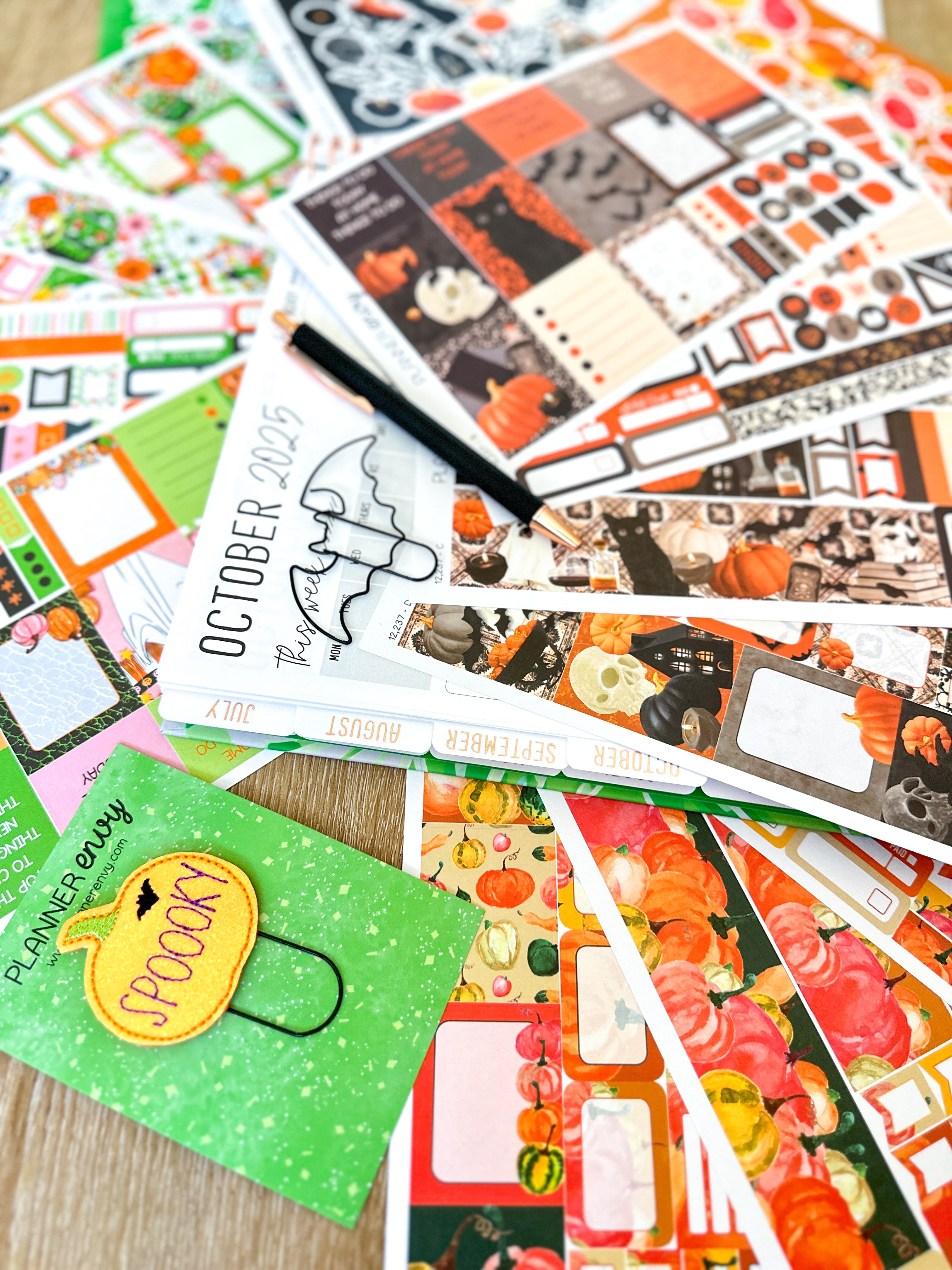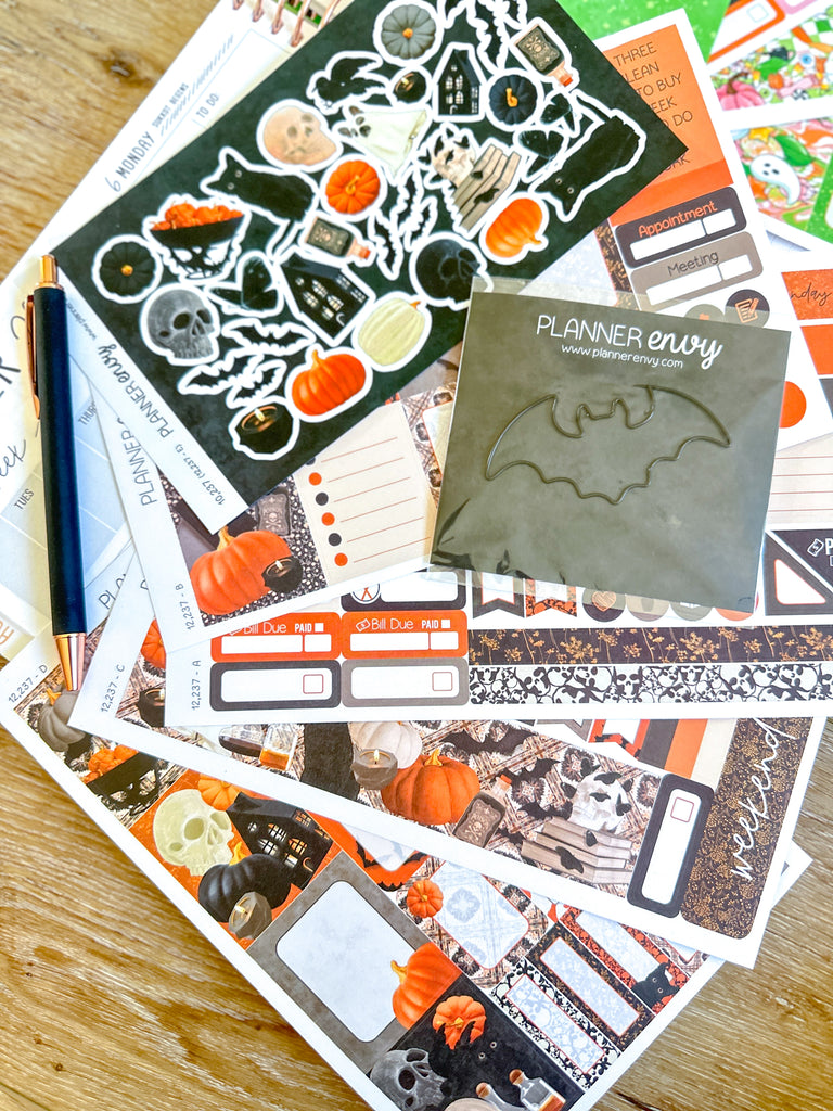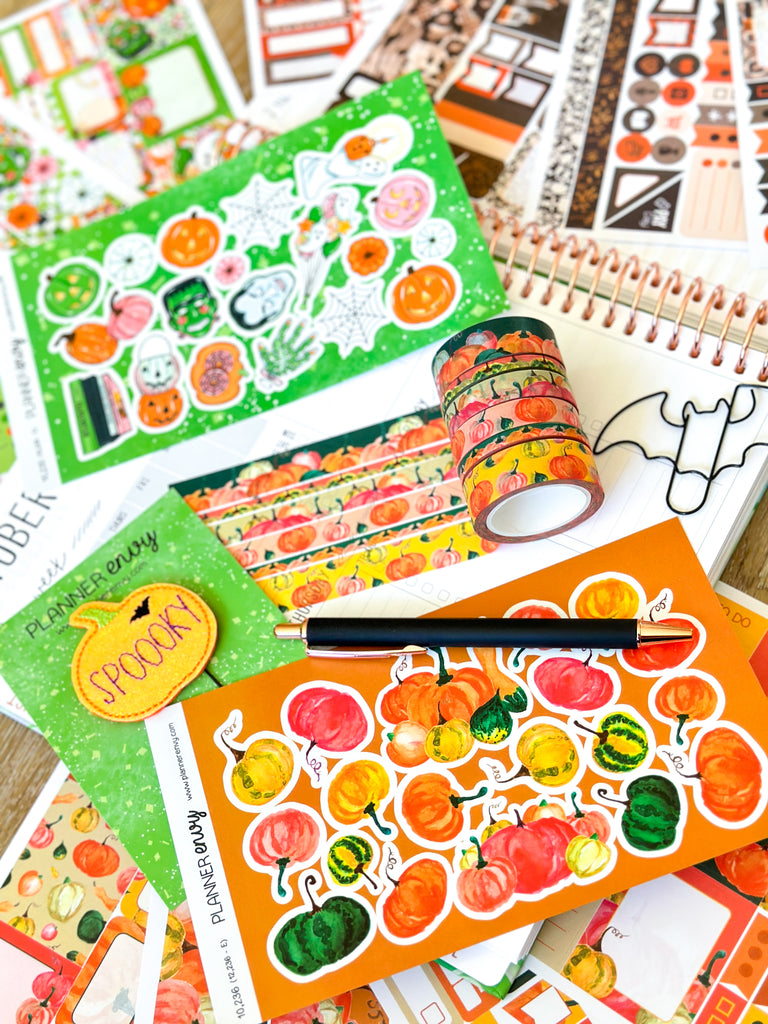 • Planner accessories shown: big shaped bat clip, big pumpkin feltie clip, and pen