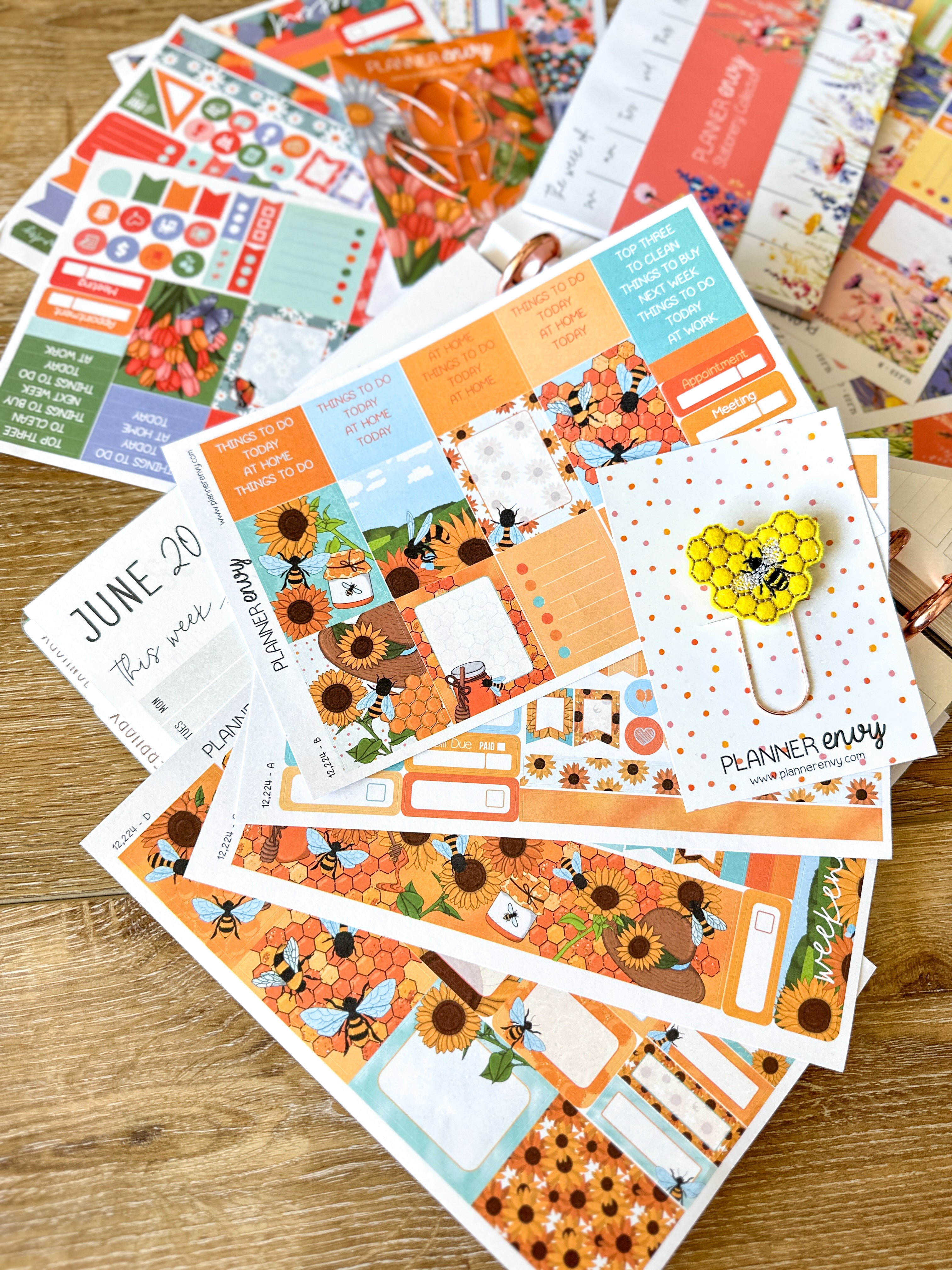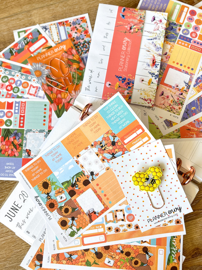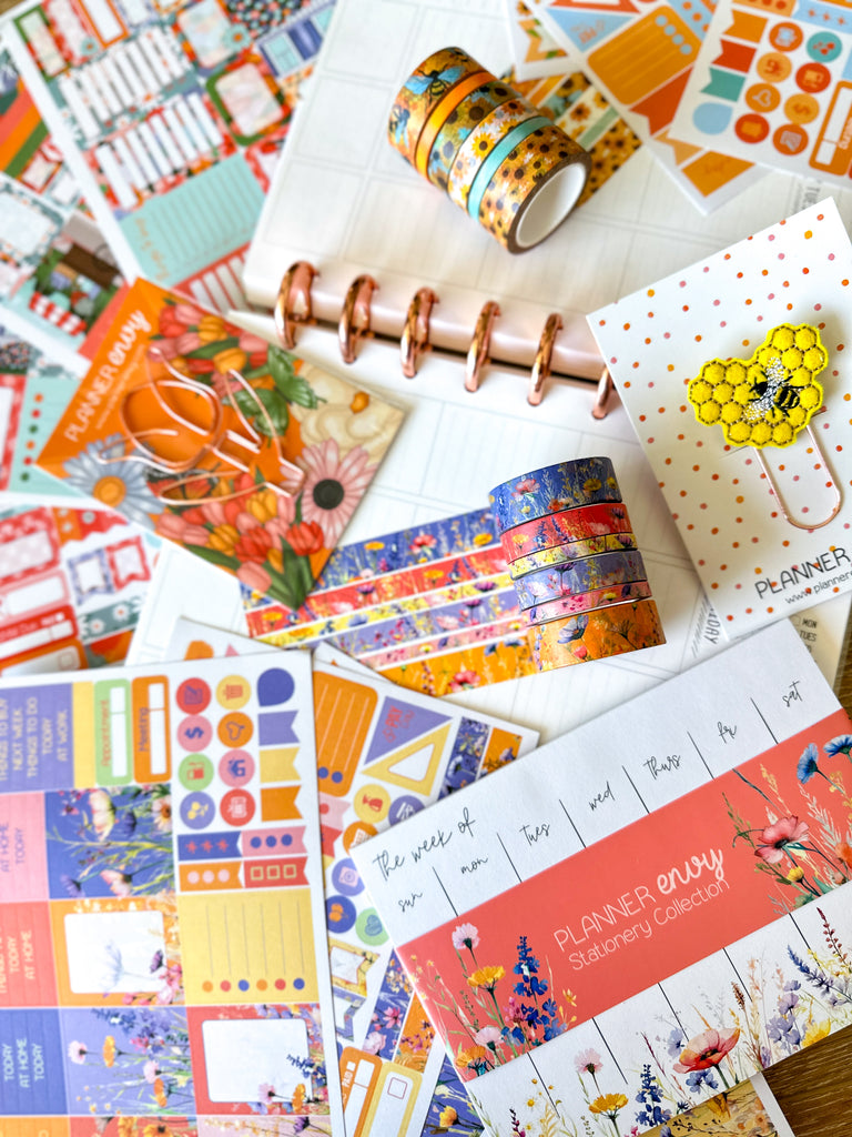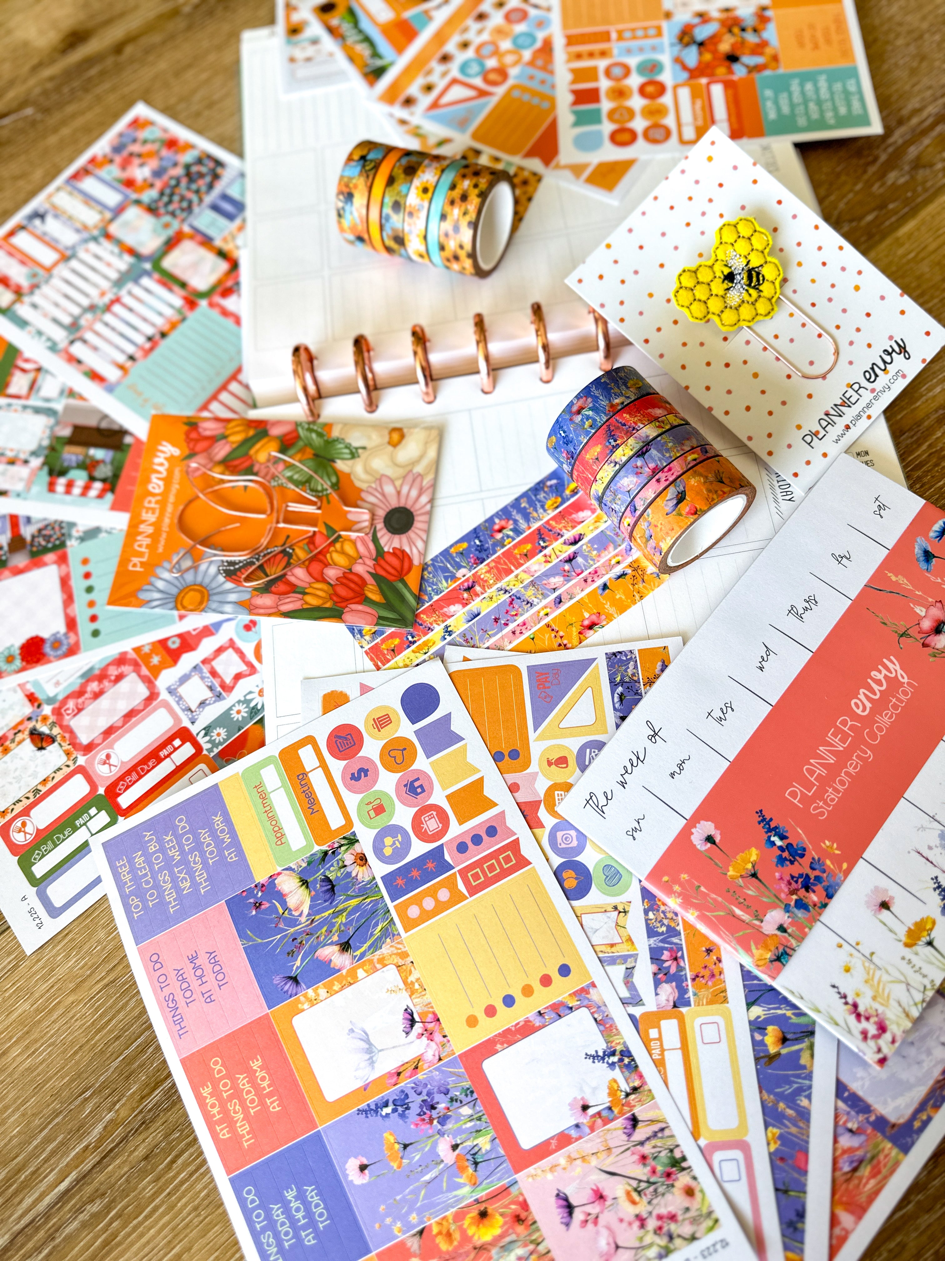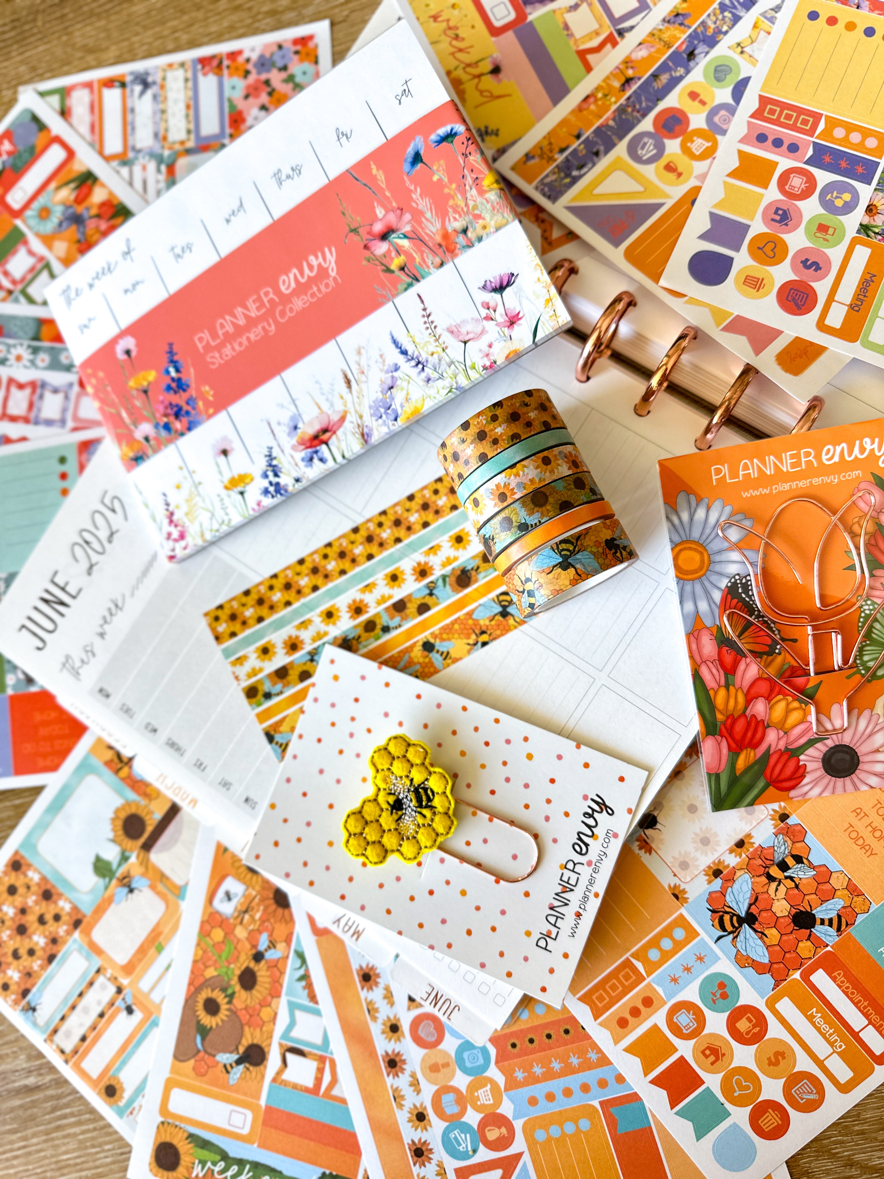 • Planner accessories shown: 5x7 notepad, big feltie clip, and shaped flower clip