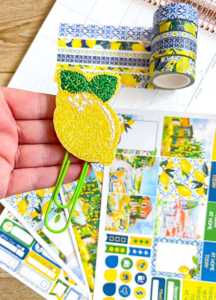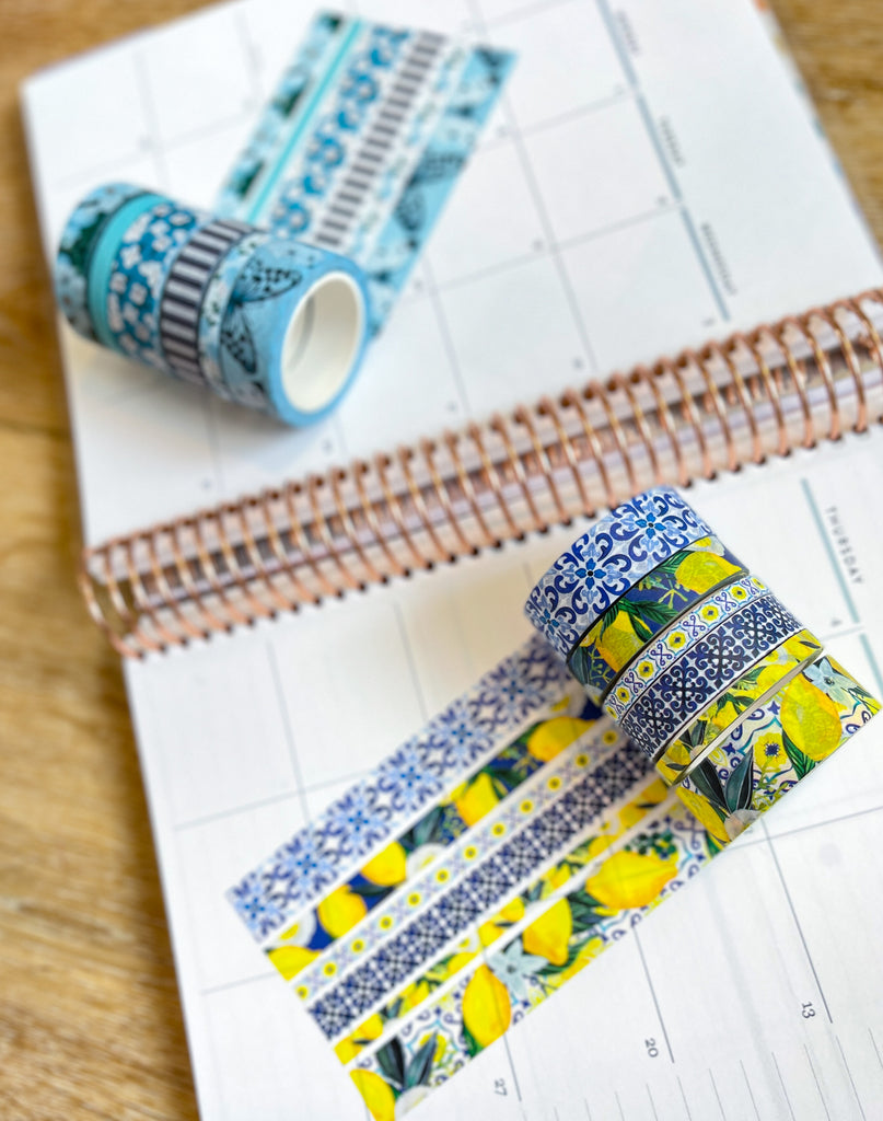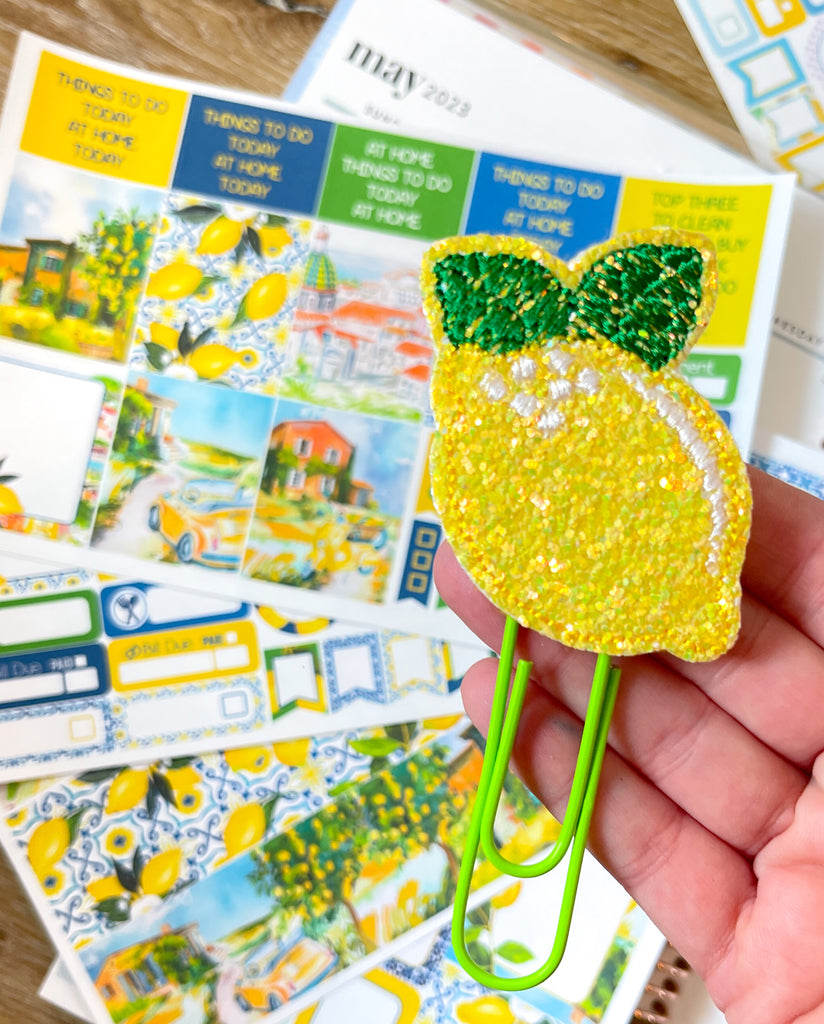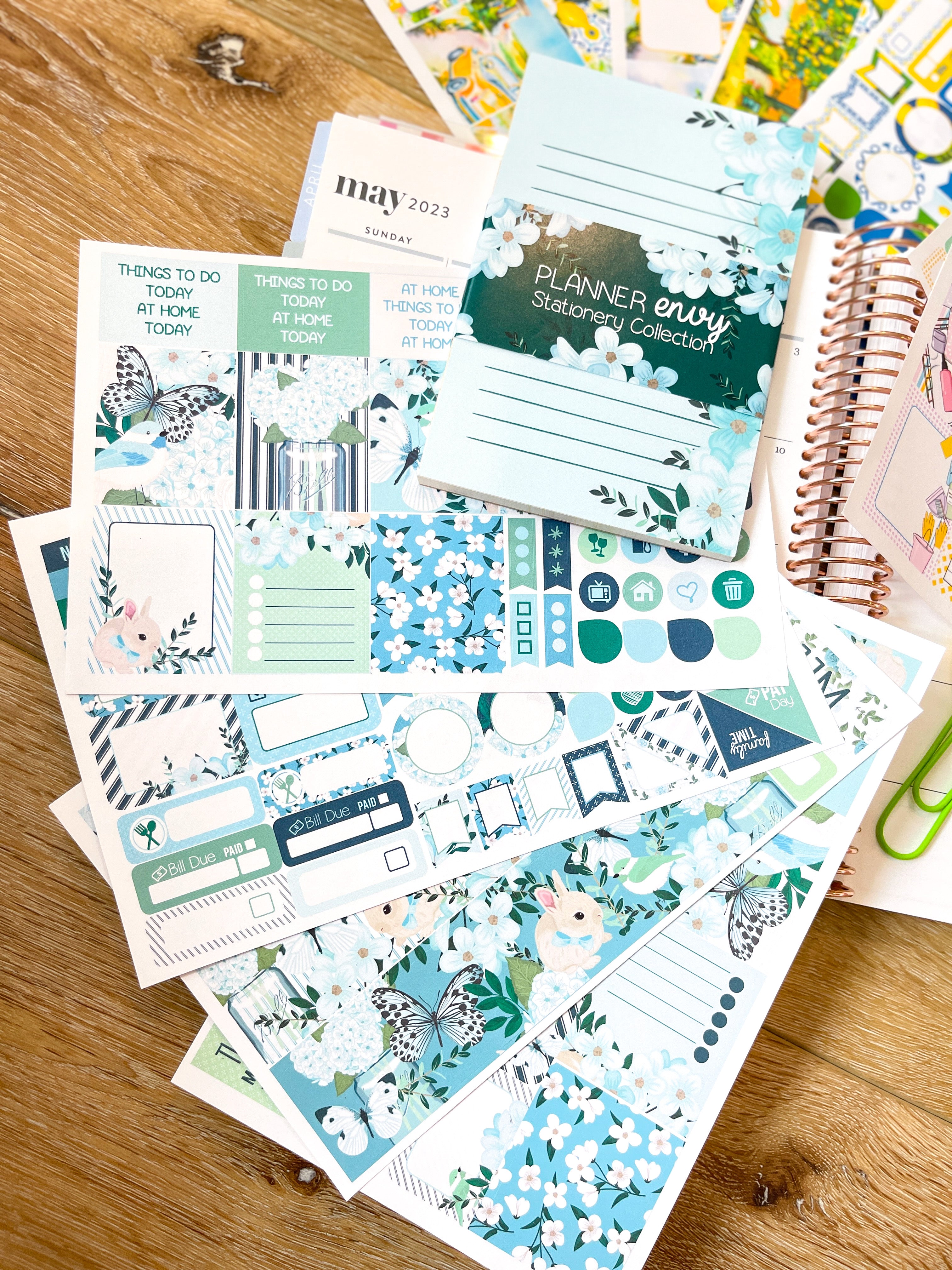 Lemons Italy Tuscany Spring Cleaning Birds Bunnies Light Blue Navy Yellow. May 2023 Planner Envy Subscription Box.
