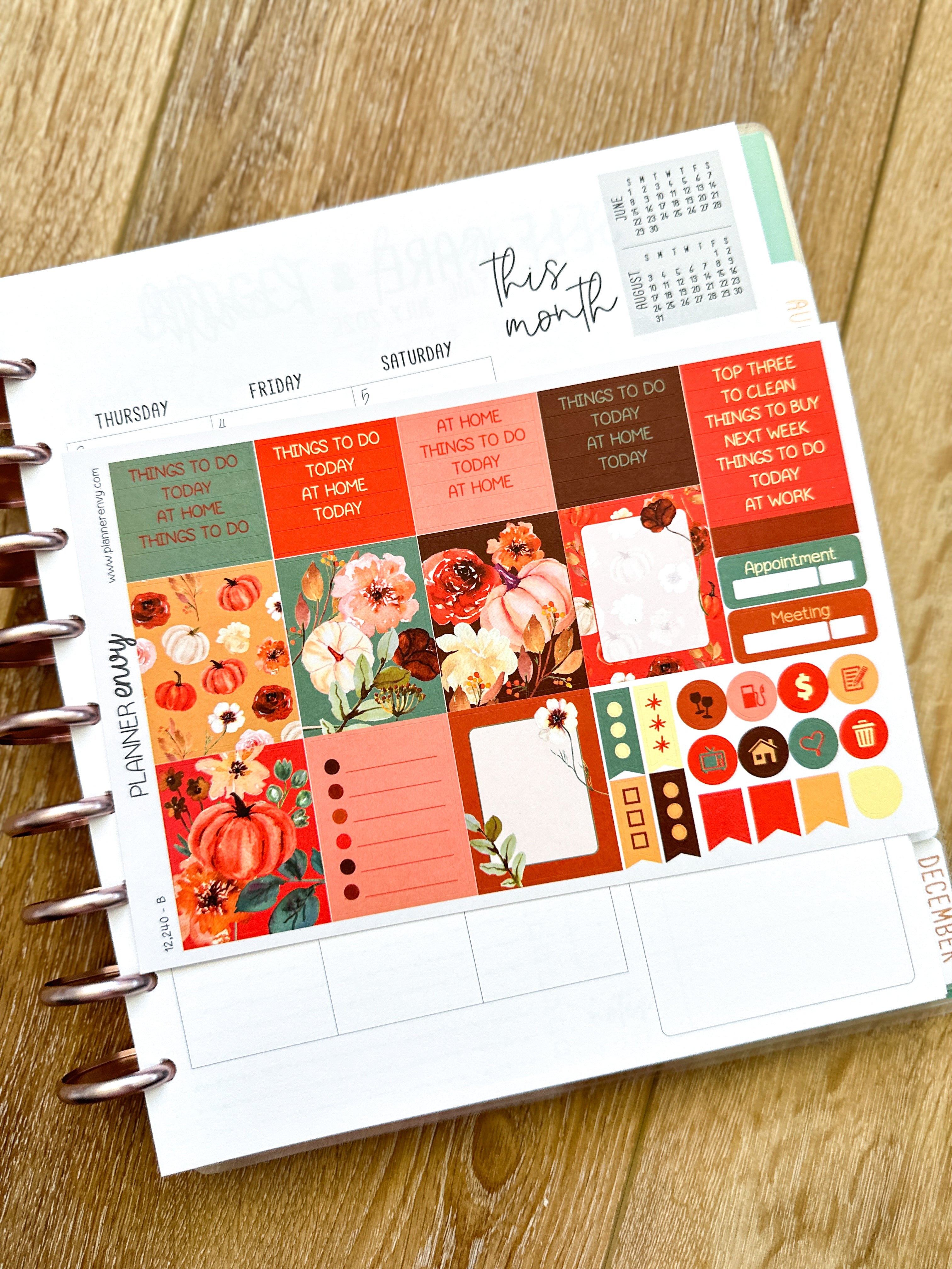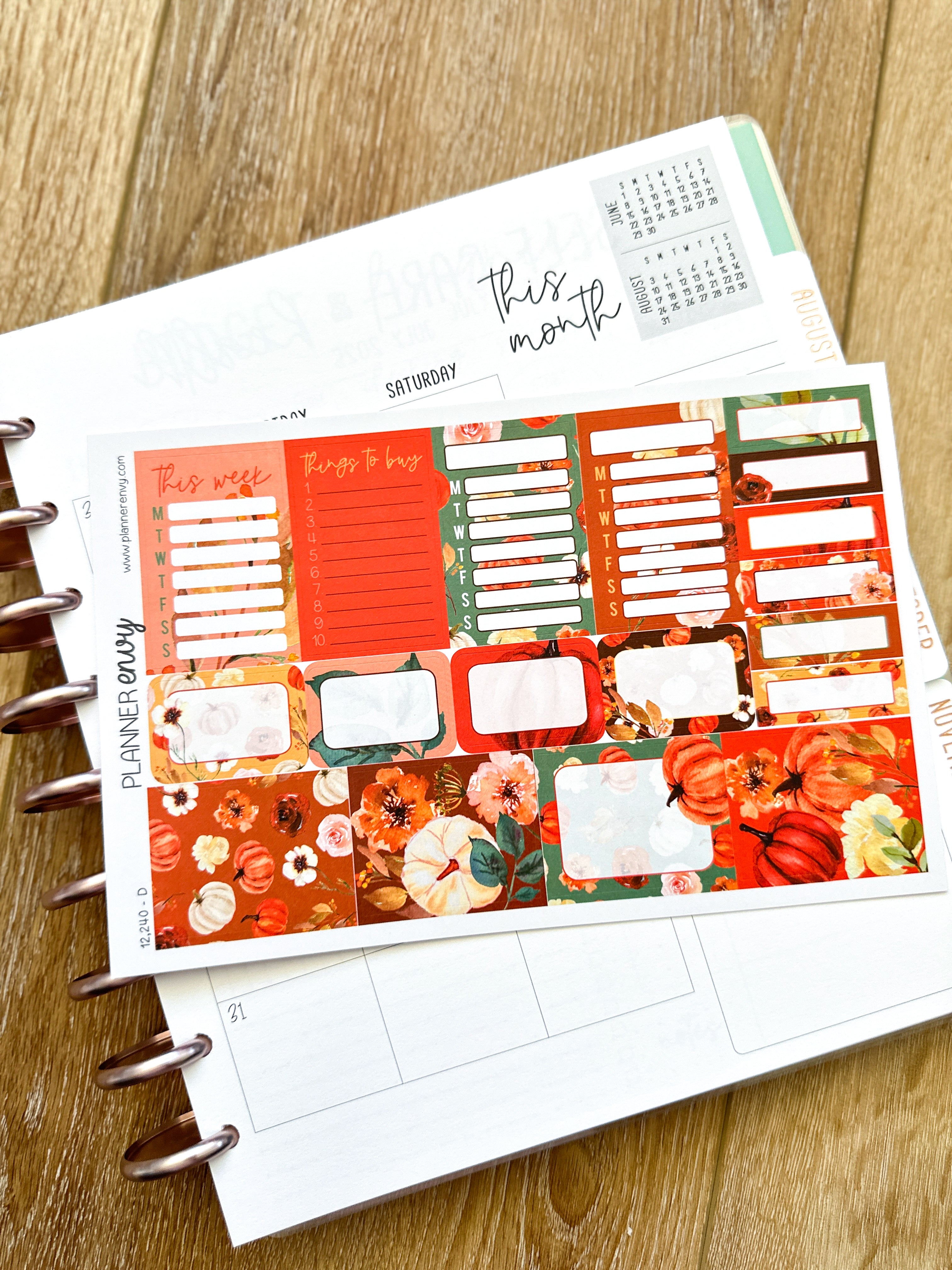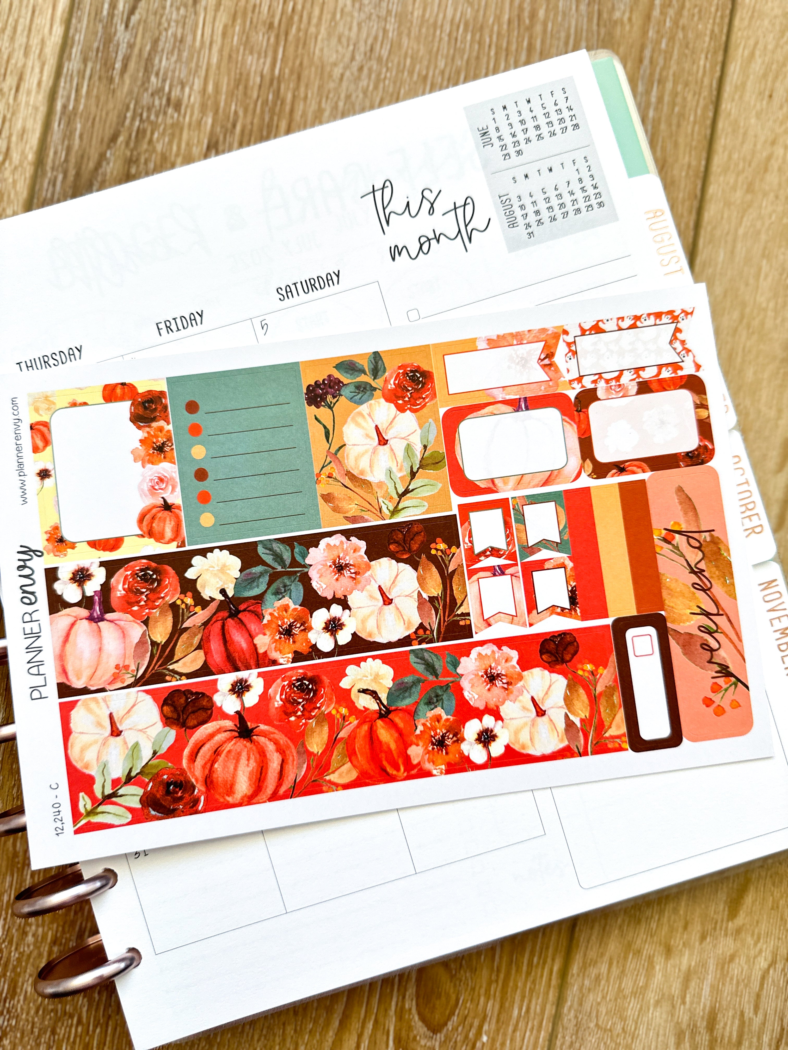 Fall Foliage Pumpkins Florals Cream Rust Orange Flowers Thanksgiving Halloween Planner Stickers 4-Page Weekly Kit - 133 Stickers (#12,240)