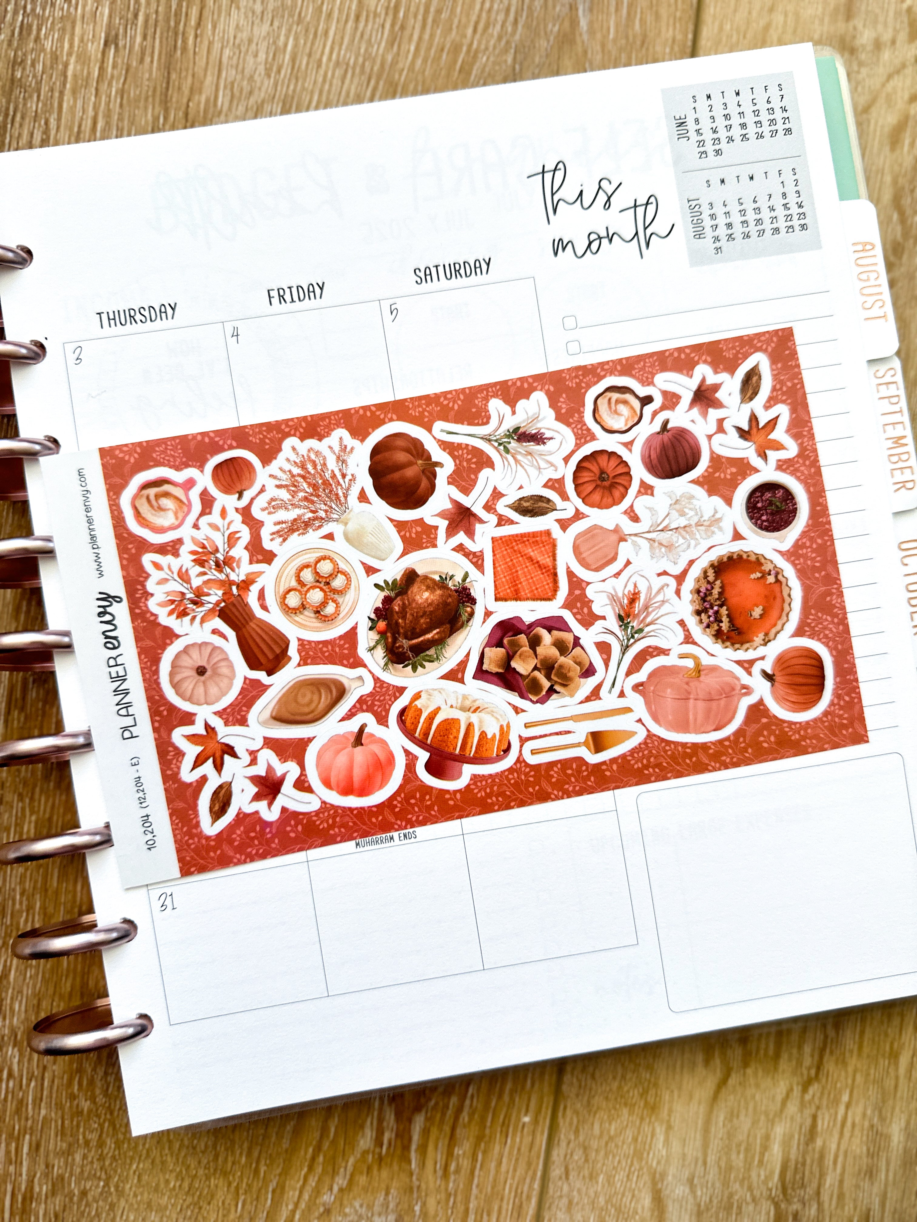 Thanksgiving Dinner Turkey Pumpkin Pie November Deco Planner Stickers (#10,204)