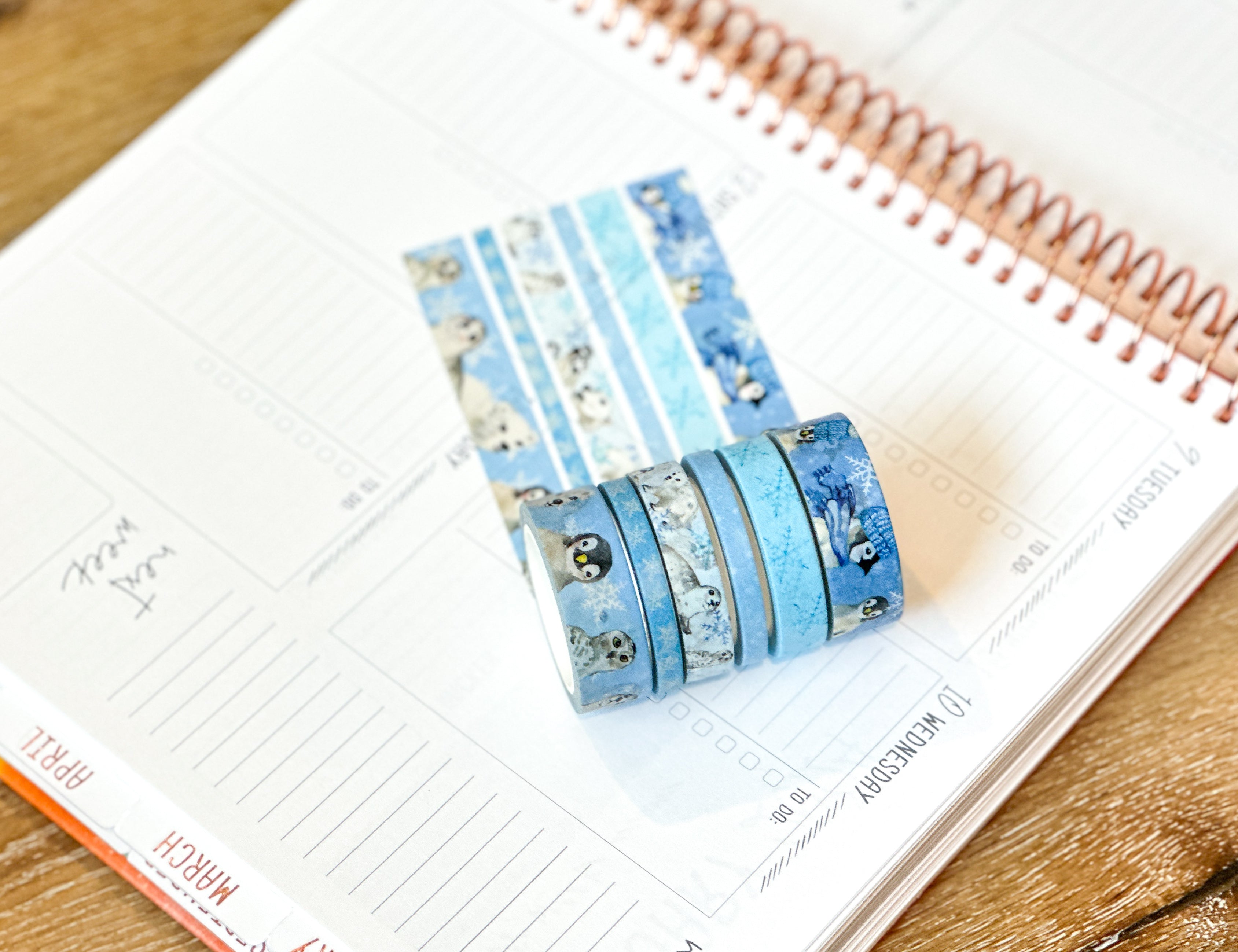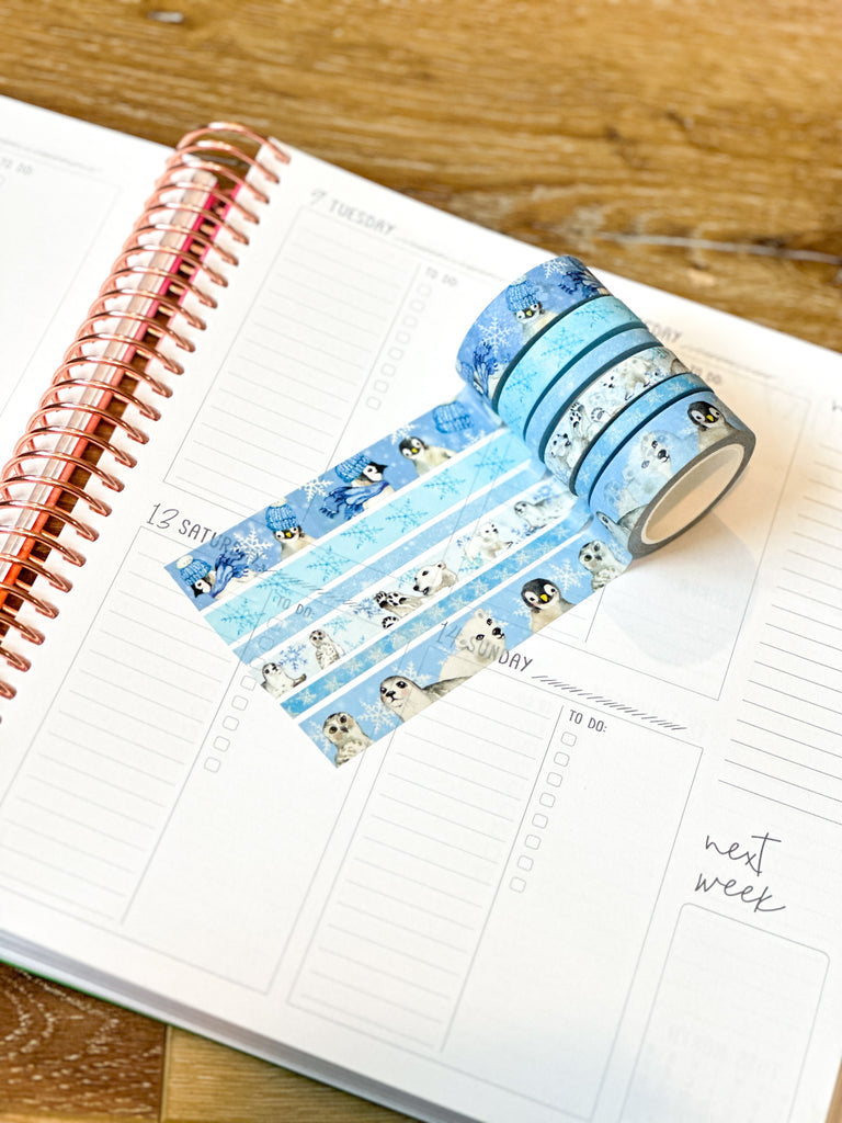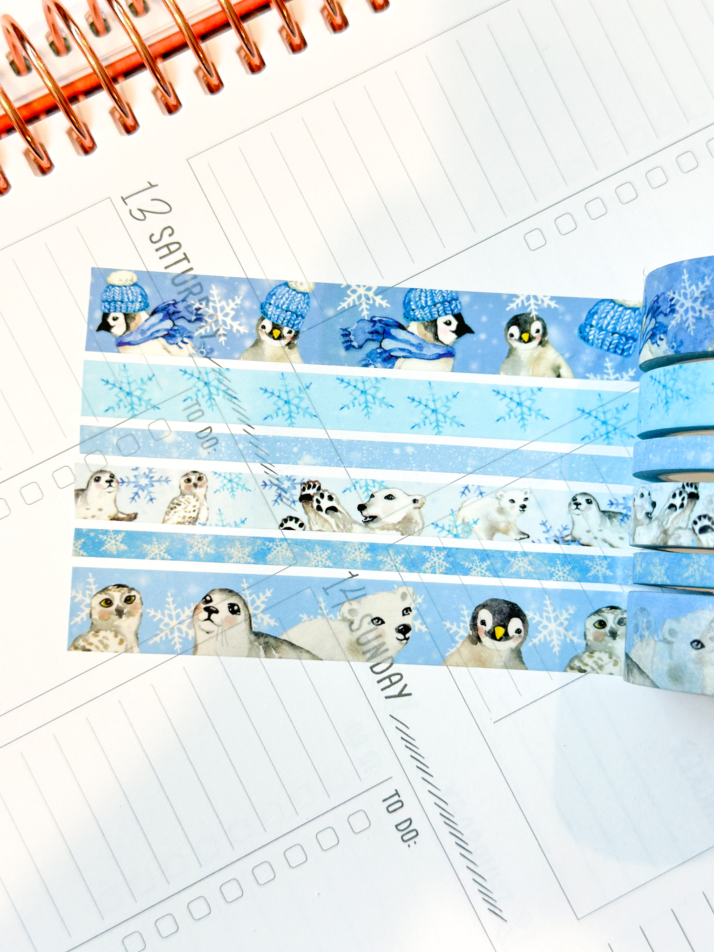 Snow Animals Penguins Polar Bears Seals Winter Arctic Animals Washi Tape Set January 2024 - W099