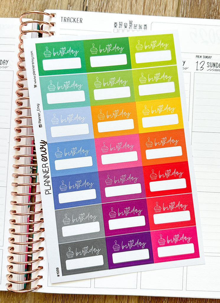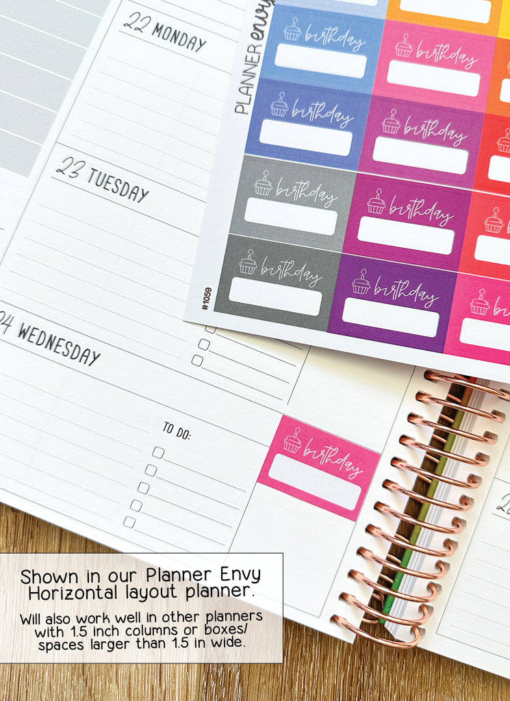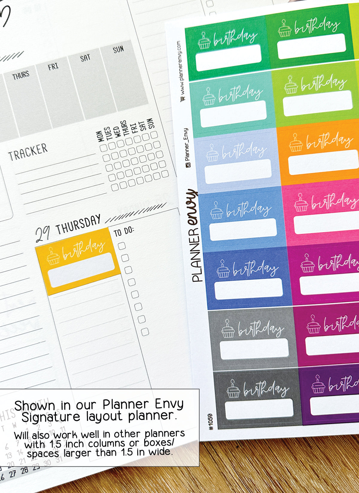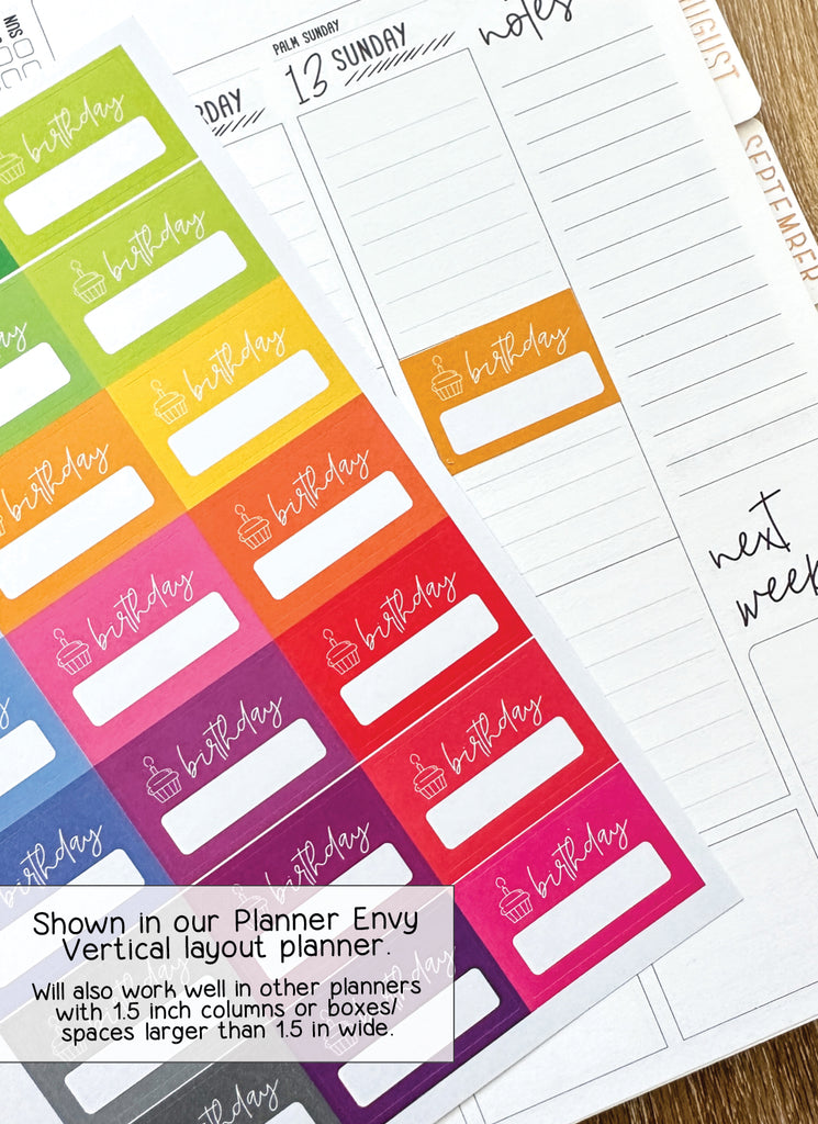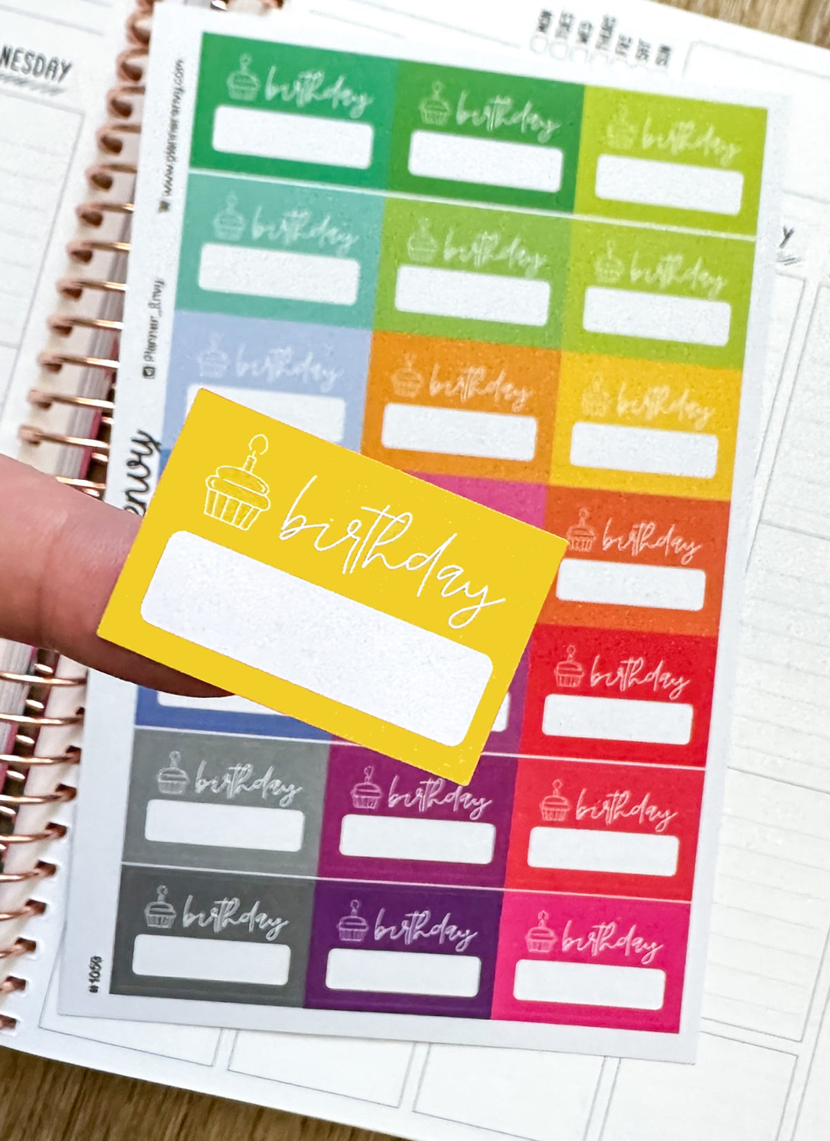 Birthday Celebration Planner Stickers - 1.5 x 1 Inch - Party Event Stickers - 21 Stickers / 1 Sheet (#1059)