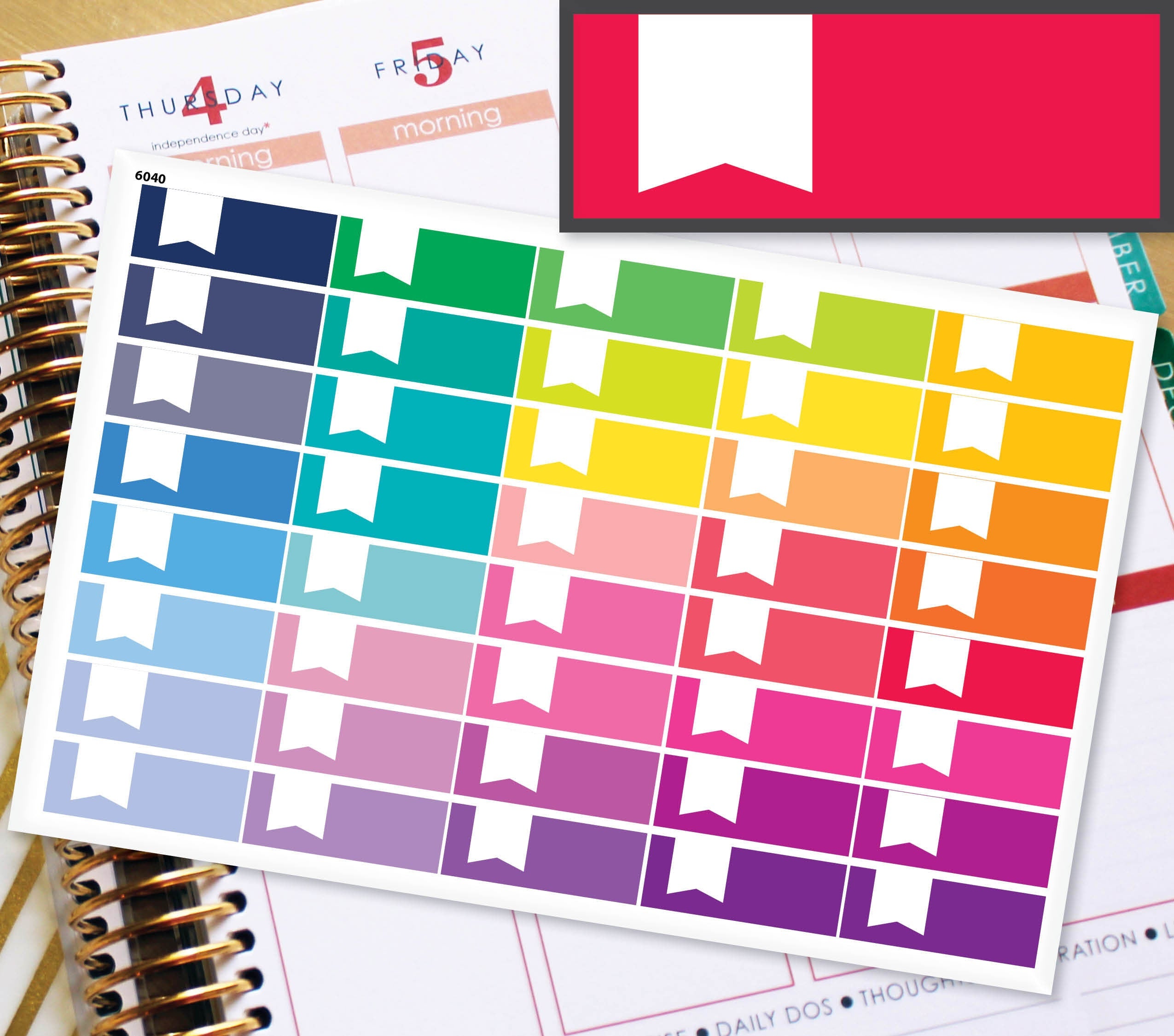 Blank Quarter Boxes Flags Planner Stickers Erin Condren Life Planner (ECLP) - 40 Appointment Stickers (#6040) ✦ Each sticker is 1.5 inches wide by .5 inch in length. These stickers are perfectly sized to fit the Erin Condren Life Planners. ✦ Sticker sheet is 5.5inches wide by 8.5 inches long. ✦ 40 stickers per sheet. ✦ Professionally printed on matte sticker paper. Once these are positioned, they cannot be moved, although they do pull up from the EC paper if you are careful. ✦ Bright, vibrant, and ready to make your planner stand out! ✦ These do not have any finish and should be easy to write on with most pens - ballpoint pens and fine tip sharpies seem to look the best! ✦ Save on shipping when you buy multiple sheets! ▶ ▶ ▶ To view more Planner Envy brand stickers, click here to view my shop: https://www.etsy.com/shop/PlannerEnvy ▶ ▶ ▶ DEALS & DISCOUNTS ◀◀◀ ✦ Spend $15 or more, get 10% off >> "SAVE10ON15" ✦ Spend $20 or more, get 15% off >> "SAVE15ON20" ✦ Spend $35 or more, get 20% off >> "SAVE20ON35" **ONE COUPON CODE PER TRANSACTION** ▶ ▶ ▶ CURRENT SHIPPING TIME ◀◀◀ Planner stickers will usually be shipped within 3-5 business days depending on current orders! Please check my shop homepage and announcement to see my current shipping time and make sure I am not on vacation or out of town. ▶ ▶ ▶ USAGE & COPYRIGHT ◀◀◀ ALL ITEMS ARE FOR PERSONAL USE ONLY. © 2015 Planner Envy PRINTED PAGES, STICKERS AND OTHER PHYSICAL ITEMS All of my physical items are for person use only. No commercial use. They can be used for your personal planner or be gifted for personal use. They are not to be sold as is or manipulated, alone or as part of a group or package, on or off of Etsy.com. Not intended for resale of any kind. © 2015 Planner Envy ▶ ▶ ▶ Check out my other shops! :) ◀◀◀ I am a longtime Etsy seller - check out my main shop for personal and business marketing design templates - VivifyCreative: https://www.etsy.com/shop/VivifyCreative