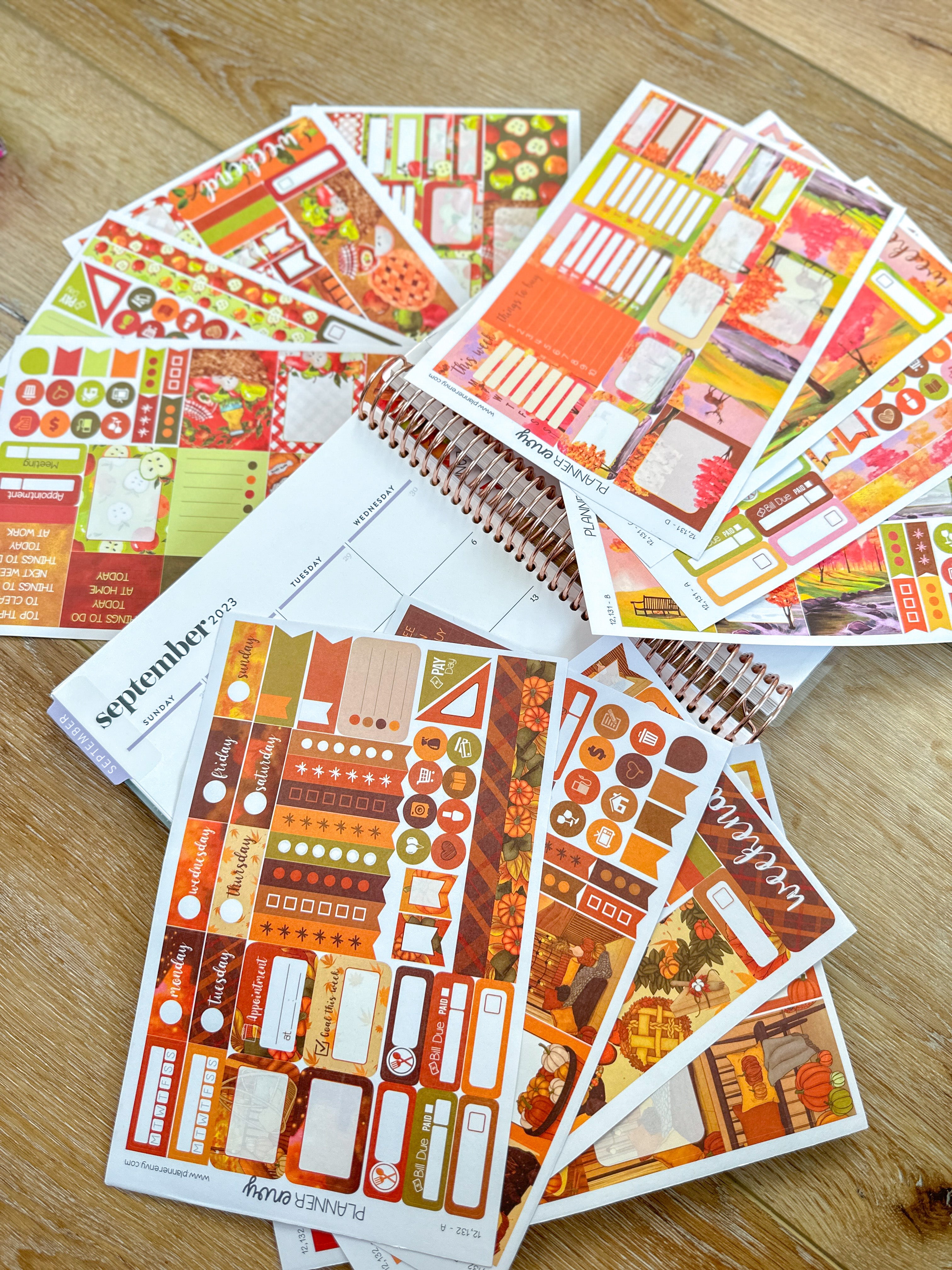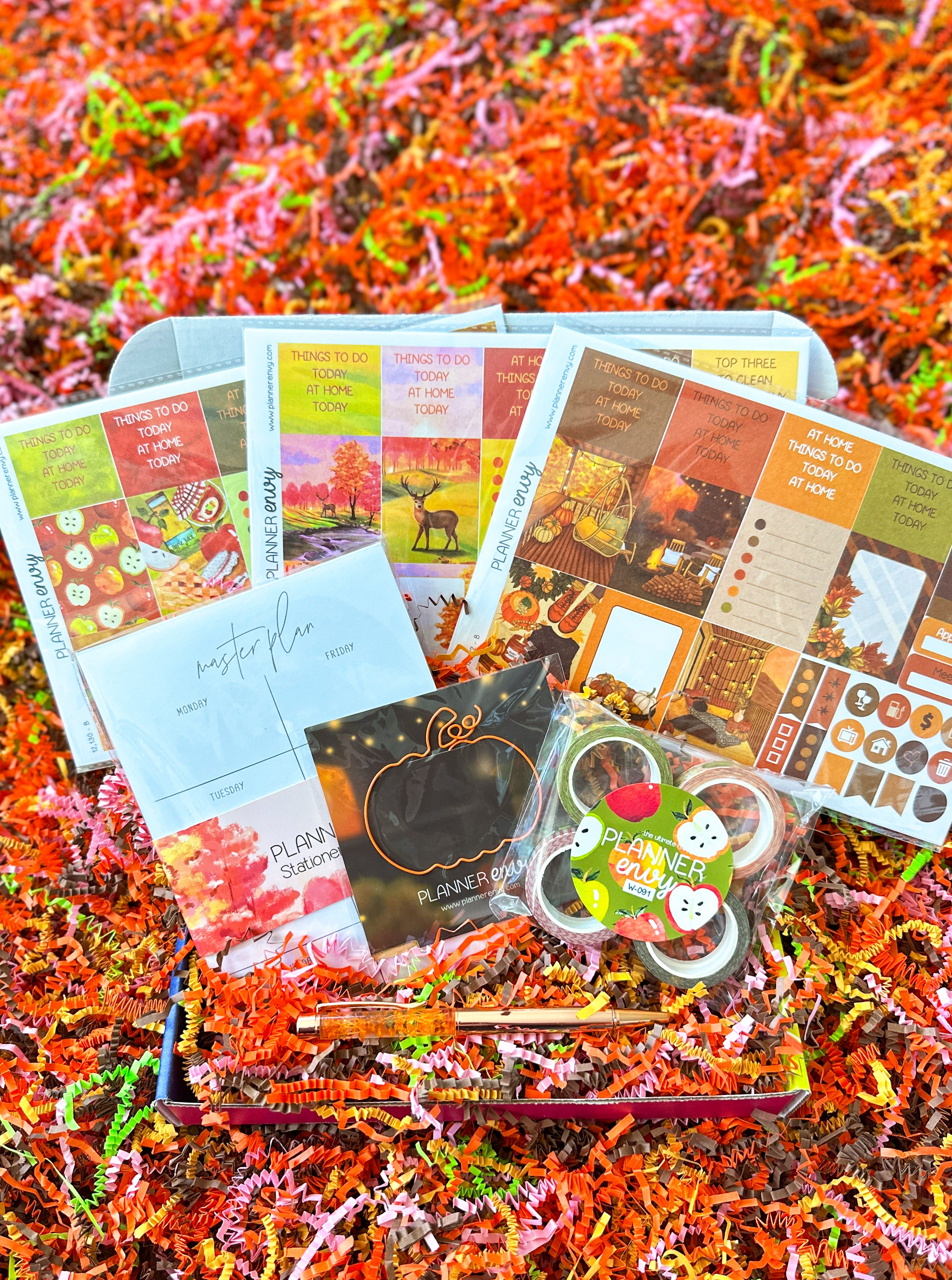 Fall Autumn Planner Stickers Pumpkin Paperclip Forest Notepad Leaves Trees Brown Orange. September 2023 Planner Envy Subscription Box.
