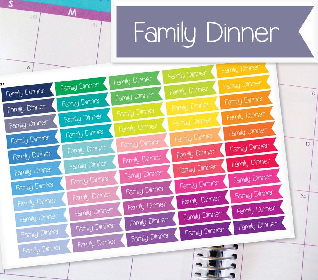 Family Dinner Flag Planner Stickers To Be Used With Erin Condren LifePlanner (ECLP), Happy Planner - 55 Stickers (#7023)