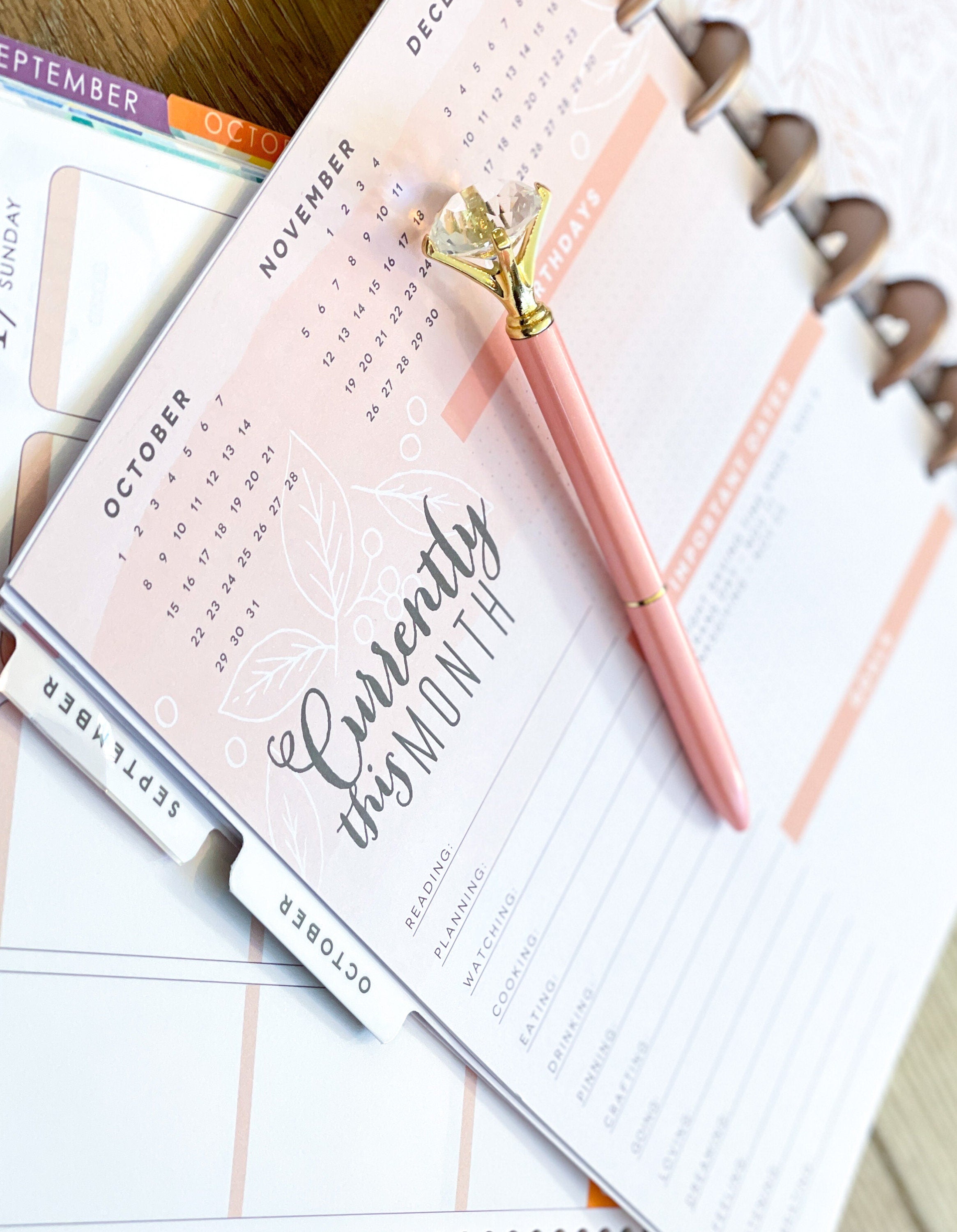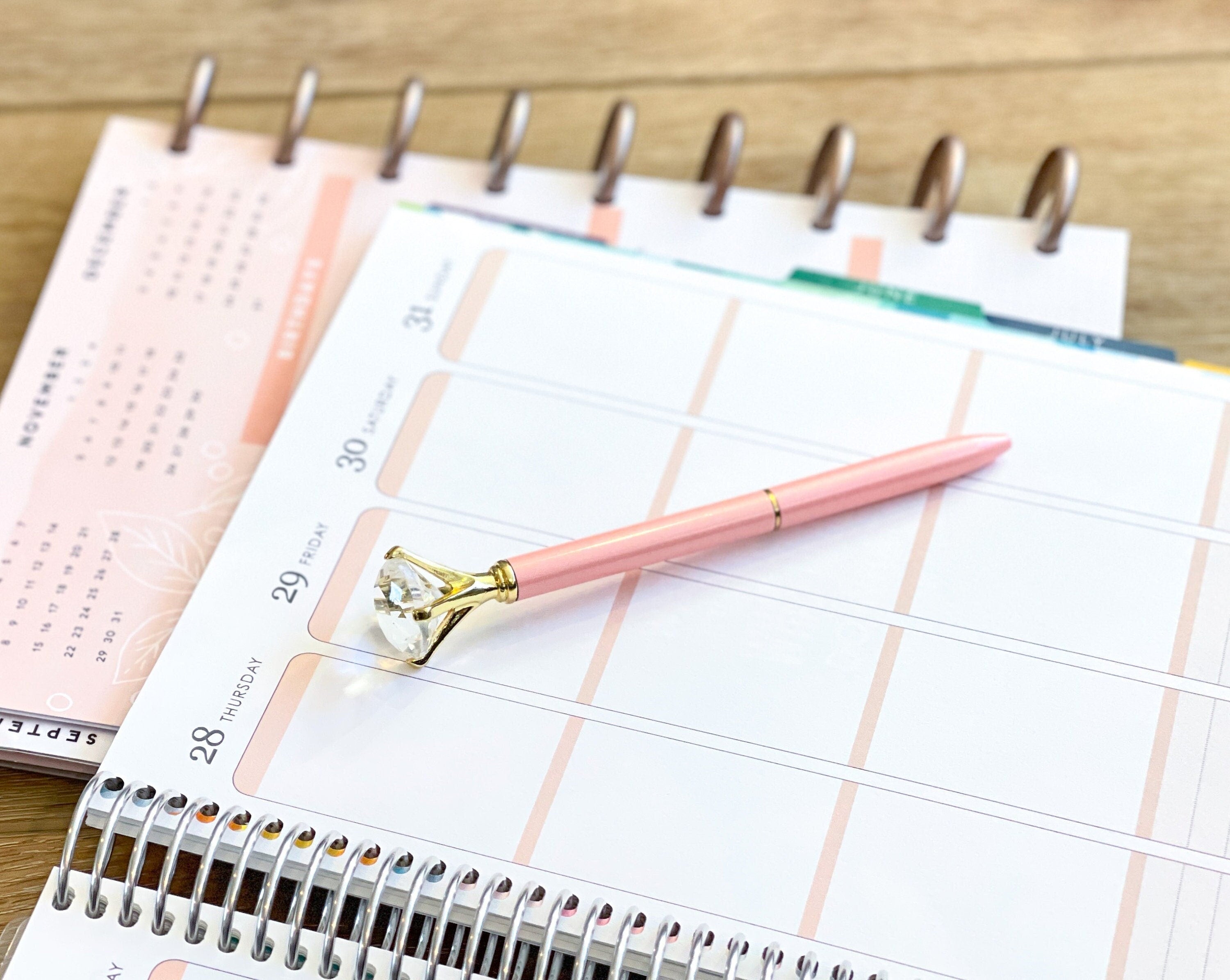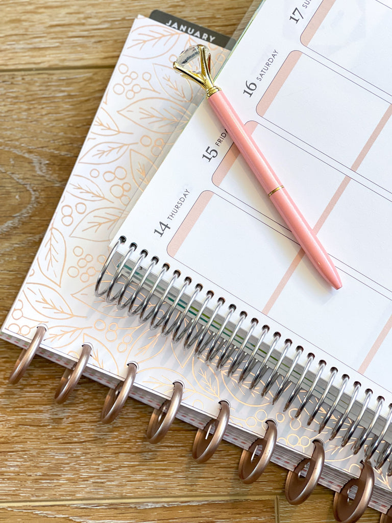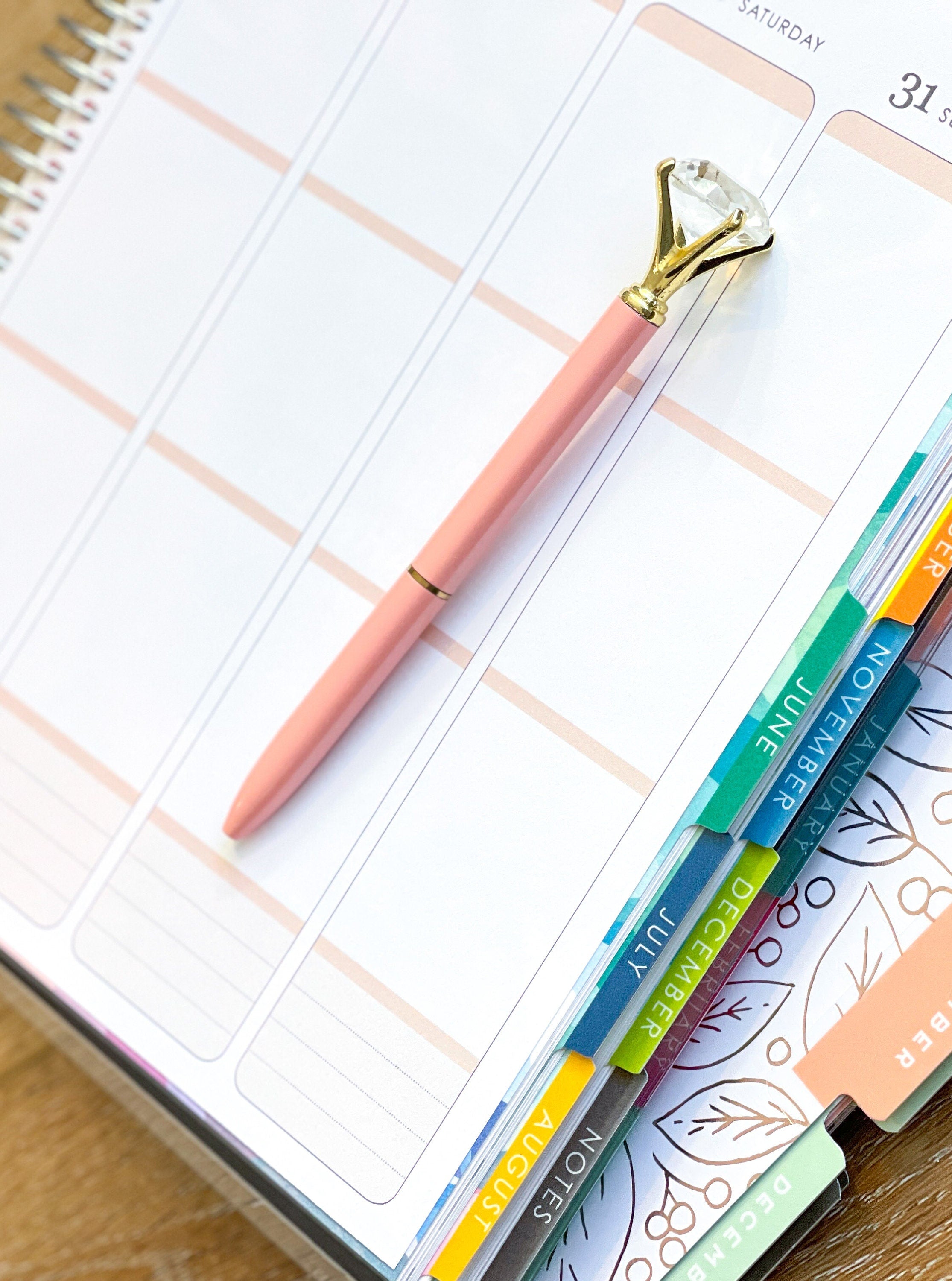 Gold Pink Gem Top Pen Planner Ballpoint Black Ink Pen Engagement New Job Promotion Stationery Gift - P066 This will be your new favorite pen, and it makes a great gift! What's included: • 1 of the pens in the photos *Please note that if multiple pens are pictured, or if anything else is in the photo, it is to style the photo. No planners or other items included.