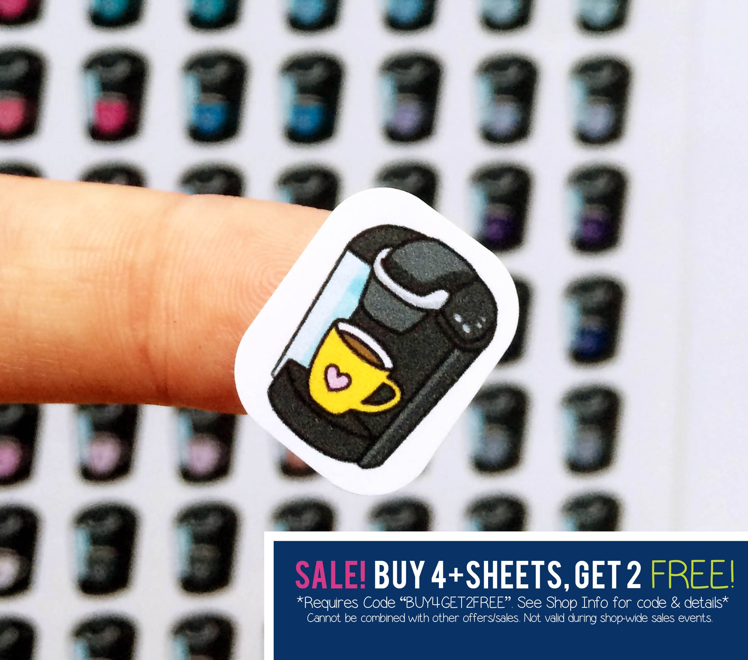 Keurig K-Cups Coffee Planner Stickers To Be Used With Erin Condren LifePlanner (ECLP), Happy Planner - 50 Stickers (#13001) ✦ Each sticker is about 0.7" long x 0.55" wide which fit almost any planner! They fit within the boxes of the Erin Condren vertical LifePlanner, Vertical Recollections planners, Happy Planners, Most Horizontal style planners and work great with many other standard A5 and personal planner sizes too! ✦ Sticker sheet is 5.5 inches wide by 8.5 inches long. ✦ 88 stickers per sheet. ✦ Professionally printed on high quality matte sticker paper. Once these are positioned, they cannot be moved from all papers. If gentle, they can usually be peeled up from the ECLP paper and repositioned. ✦ Bright, vibrant, and ready to make your planner stand out! Check out my reviews to see how bright my stickers are! :) ✦ These do not have any finish and should be easy to write on with most pens - ballpoint pens and fine tip sharpies seem to look the best! ✦ Save on shipping when you buy multiple sheets! *Planner Envy has no affiliation with Erin Condren or Erin Condren LifePlanner. Planner Envy stickers fit the size of Erin Condren planners as well as many others such as Recollections, Happy Planner and standard personal and A5 size planners.* ▶ ▶ ▶ To view more Planner Envy brand stickers, click here to view my shop: https://www.plannerenvy.etsy.com ▶ ▶ ▶ Get deals and coupons codes on Instagram: @planner_envy ▶ ▶ ▶ DEALS & DISCOUNTS ◀◀◀ ✦ Spend $15 or more, get 10% off >> "SAVE10ON15" ✦ Spend $20 or more, get 15% off >> "SAVE15ON20" ✦ Spend $35 or more, get 20% off >> "SAVE20ON35" **ONE COUPON CODE PER TRANSACTION. CANNOT BE COMBINED WITH BUY4GET2FREE** ▶ ▶ ▶ CURRENT SHIPPING TIME ◀◀◀ PLEASE CHECK MY SHOP ANNOUNCEMENT FOR CURRENT SHIPPING & PROCESSING TIME. Planner stickers will usually be shipped within 3-5 business days depending on current orders! Please check my shop homepage and announcement to see my current shipping time and make sure I am not on vacation or out of town. ▶ ▶ ▶ USAGE & COPYRIGHT ◀◀◀ ALL ITEMS ARE FOR PERSONAL USE ONLY. ©Planner Envy All Planner Envy stickers, printed planner pages, notepads and other physical items are for personal use only. No commercial use. They can be used for your personal planner or be gifted for personal use. They are not to be sold as is or manipulated, alone or as part of a group or package, on or off of Etsy.com. Not intended for resale of any kind. ©Planner Envy ▶ ▶ ▶ Check out my other shops! :) ◀◀◀ I am a longtime Etsy seller - check out my main shop for personal and business marketing design templates - VivifyCreative: https://www.etsy.com/shop/VivifyCreative
