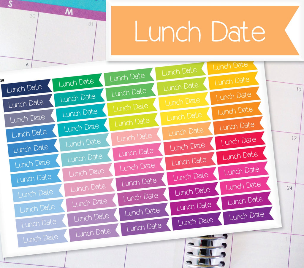 Lunch Date Flag Planner Stickers To Be Used With Erin Condren LifePlanner (ECLP), Happy Planner - 55 Stickers (#7039)