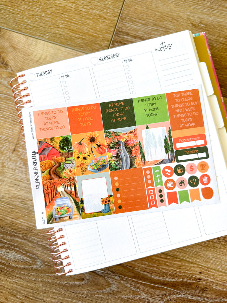 NEW KIT FORMAT! Fall Foliage Trees Leaves Countryside Planner Stickers Weekly Kit - 133 Stickers (#12,201)