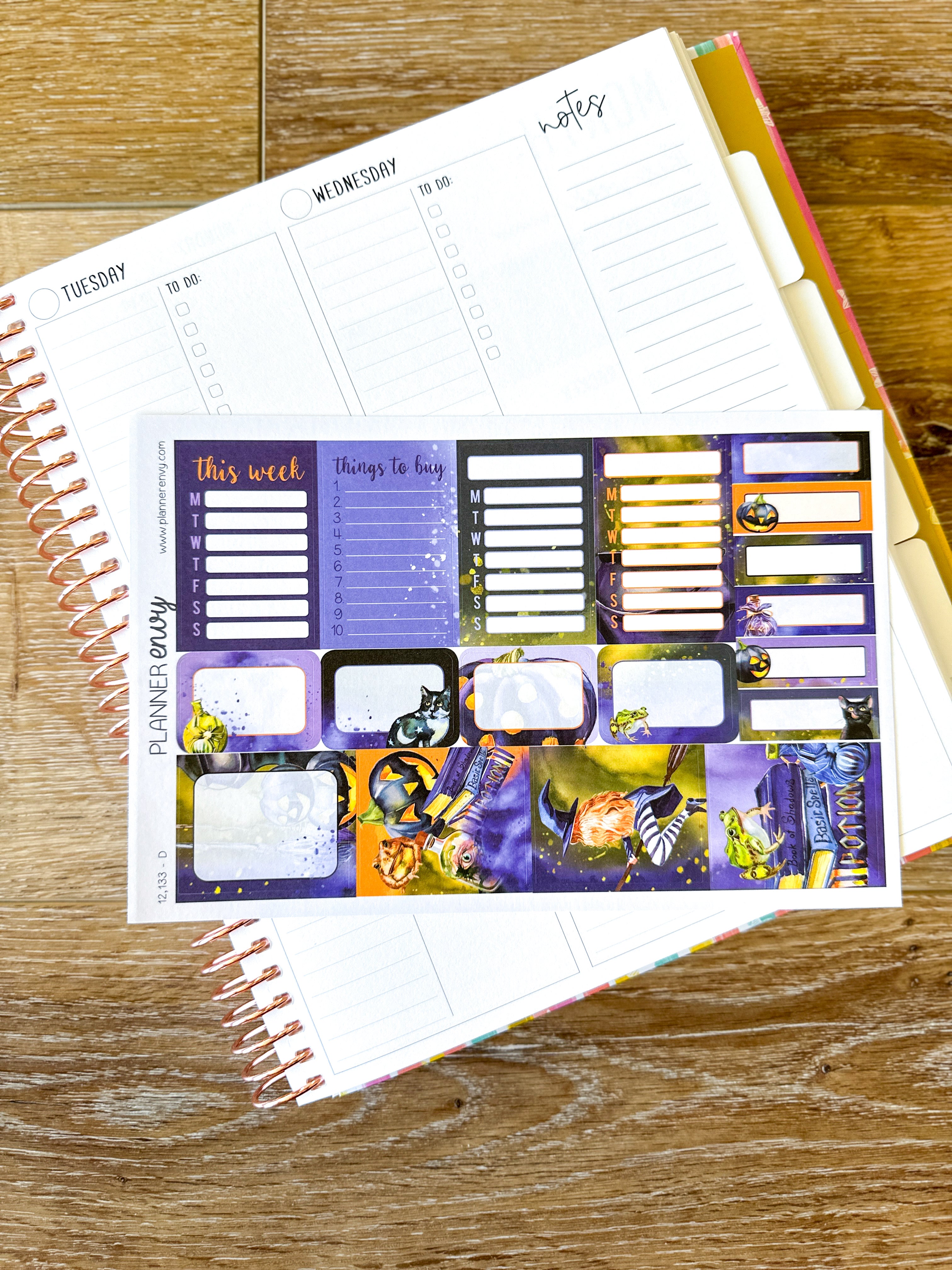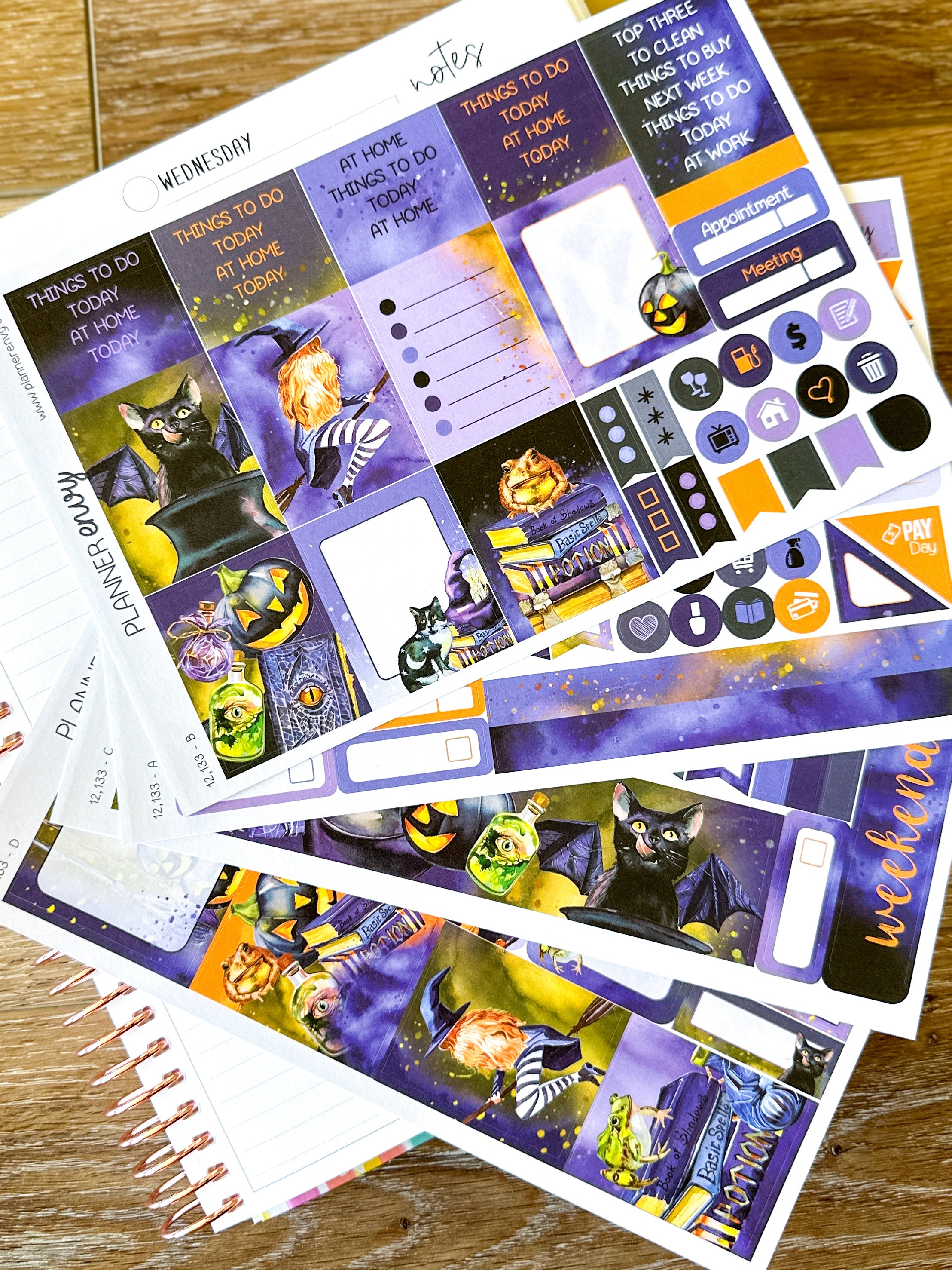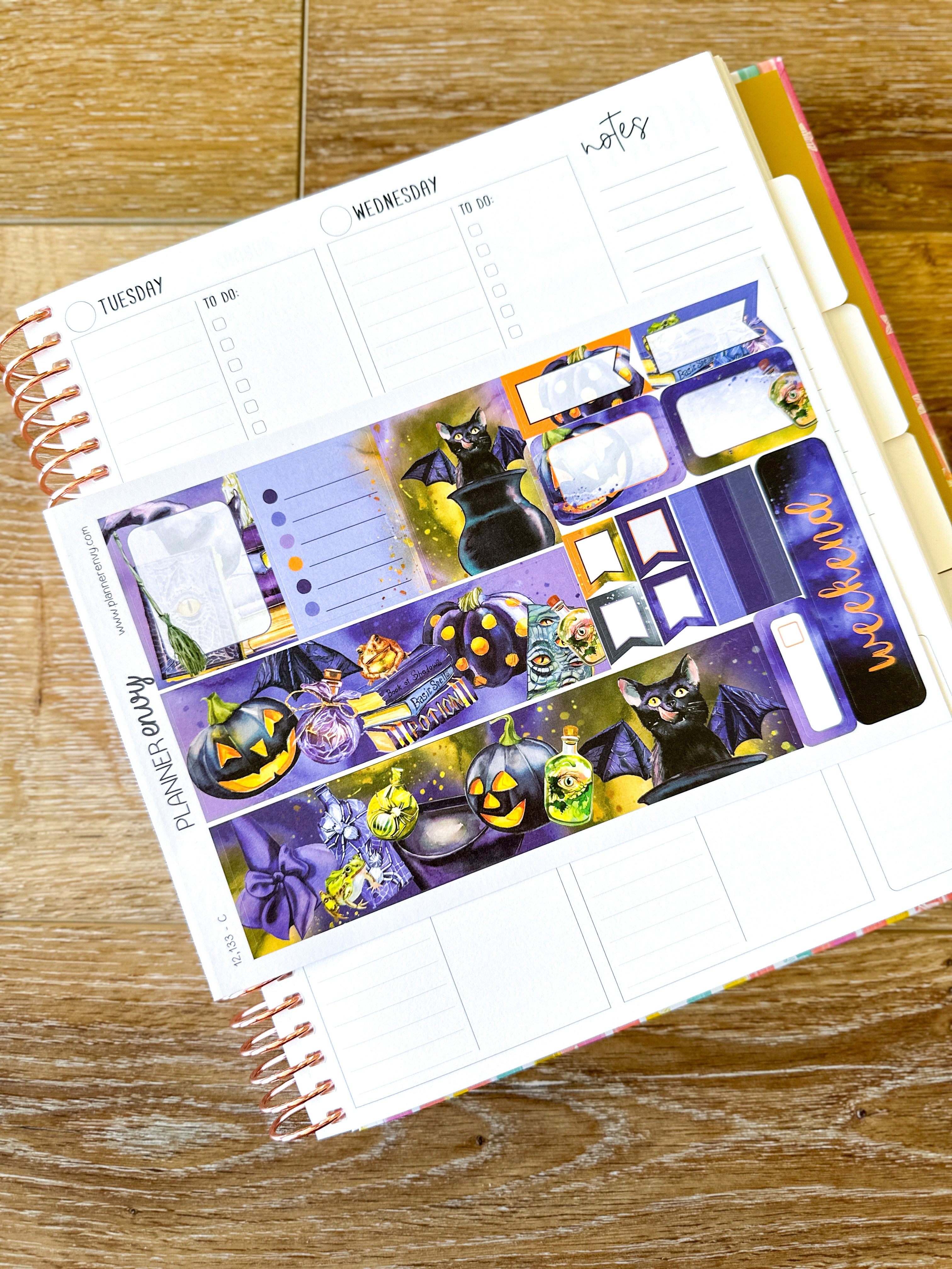 NEW KIT FORMAT! Halloween Purple Black Cats Pumpkins Spooky Planner Stickers Weekly Kit - 133 Stickers (#12,133)