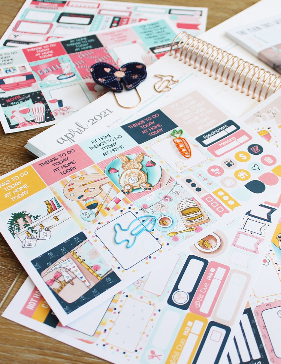 Spring Planner Girl, Easter and Netflix & Chill Themed Box of Planner Stickers & Accessories (#SUB2021004)