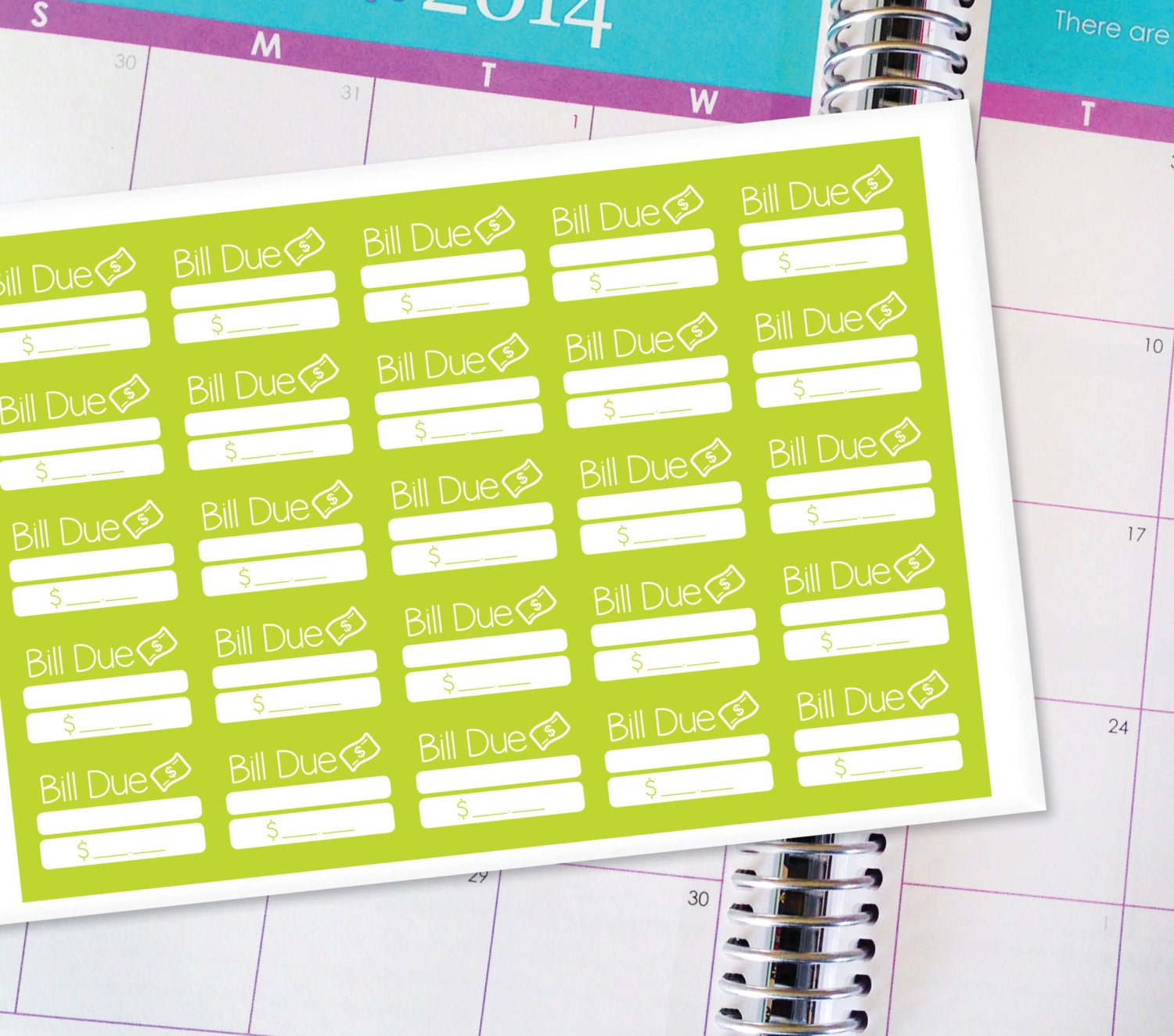 Planner Stickers Erin Condren Life Planner (ECLP) - 25 Bill Due Amount Stickers (#3001)