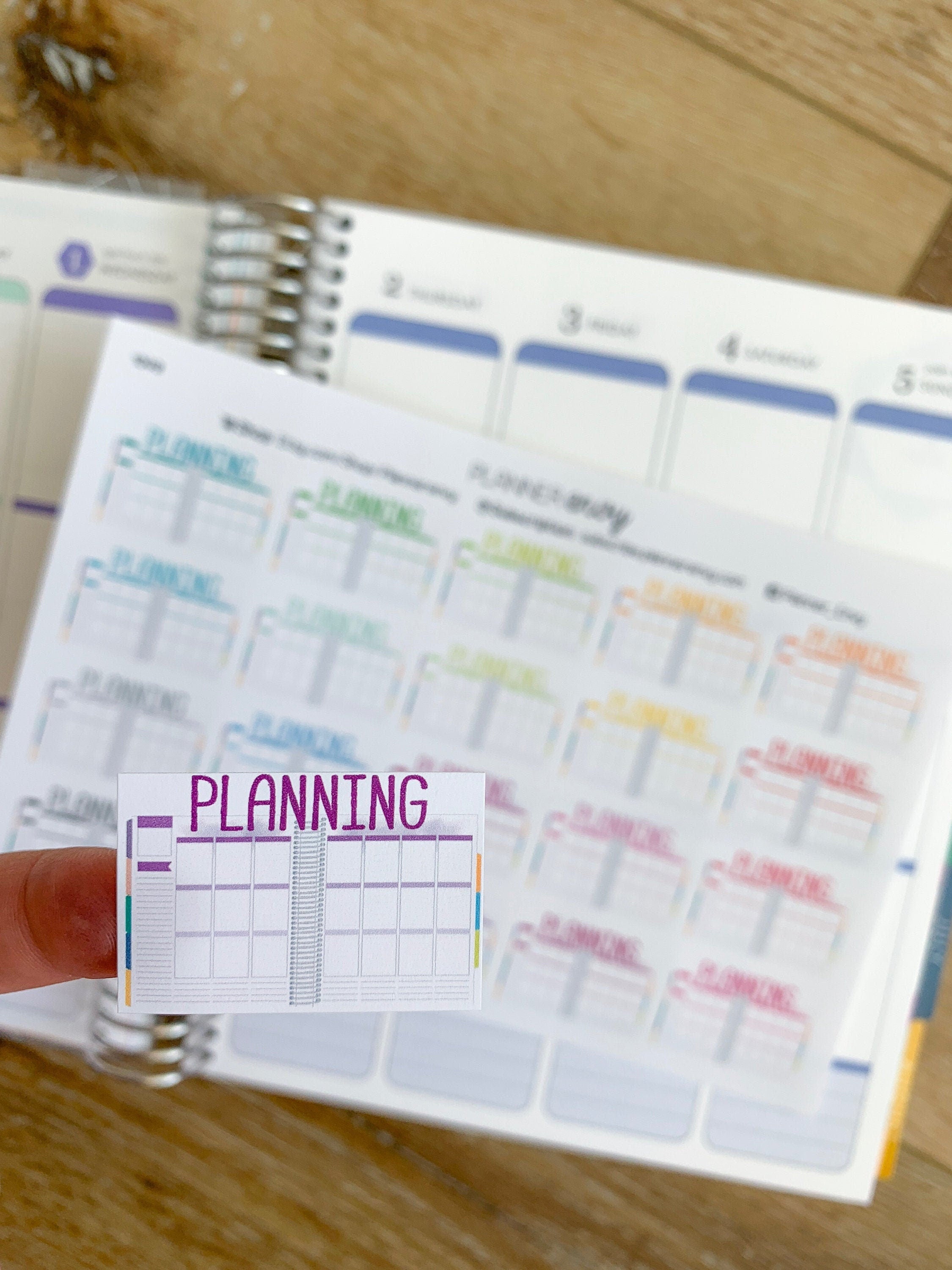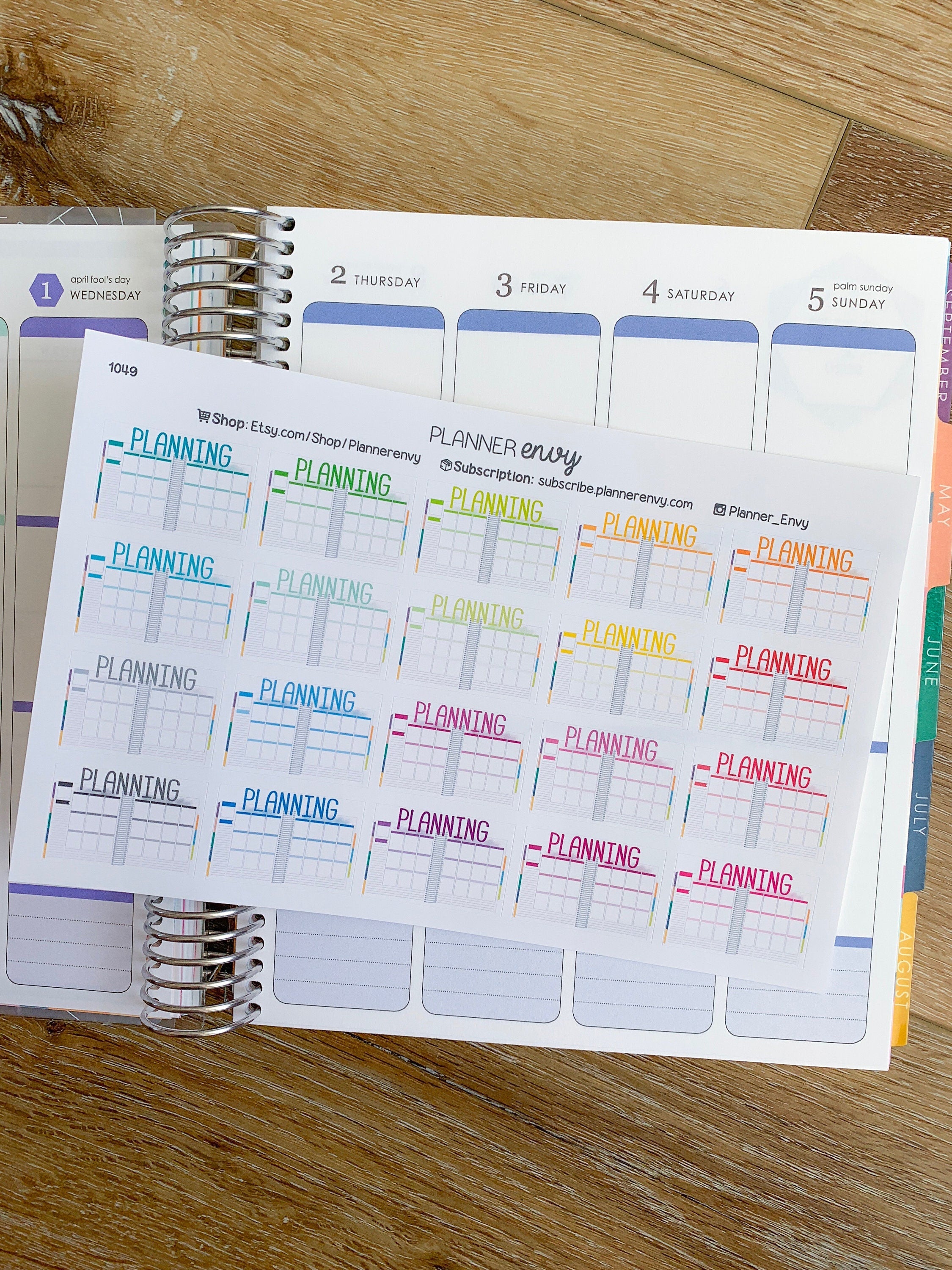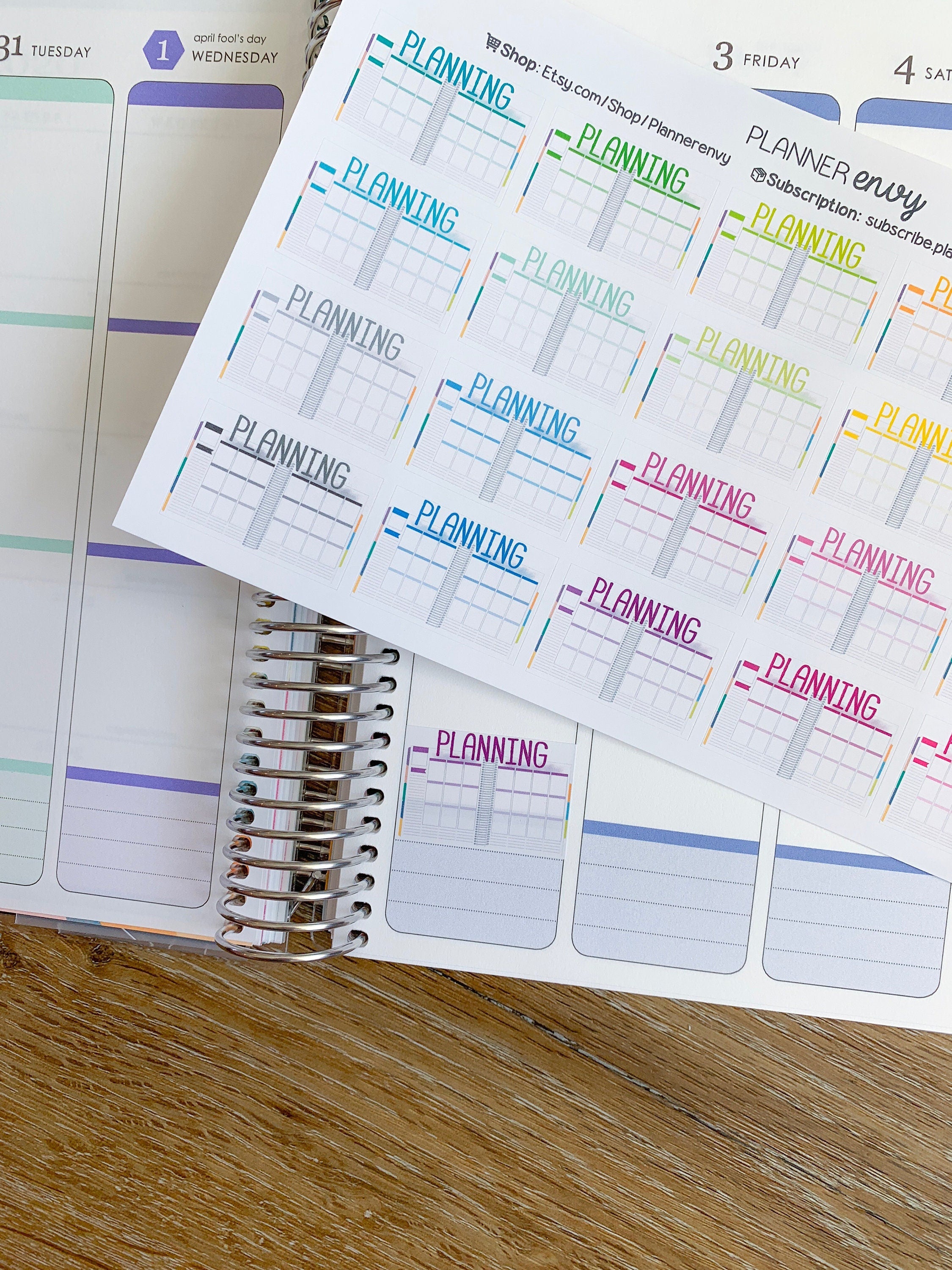Planning To Plan Planning Time Planner Stickers to be used with Erin Condren ECLP, Happy Planner, Recollections (#1049) ✦ Each sticker is 1.5 inches wide by 1 inch in length. These stickers are perfectly sized to fit in the boxes of: ▶The Original Size Erin Condren Vertical Life Planner ▶The Medium Size Happy Planner ▶The Medium Size Vertical Recollections Planner ✦ Sticker sheet is 5.5inches wide by 8.5 inches long. ✦ 20 stickers per sheet. ✦ Professionally printed on matte sticker paper. Once these are positioned, they cannot always be moved. They do seem to pull up pretty easily and can be re-stuck to the pages of the ECLP & Happy Planner, but do not pull up cleanly from Recollections or from on top of other stickers. ✦ Bright, vibrant, and ready to make your planner stand out! ✦ These do not have any finish and should be easy to write on with most pens - ballpoint pens and fine tip sharpies seem to look the best! ✦ Save on shipping when you buy multiple sheets! ▶ ▶ ▶ To view more Planner Envy brand stickers, click here to view my shop: https://www.etsy.com/shop/PlannerEnvy ▶ ▶ ▶ DEALS & DISCOUNTS ◀◀◀ ✦ Spend $15 or more, get 10% off >> "SAVE10ON15" ✦ Spend $20 or more, get 15% off >> "SAVE15ON20" ✦ Spend $35 or more, get 20% off >> "SAVE20ON35" **ONE COUPON CODE PER TRANSACTION** ▶ ▶ ▶ CURRENT SHIPPING TIME ◀◀◀ Planner stickers will usually be shipped within 3-5 business days depending on current orders! Please check my shop homepage and announcement to see my current shipping time and make sure I am not on vacation or out of town. ▶ ▶ ▶ USAGE & COPYRIGHT ◀◀◀ ALL ITEMS ARE FOR PERSONAL USE ONLY. © Planner Envy PRINTED PAGES, STICKERS AND OTHER PHYSICAL ITEMS All of my physical items are for person use only. No commercial use. They can be used for your personal planner or be gifted for personal use. They are not to be sold as is or manipulated, alone or as part of a group or package, on or off of Etsy.com. Not intended for resale of any kind. © 2015 Planner Envy