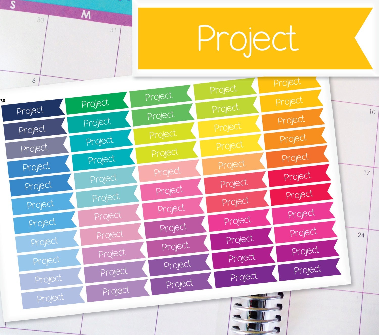 Project Flag Planner Stickers To Be Used With Erin Condren LifePlanner (ECLP), Happy Planner - 55 Stickers (#7030)
