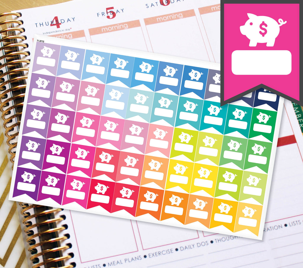 Saving Money Piggy Bank Planner Stickers Flags To Be Used With Erin Condren LifePlanner (ECLP), Happy Planner - 50 Stickers (#11012)