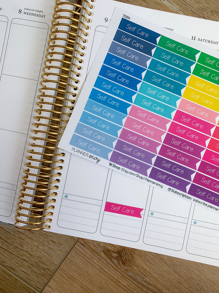 Self Care Me Time Planner Stickers To Be Used With Erin Condren LifePlanner (ECLP), Happy Planner - 55 Stickers (#7054)