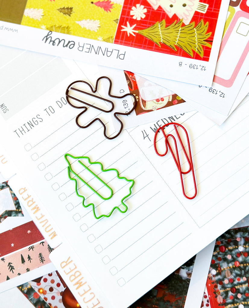 Set of 3 Christmas Shaped Paperclips - Gingerbread Man, Christmas Tree, Candy Cane - Decorative Paperclips For Your Planner