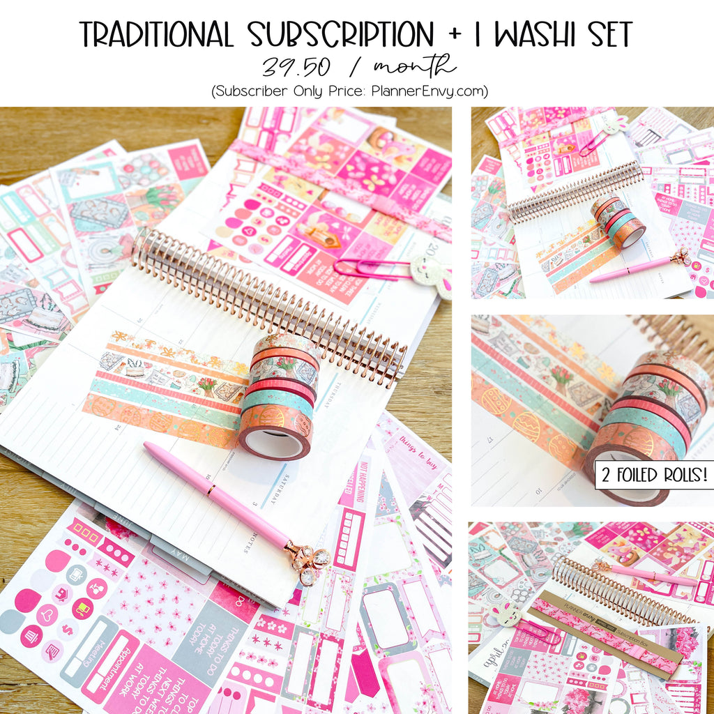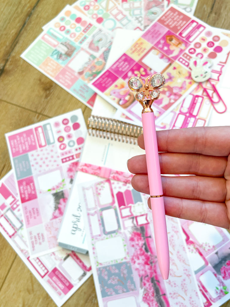 Spring Cherry Blossoms Easter Pink Bunnies Washi Tape Butterfly Pen April 2022 Planner Envy Subscription Box.