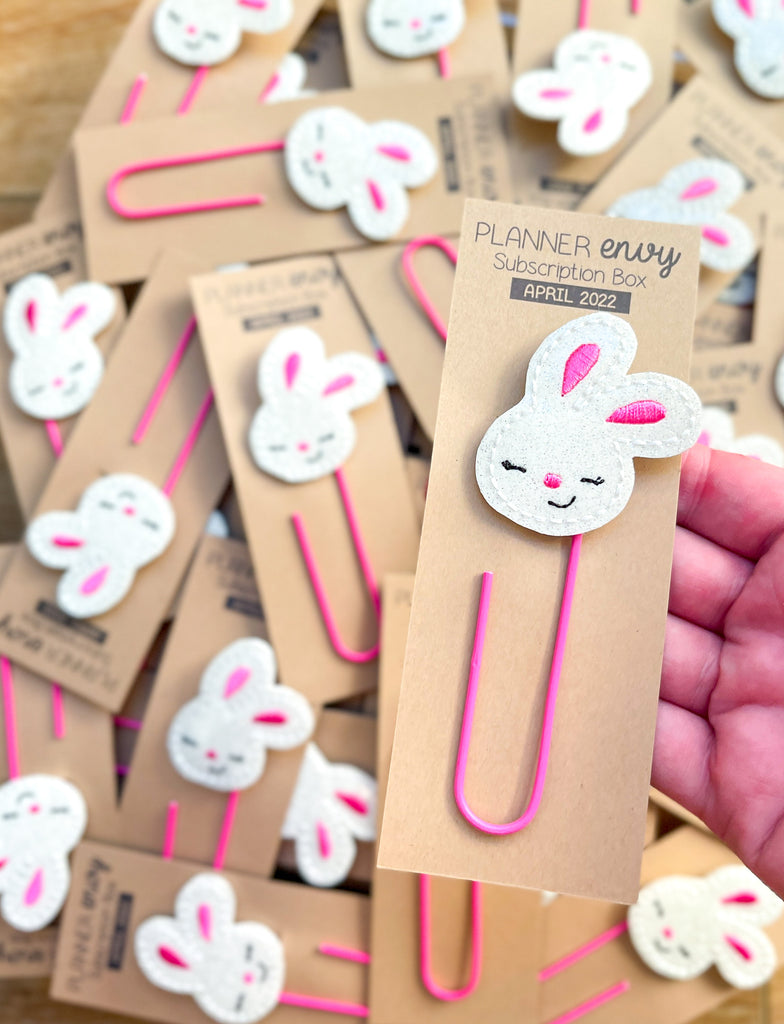 Spring Cherry Blossoms Easter Pink Bunnies Washi Tape Butterfly Pen Bunny Feltie Paperclip April 2022 Planner Envy Subscription Box.