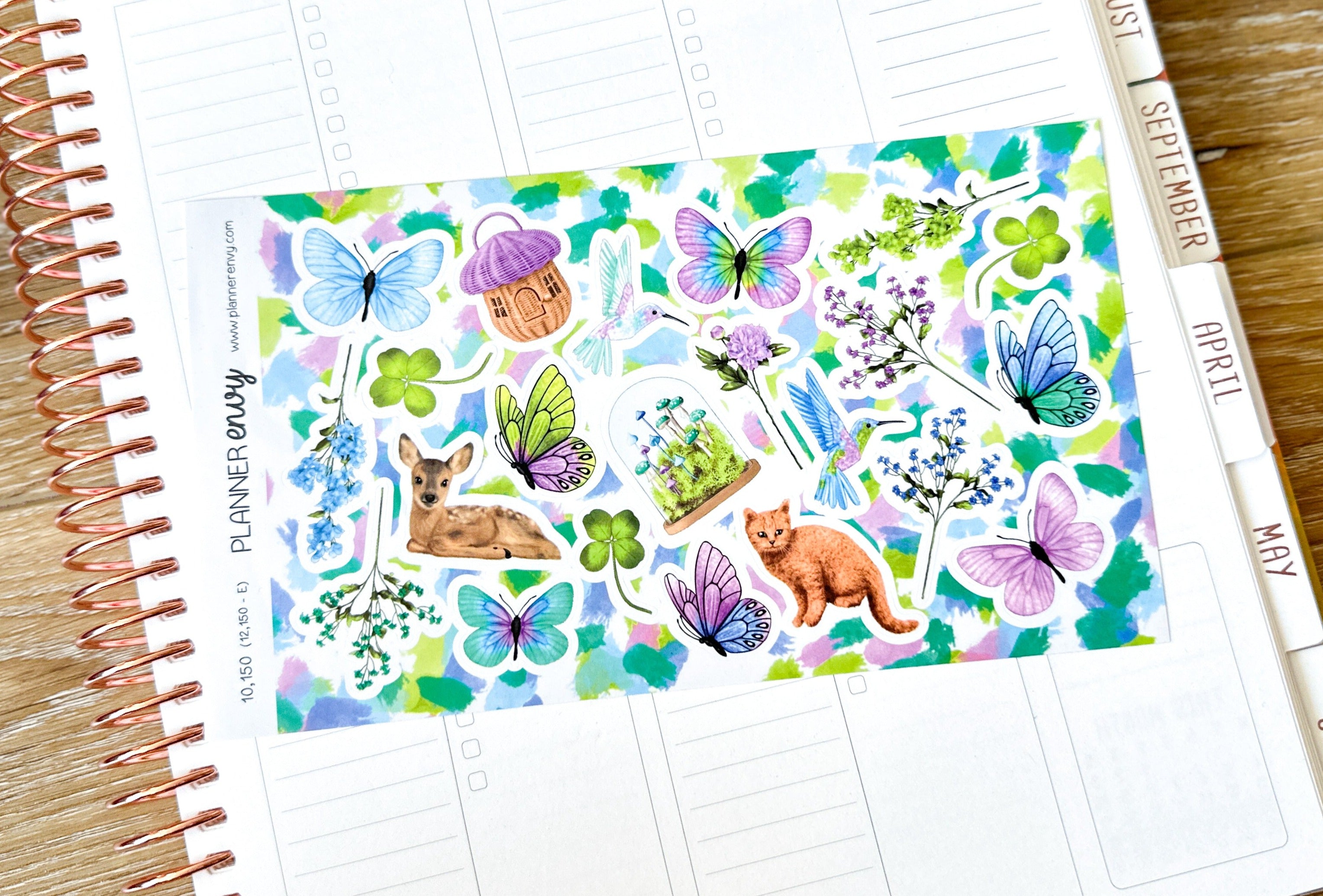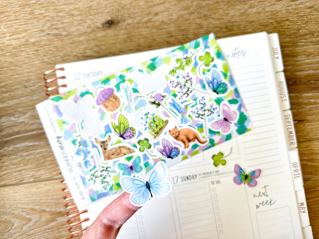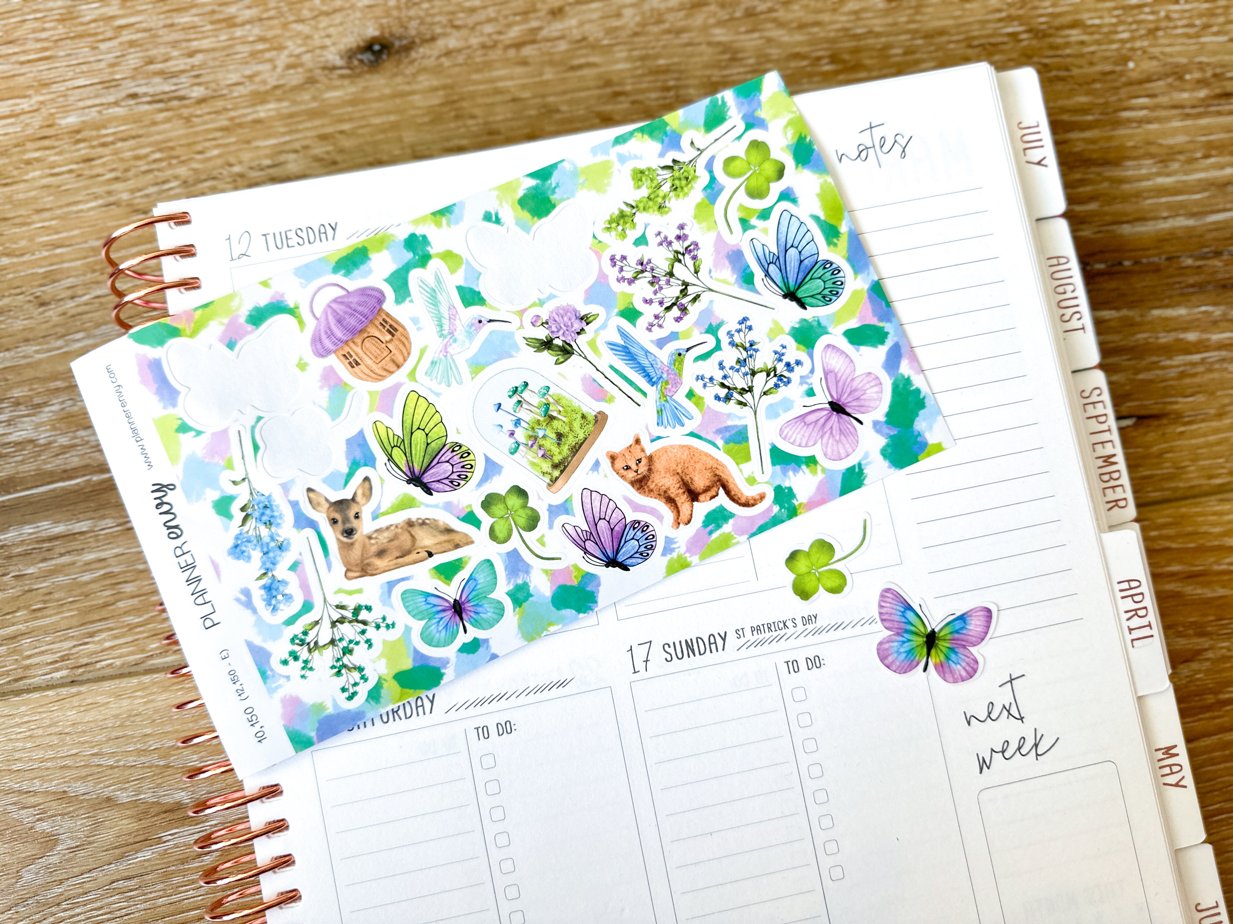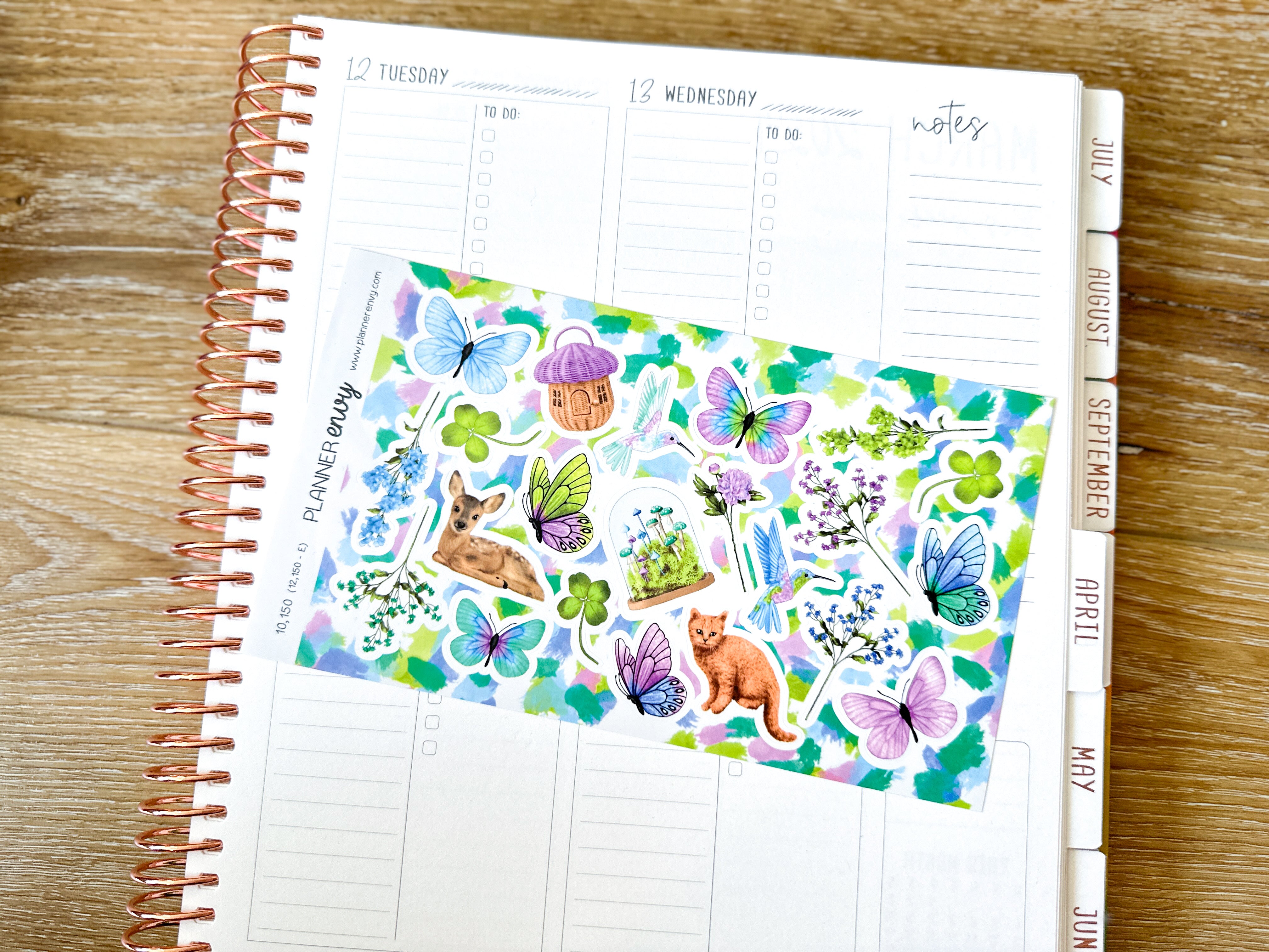 Whimsical Forest Spring Animals Butterflies Clovers Deer March Deco Planner Stickers (#10,150)